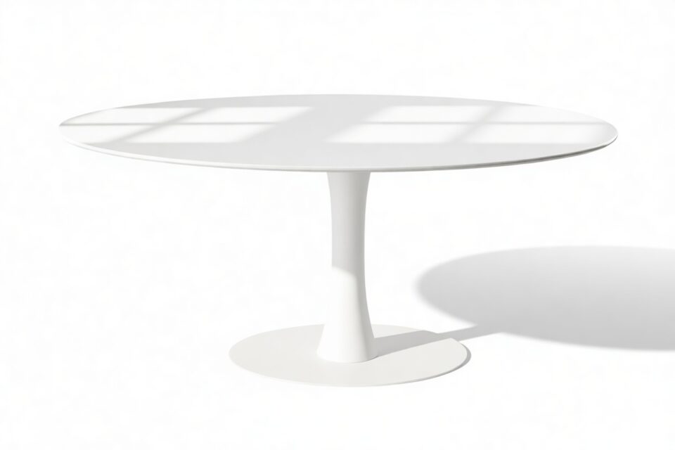 Discover the Nord Table, a chic piece exuding style with its pedestal base, elegantly replacing traditional legs for a sleek and modern touch. Inspired by futuristic aesthetics from the mid-1950s, this versatile table serves both dining and desk needs with poise. In stunning white lacquer, this minimalist marvel brings a contemporary edge to any space, promising enduring elegance and quality craftsmanship for a lasting impression.