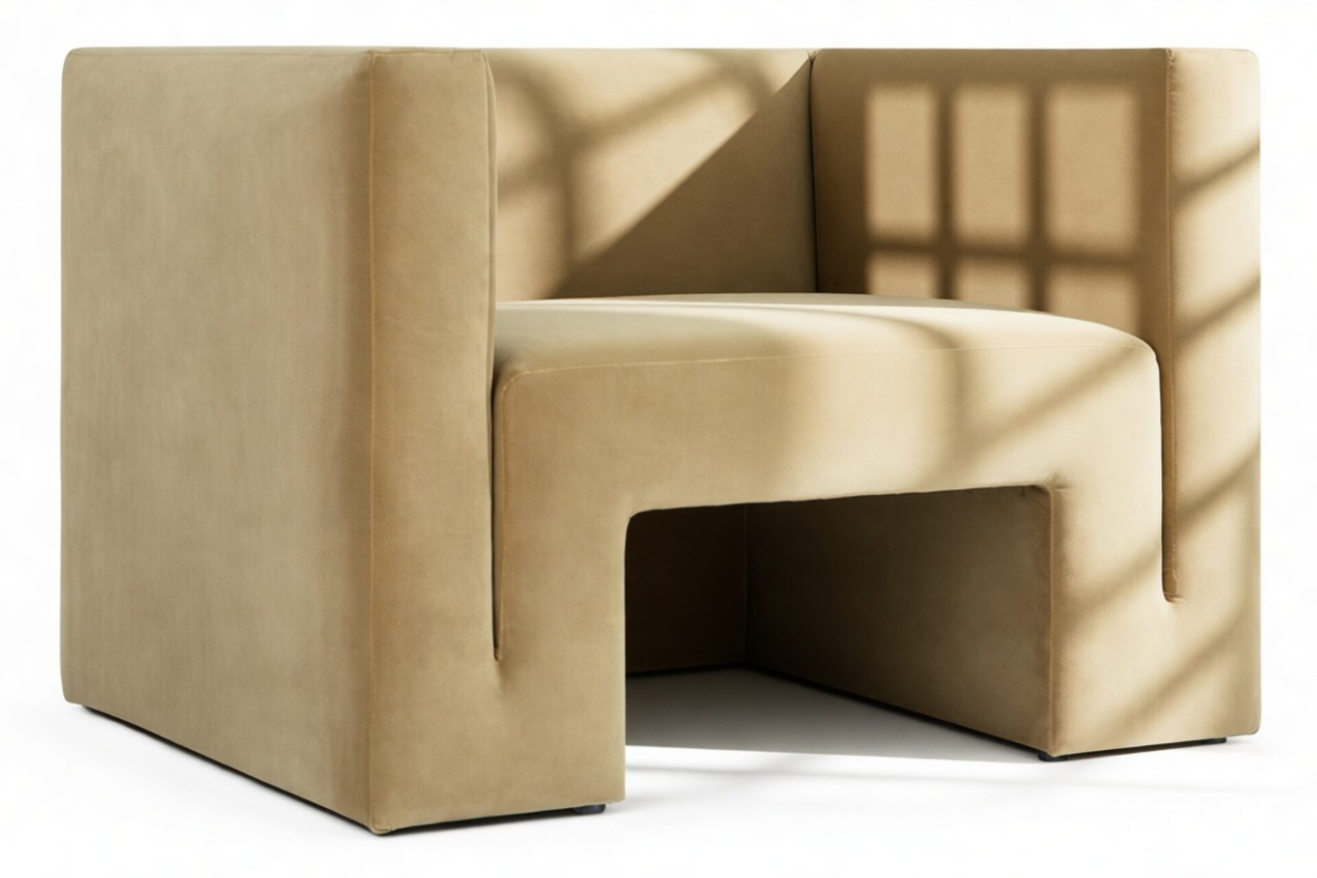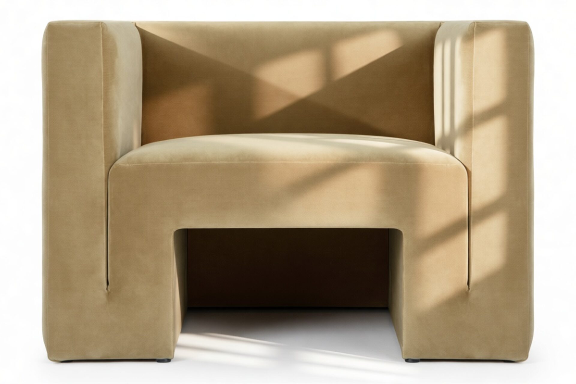 Experience the epitome of modern aesthetics with the Nordsen Lounge Chair, boasting a strikingly angular shape and boxy design. Upholstered in low-maintenance honey-colored velvet, this armchair delicately reflects light, infusing a warm and inviting hue into any living space. Its solid, unbroken lines deliver visual serenity, with arms seamlessly blending into the seat for a sleek appearance.