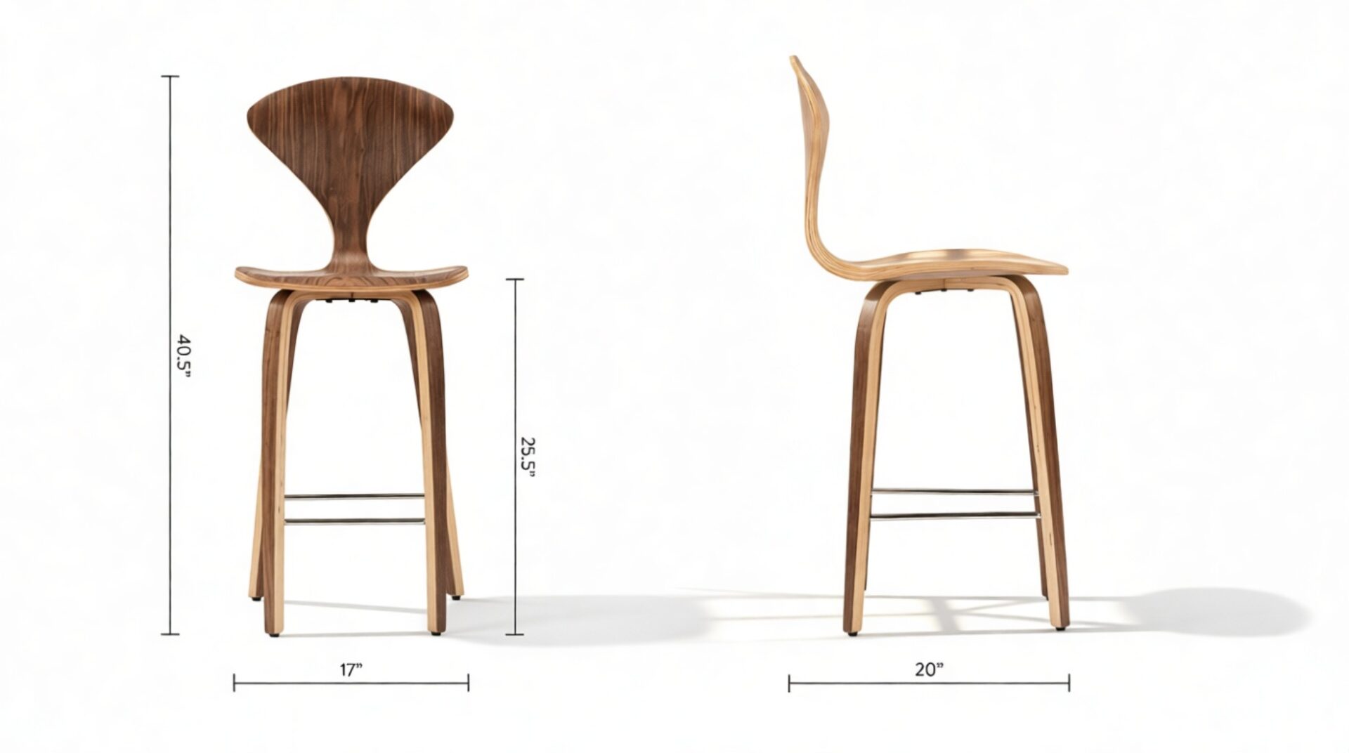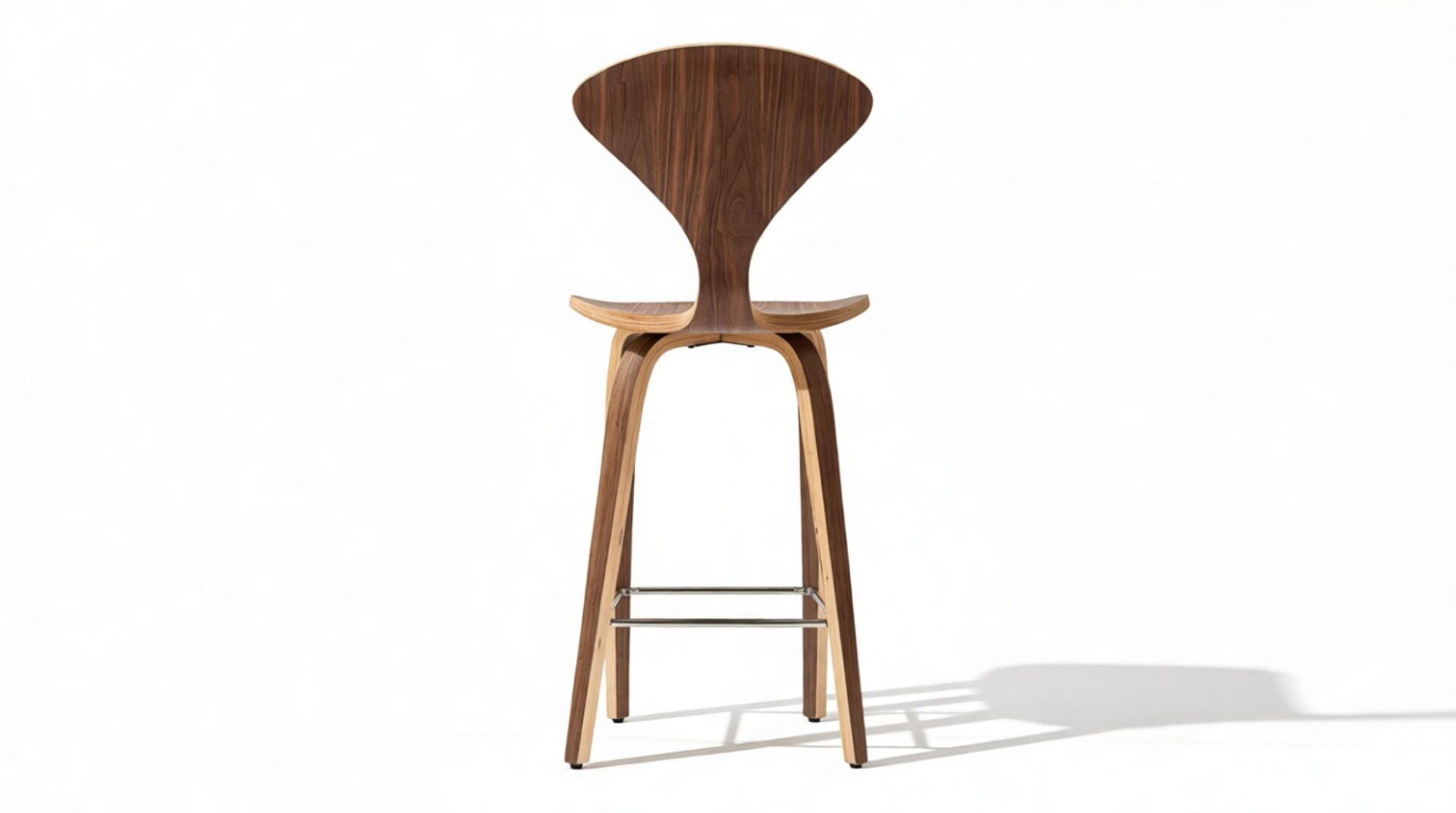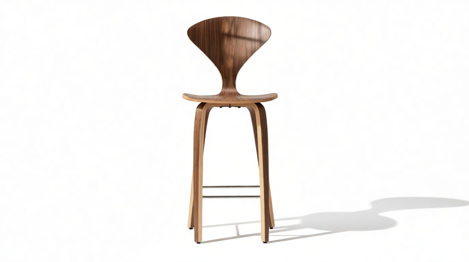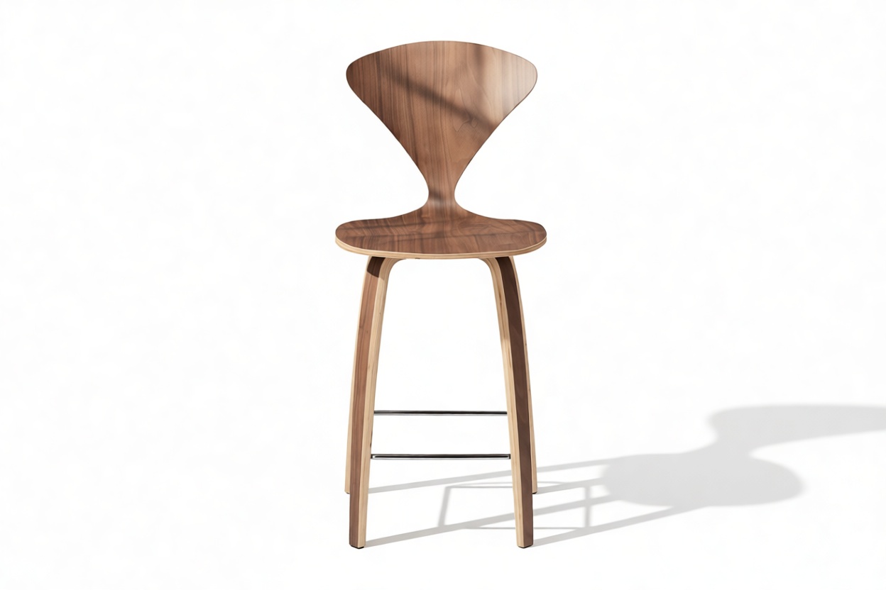 Experience the perfect complement to the renowned dining chair with the Norman Counter Stool, a pinnacle of sophisticated design: visually understated yet structurally intricate. Crafted from bent plywood for durability and adorned with a luxurious walnut veneer, this classic mid-century stool effortlessly bridges the gap between retro charm and contemporary elegance.