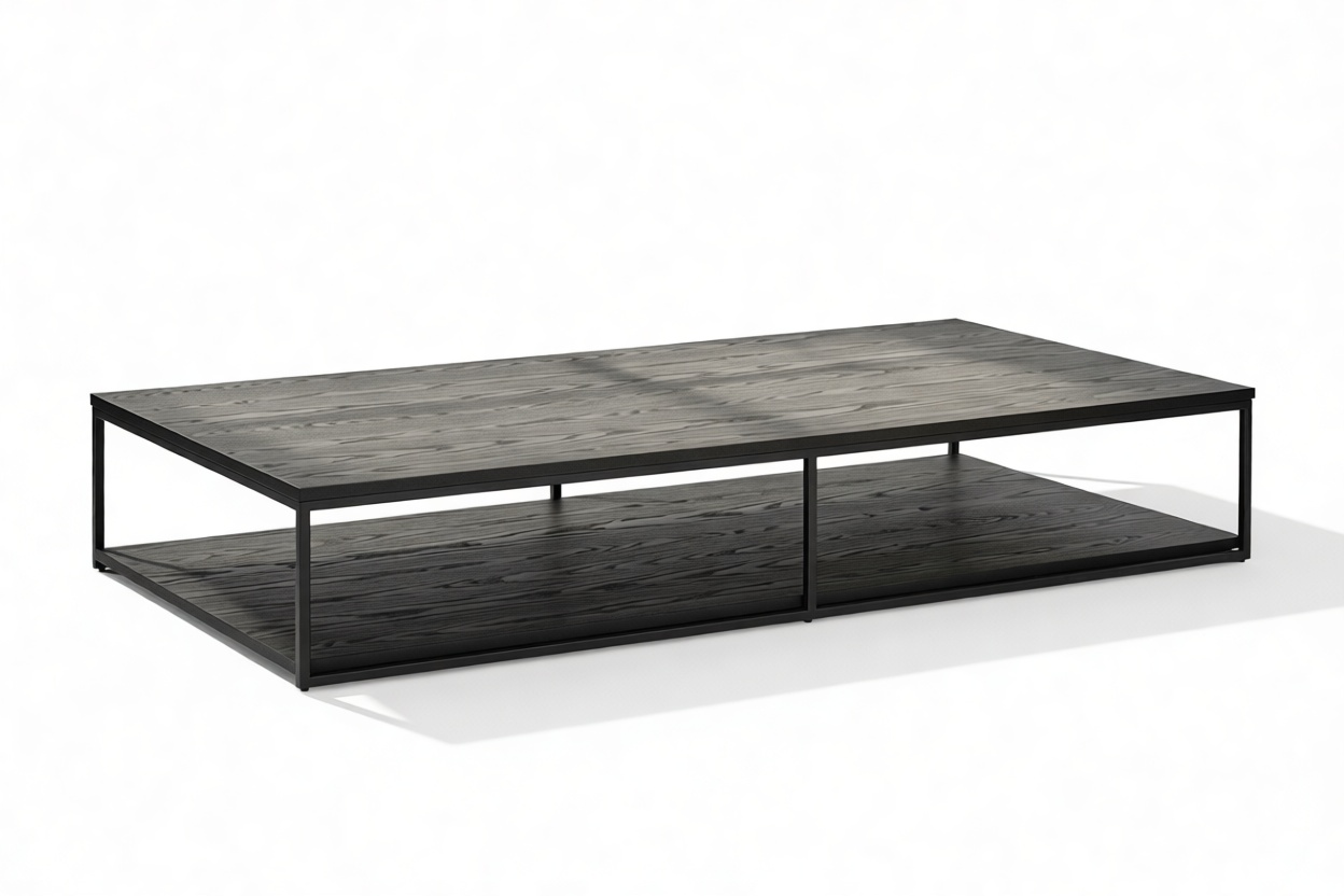 Discover the sophisticated Nox Coffee Table – a seamless fusion of modern elegance and industrial charm. Carefully crafted with meticulous detail, this sleek and chic piece effortlessly stands out in any living area. The Nox Coffee Table features a sleek rectangular shape with sharp angles, radiating a feeling of geometric precision. Its minimalist aesthetics are enhanced by the striking contrast between the black metal frame and the luxurious dark wood tabletop, resulting in a visually captivating centerpiece.