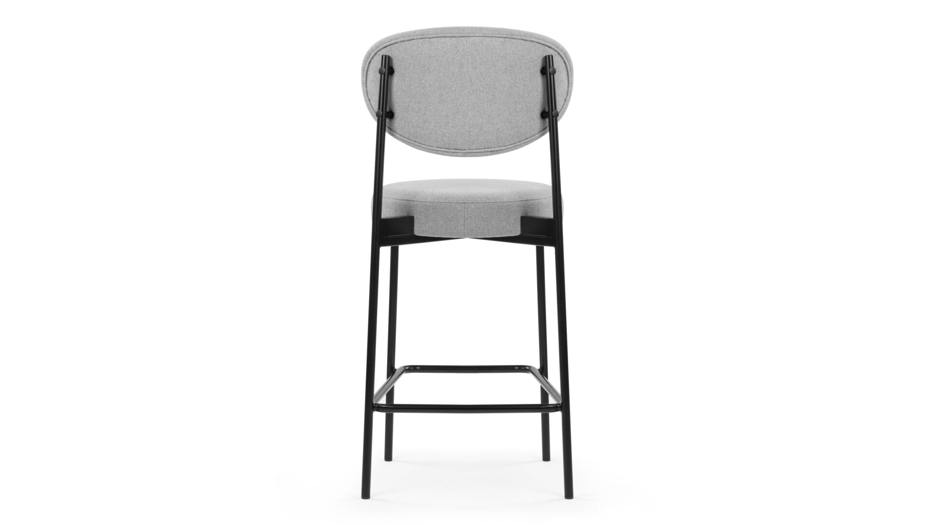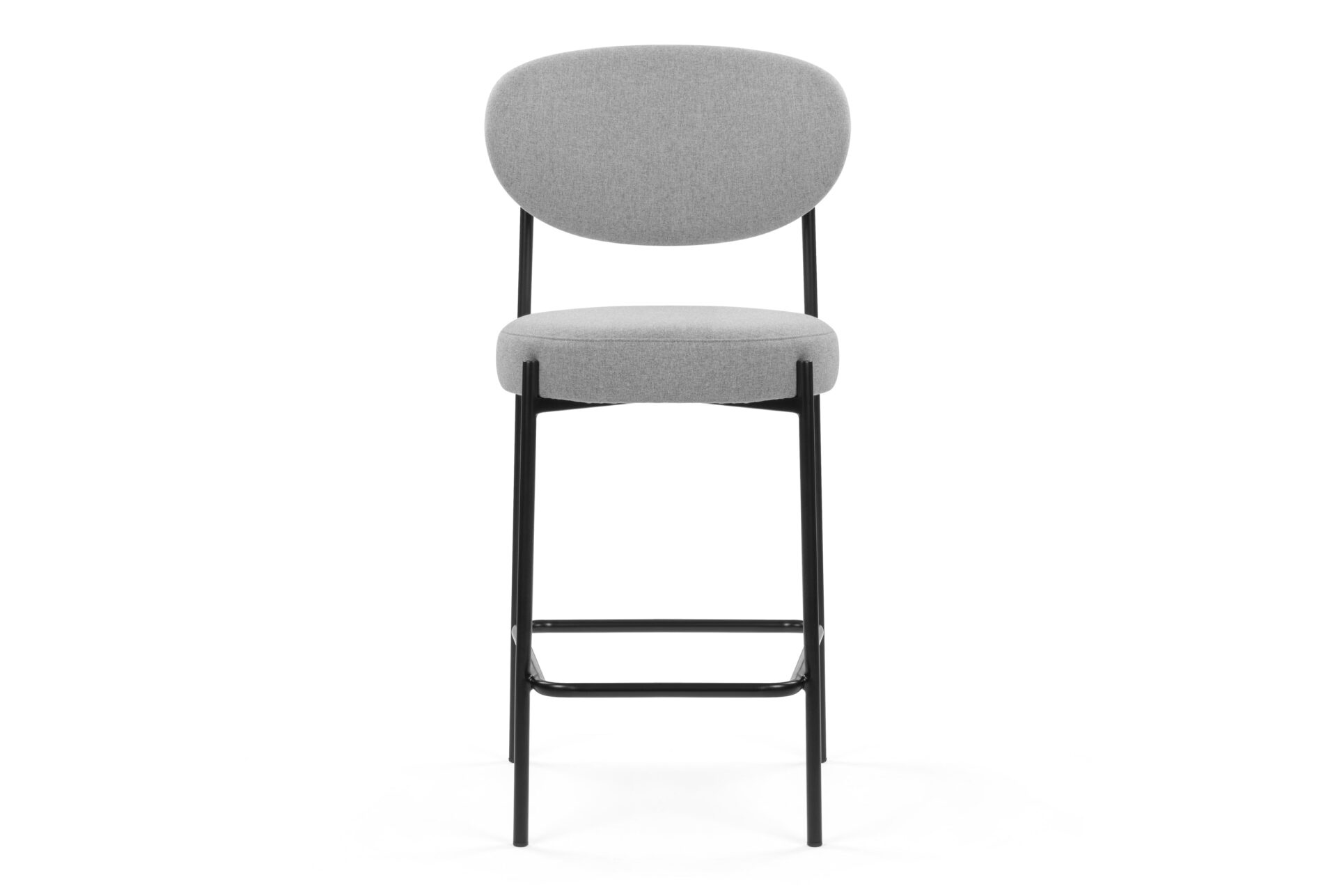 Elevate any modern kitchen or counter space with the Nyx Counter Stool. Featuring high-density foam padding on the seat and oval-shaped backrest, this stool offers optimal comfort and style. Upholstered in light grey fabric and supported by a sturdy black metal frame, it combines durability with a touch of refinement, making it a versatile and chic addition to any contemporary setting.