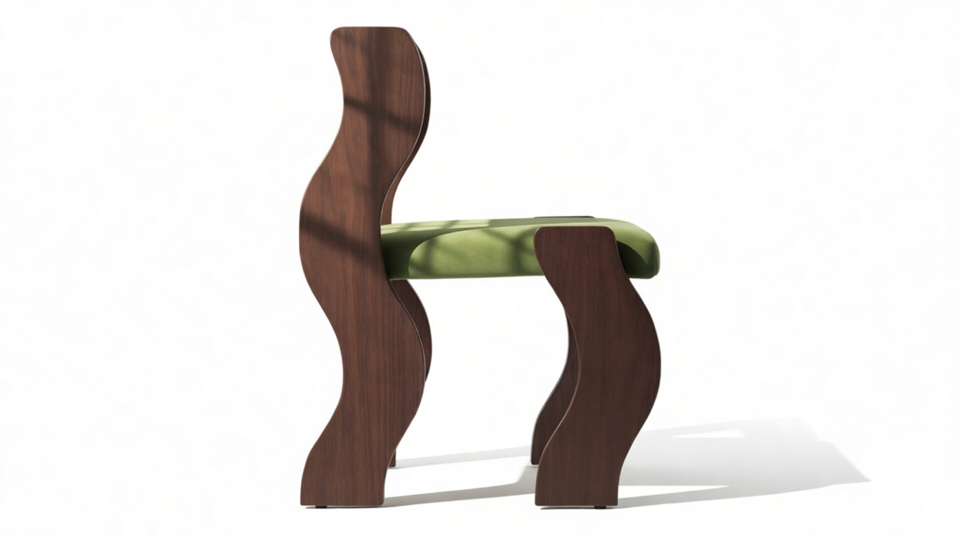 Elevate your modern interior with the Ola Side Chair, featuring vibrant, low-maintenance velvet upholstery. Crafted with rich, dark-toned walnut, this chair's contemporary wave design adds a distinctive and fashionable touch.