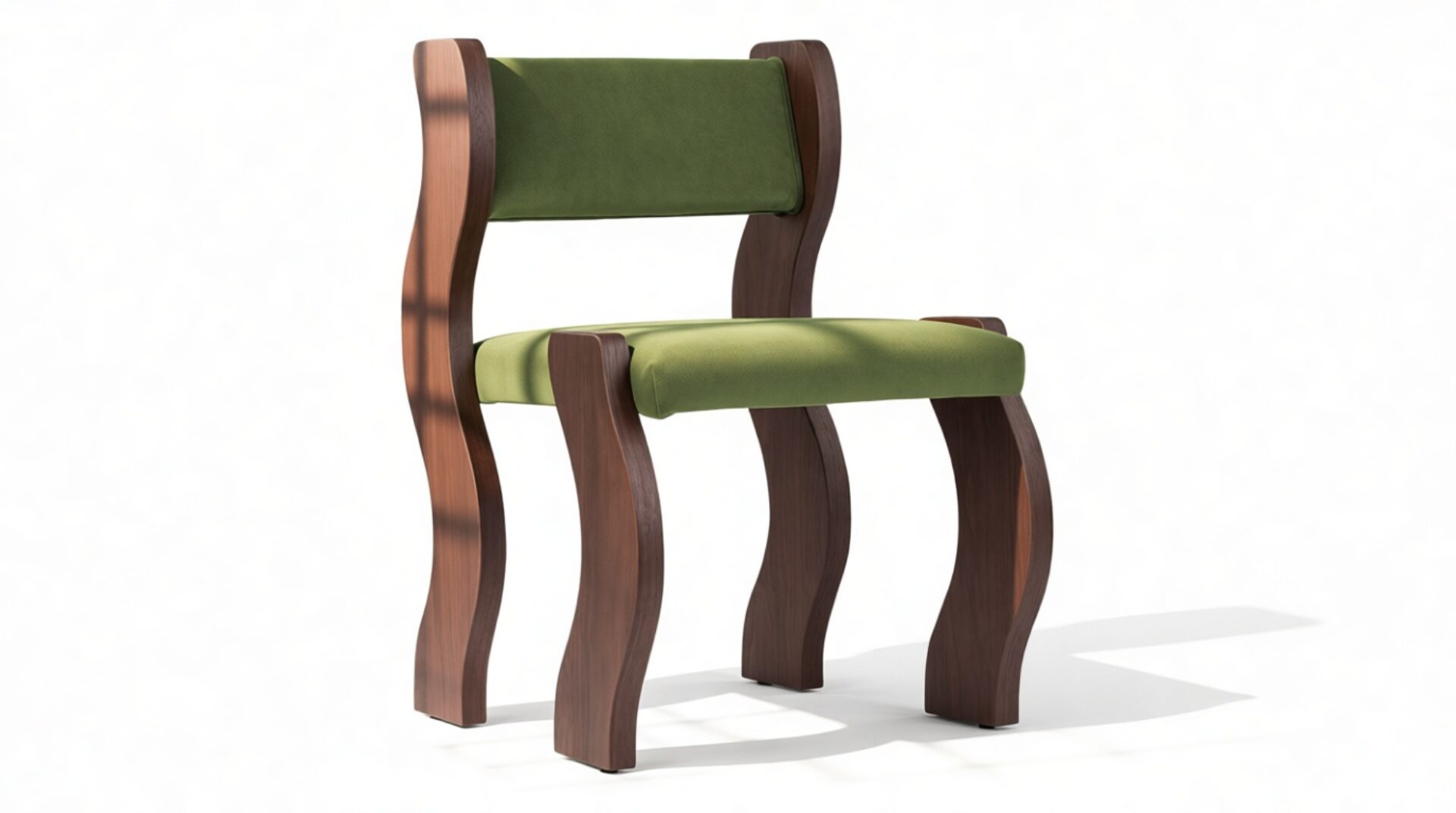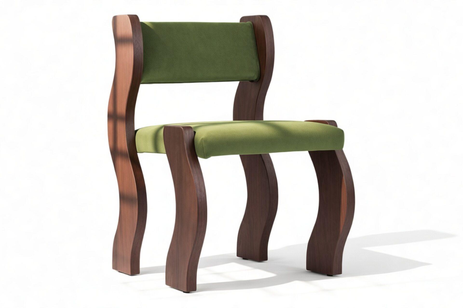 Ola Side Chair, Deep Olive Velvet and Walnut