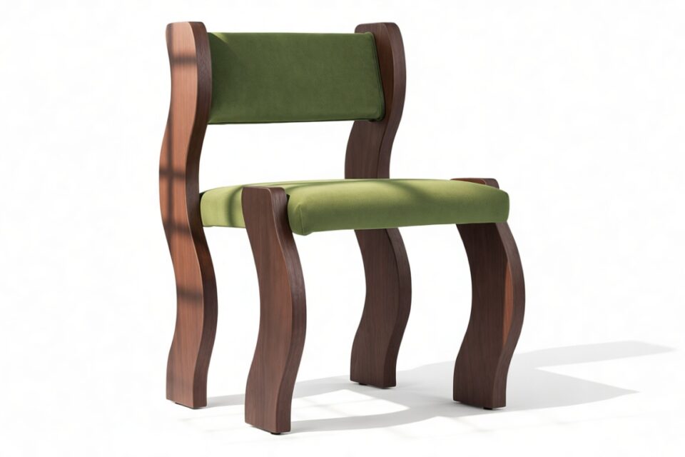 Elevate your modern space with the vibrant Ola Side Chair, a stylish blend of velvet upholstery and dark walnut frame. Its unique wave-shaped design adds a touch of sophistication to any room, making it perfect for contemporary interiors. This versatile chair effortlessly combines trendy style with practicality, whether used for dining or as a standout occasional piece.