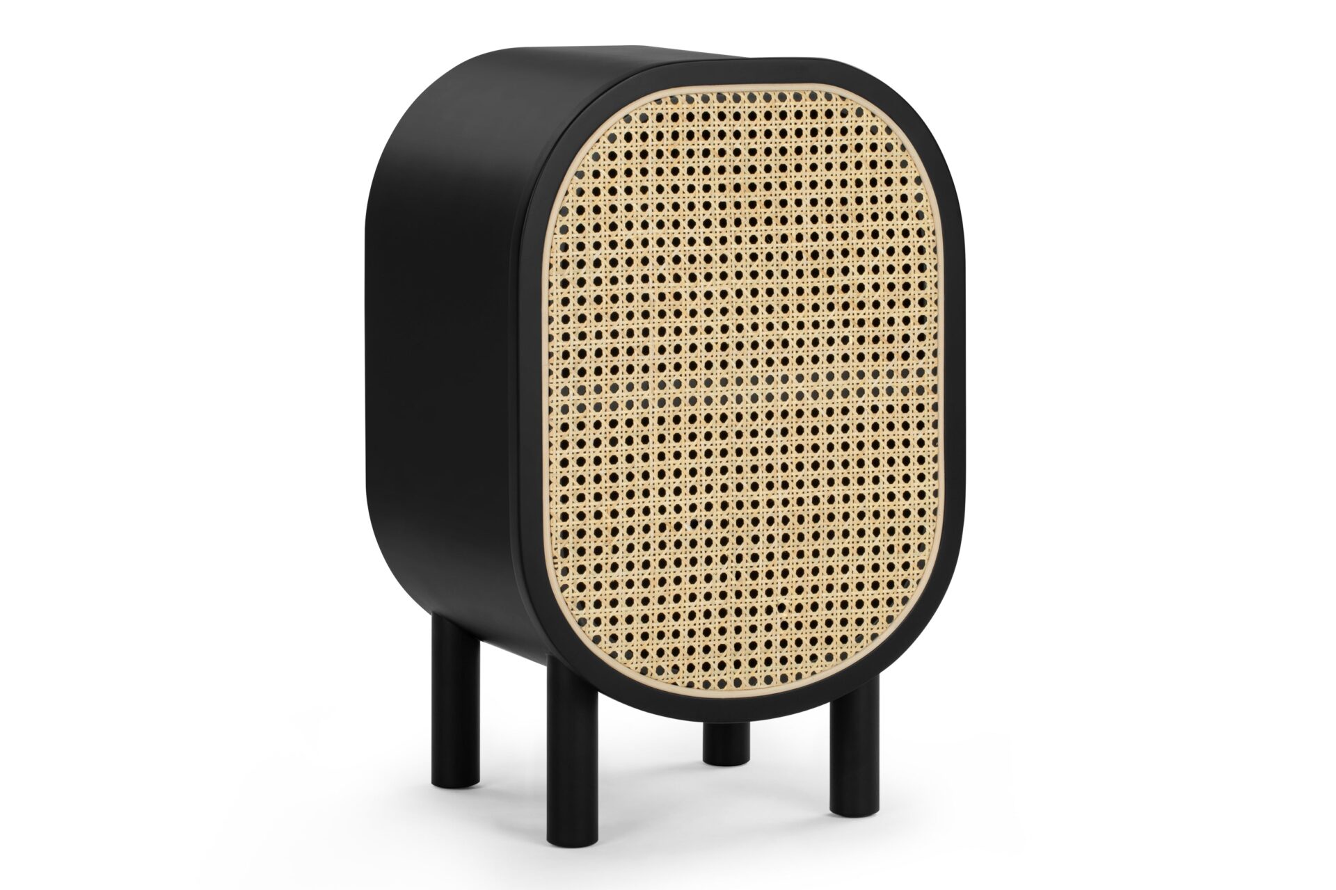Introducing the Oma Side Table, crafted with natural rattan and a sleek matte black ash frame. Elevate your space with this versatile piece that seamlessly combines style and functionality. Ideal for concealing clutter or keeping essentials within easy reach.