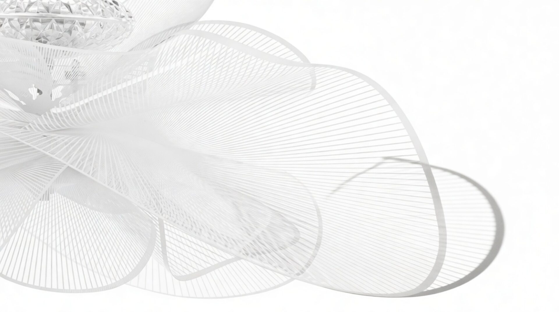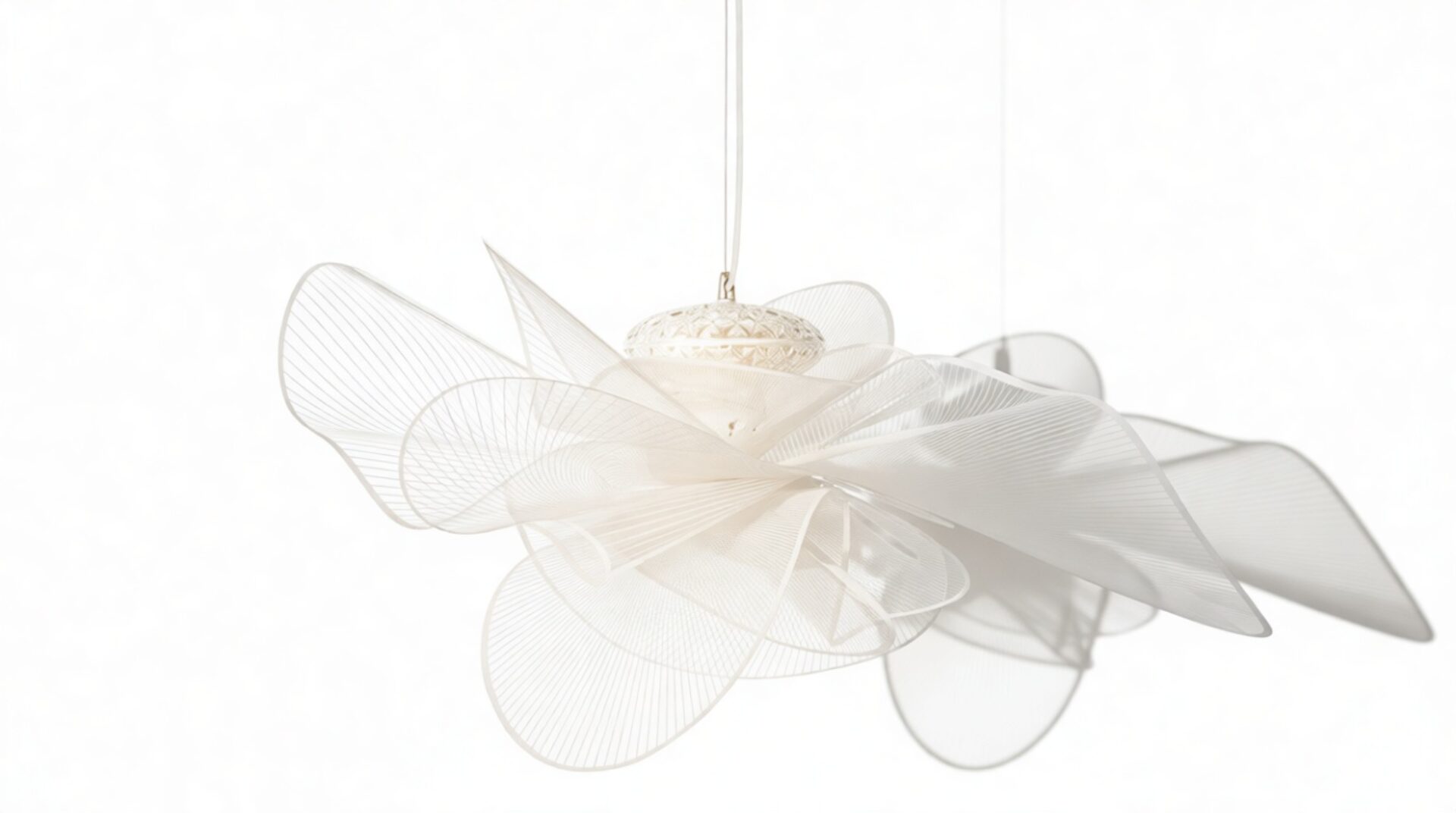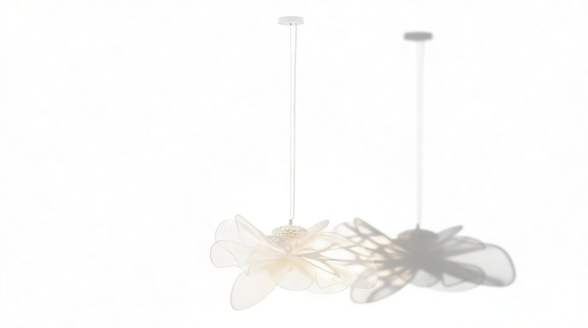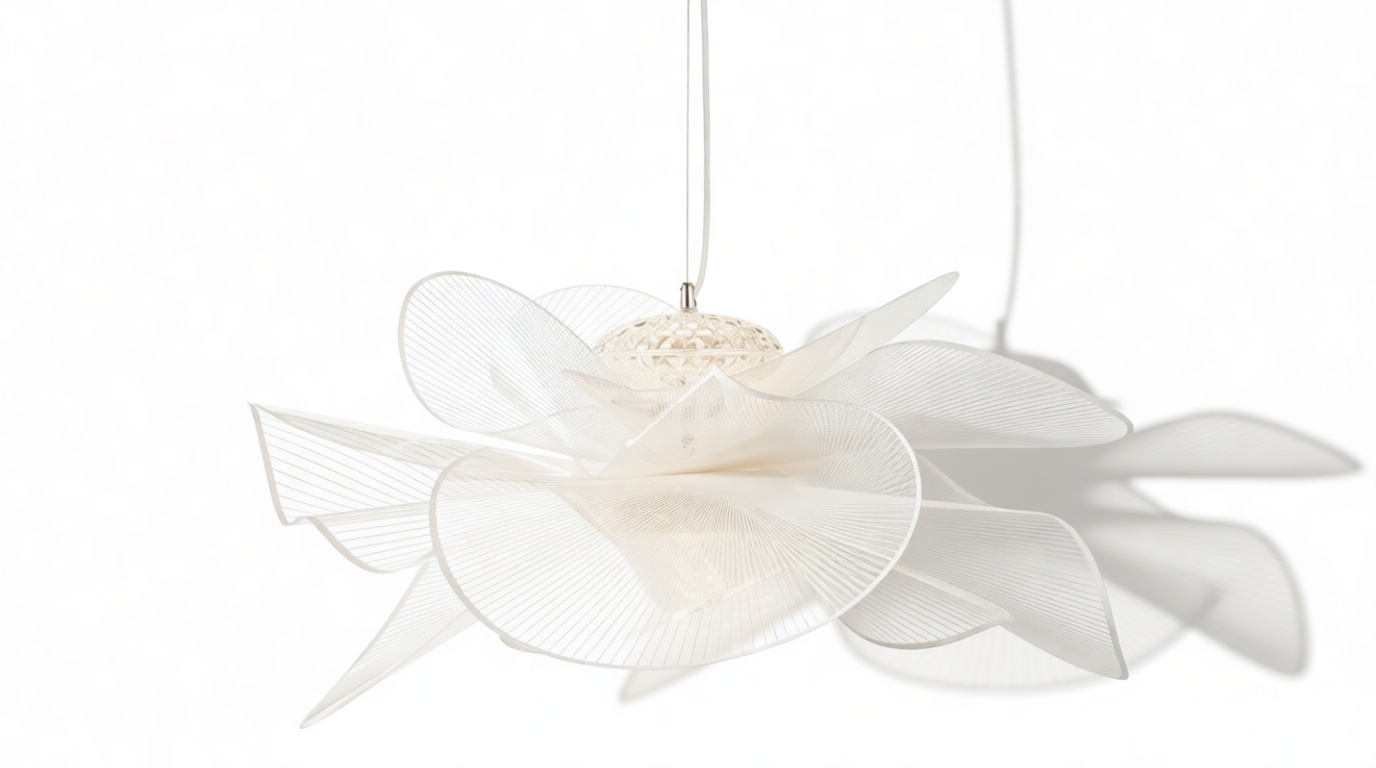 Experience the contemporary elegance of the Organza Ceiling Lamp, a stunning fixture composed of wide, curved acrylic pieces that evoke the movement of undulating waves. Illuminated by an internal LED system encased in a crystal-like compartment, this lamp emits a soft, warm white glow that elevates the atmosphere of any space. Drawing inspiration from the texture and light diffusion qualities of tulle fabric, and suspended by a slender cord, this lamp boasts a remarkably lightweight presence.