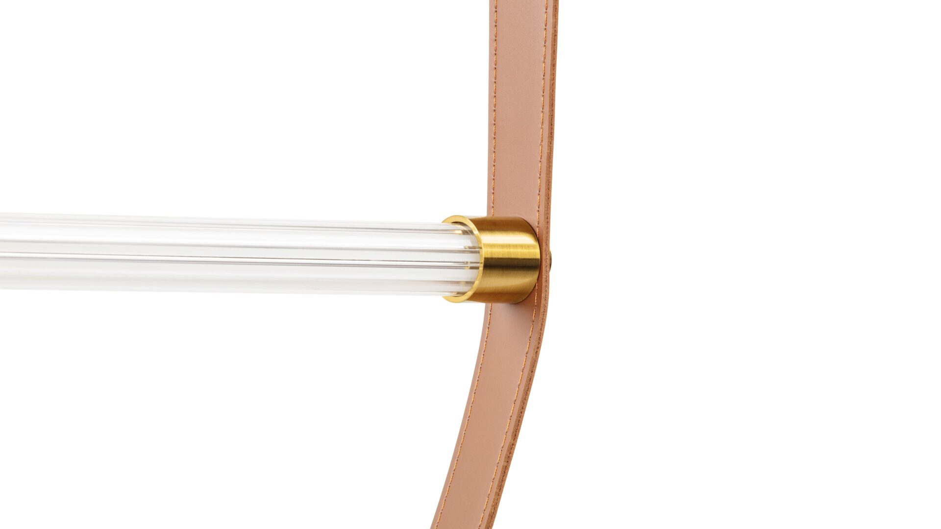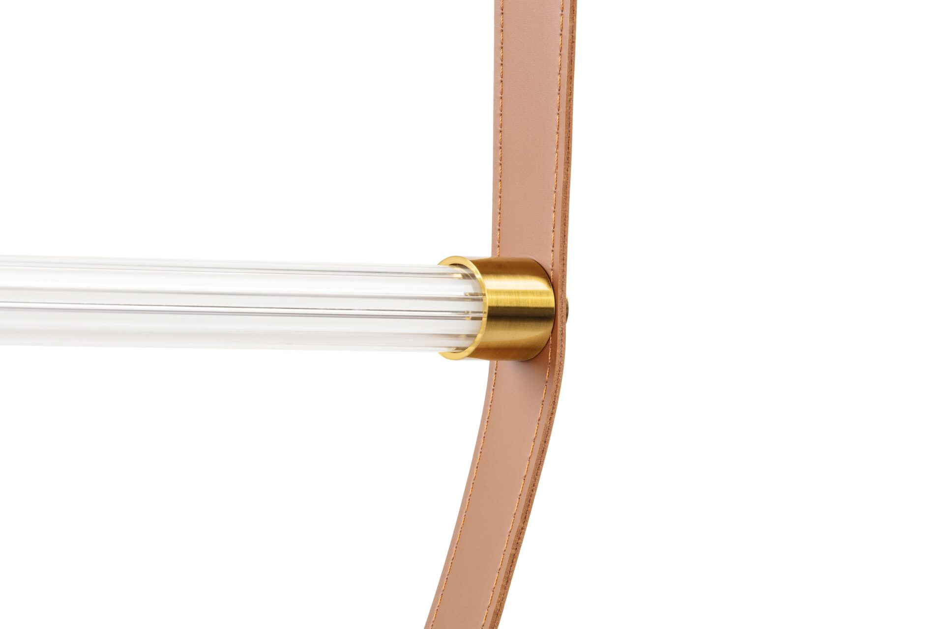 - Material: Leather and stainless steel with brass finish
