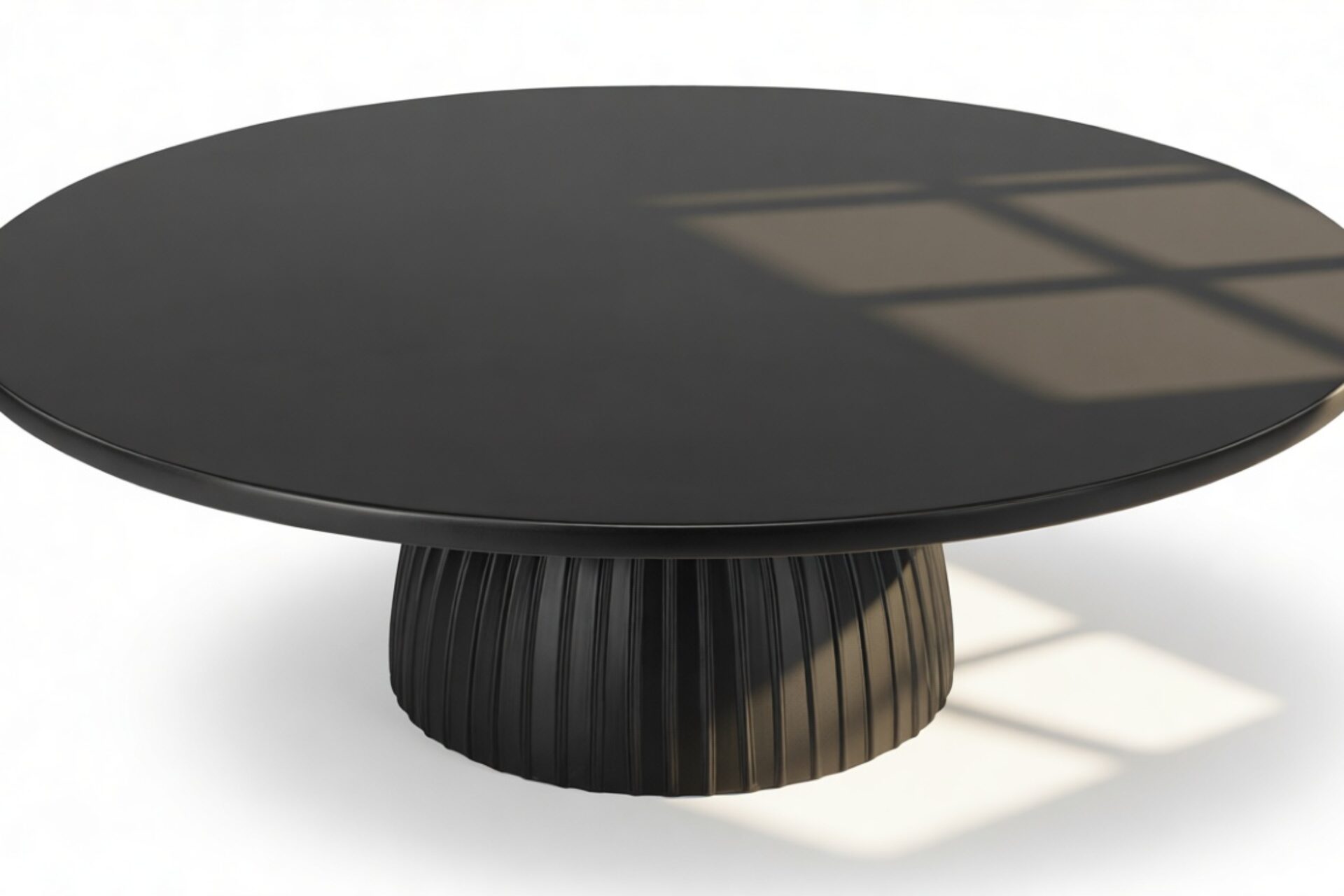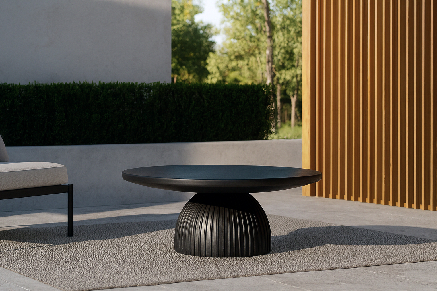 Elevate your space with the striking sophistication of the Orione Coffee Table in black. Its sturdy weighted base ensures durability for indoor or outdoor use, while the fluted design and slim neck create a sleek, modern look. Perfect for contemporary interiors, this table seamlessly combines style and functionality, offering a timeless piece to elevate any setting.