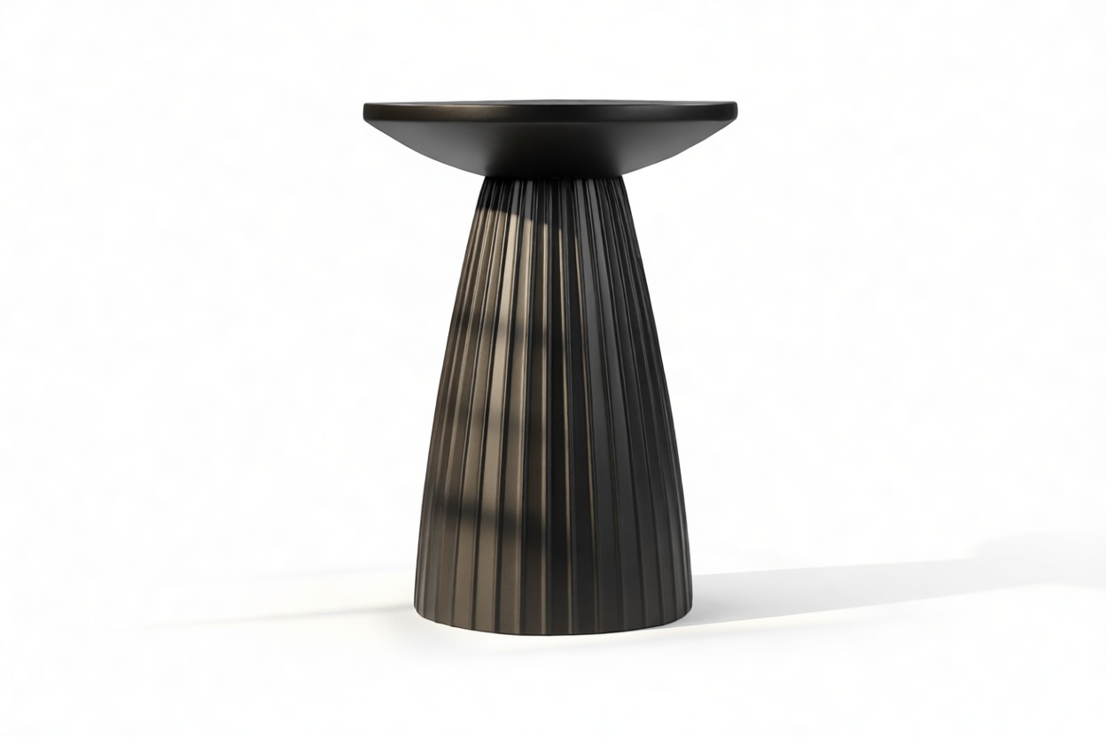 Experience the elegance of the Orione Side Table which embodies a sleek and contemporary aesthetic with its fluted base and delicate, balancing neck, creating a sense of understated sophistication for both indoor and outdoor settings. Its captivating design is sure to elevate any space, seamlessly complementing any décor.
