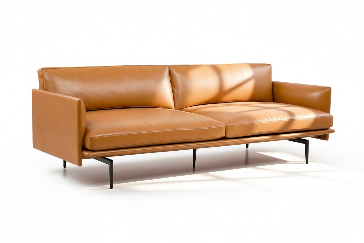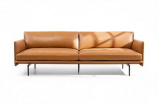 Discover the Outline collection, a modern nod to Scandinavian designs of the 1960s with a touch of vintage charm. The Outline Three-Person Sofa, upholstered in Tan Premium Leather, boasts timeless elegance and clean lines. Its deep, foam-filled seat and powder-coated metal legs offer maximum comfort, making it a sophisticated addition to any modern living space.