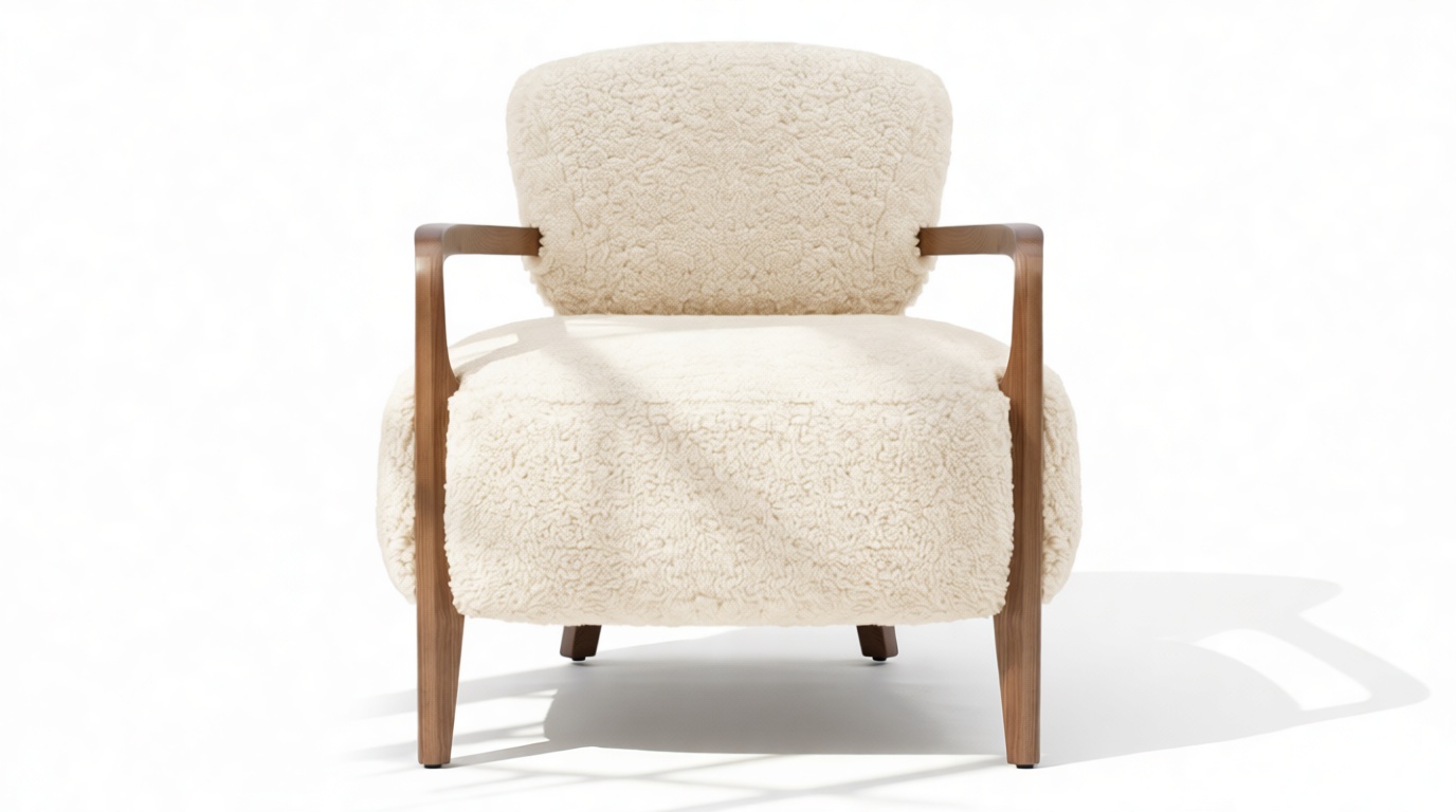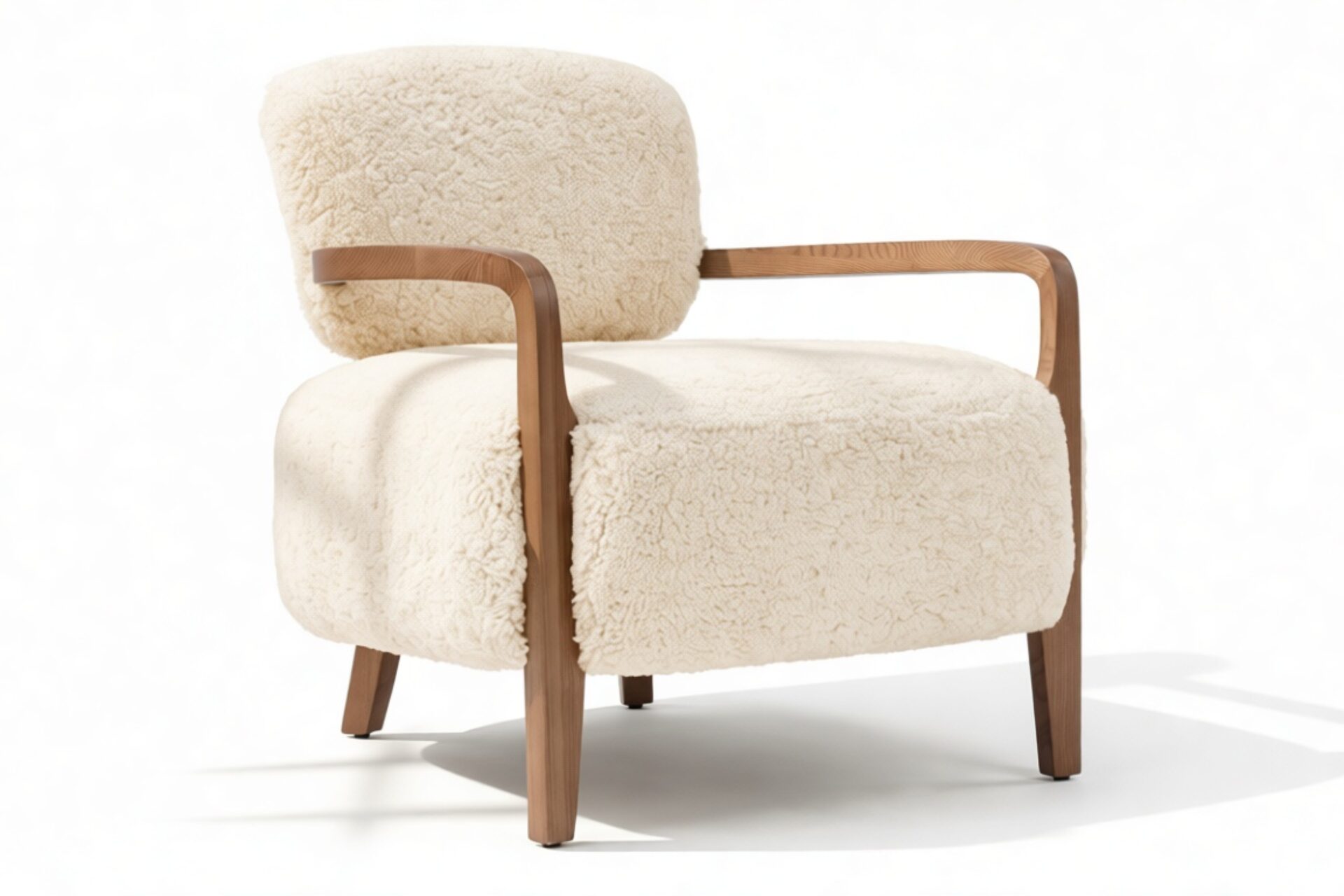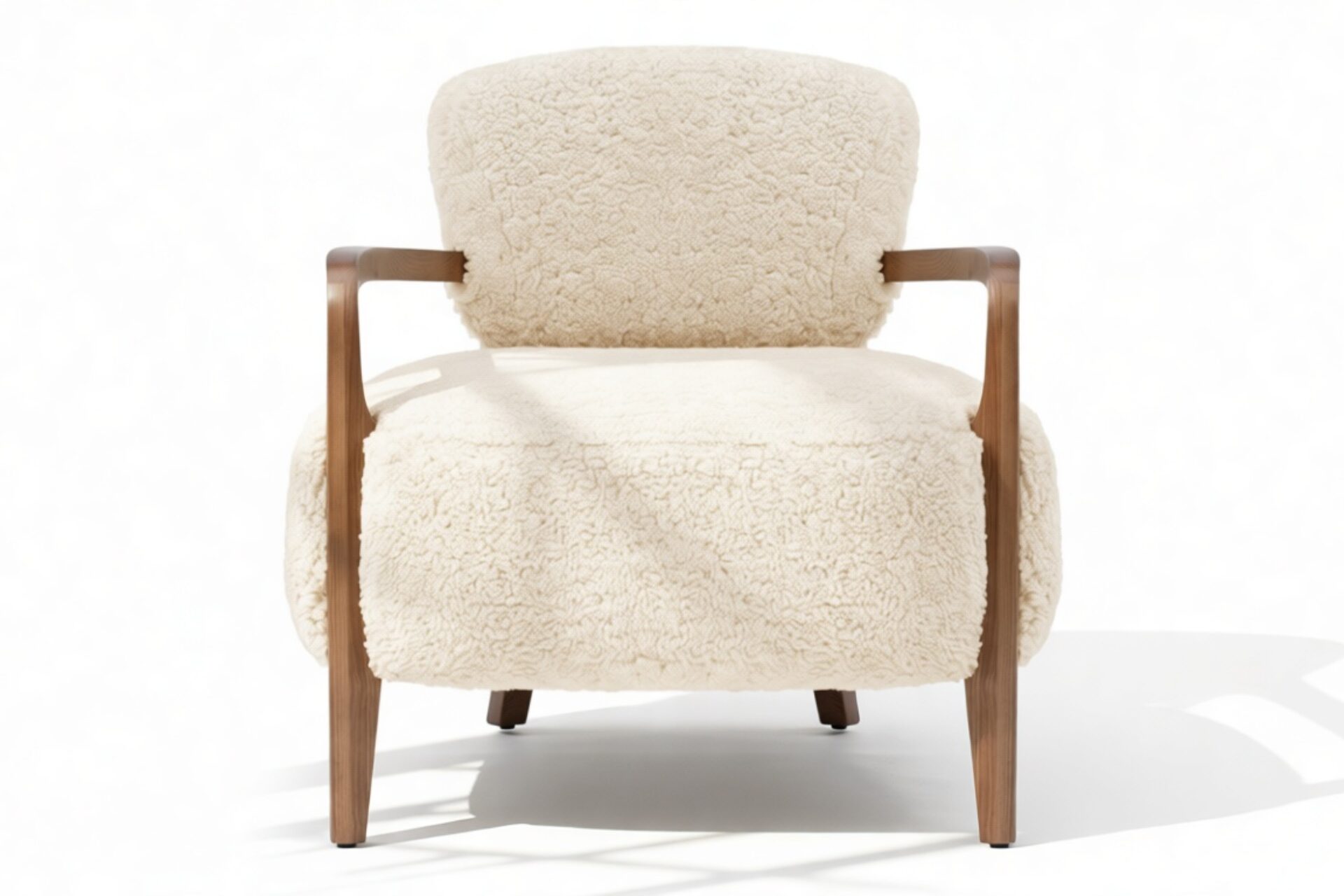 Elevate your space with the Palapa Chair, a luxurious seating choice designed with plush vegan sheepskin. Its sophisticated profile effortlessly complements any interior style, from living rooms to cozy reading corners. The Natural Luxe Sheepskin upholstery of the chair offers indulgent comfort, enhanced by generous cushioning and a sturdy walnut frame. Add elegance and warmth to your home with this Nordic-influenced statement piece.