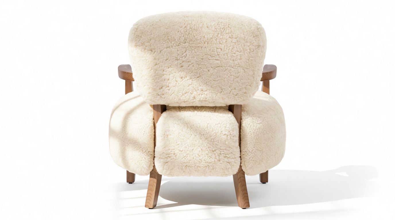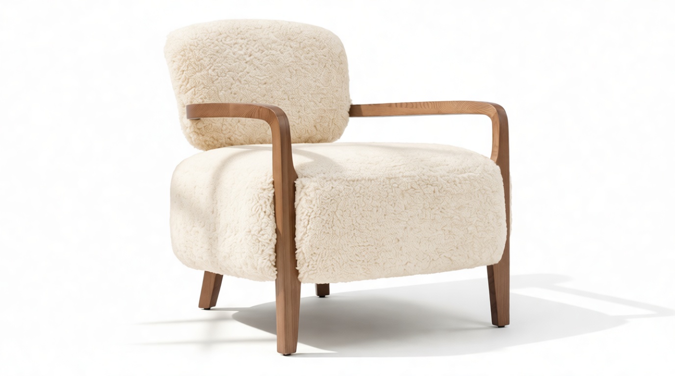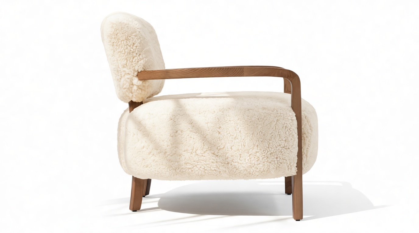 Elevate your space with the Palapa Chair, a luxurious seating choice designed with plush vegan sheepskin. Its sophisticated profile effortlessly complements any interior style, from living rooms to cozy reading corners. The Natural Luxe Sheepskin upholstery of the chair offers indulgent comfort, enhanced by generous cushioning and a sturdy walnut frame. Add elegance and warmth to your home with this Nordic-influenced statement piece.