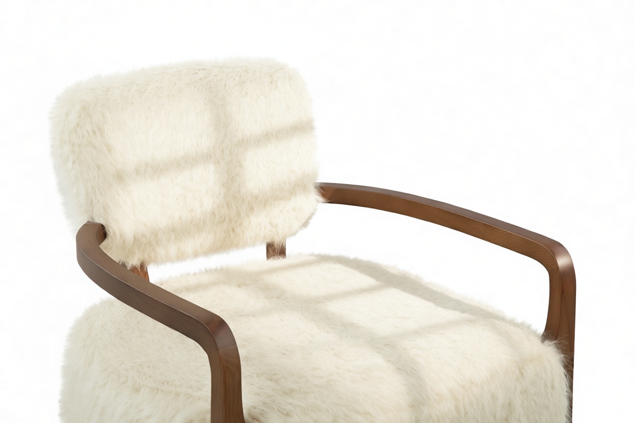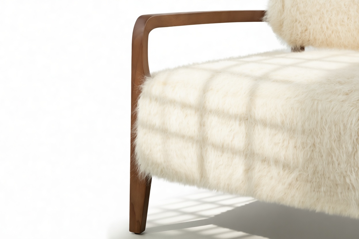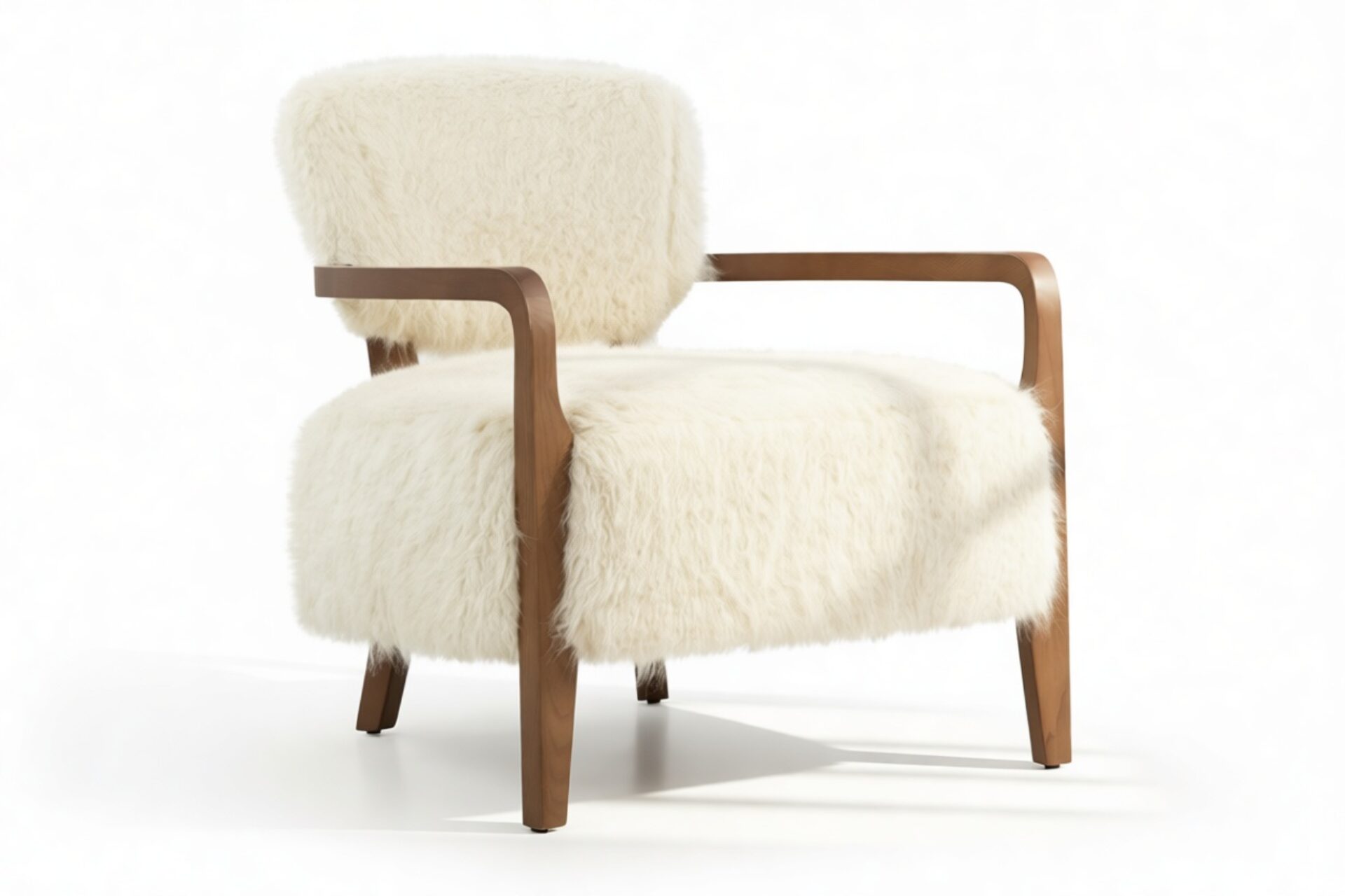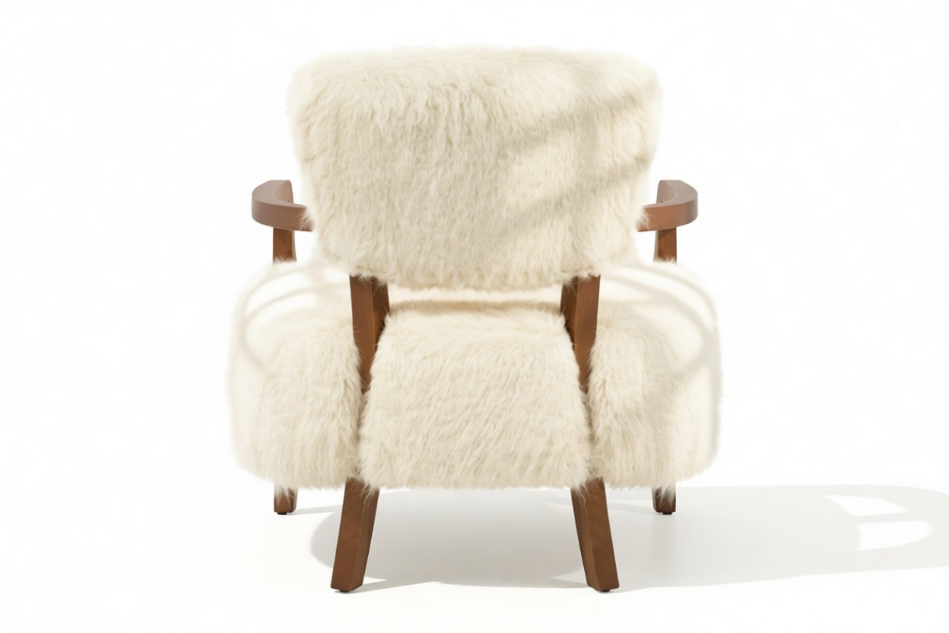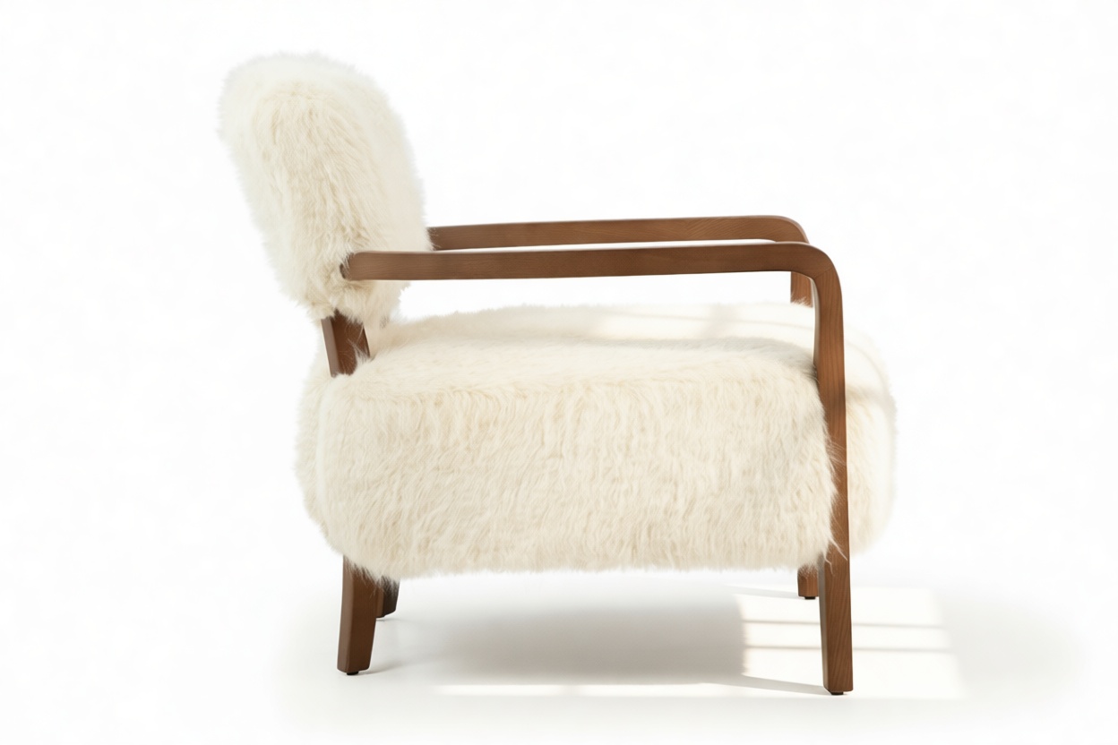 Drift into luxury with our Vegan Sheepskin Armchair. Enveloped in sumptuous vegan sheepskin upholstery, this armchair offers an indulgent seating experience. The natural texture and softness of the sheepskin create a sense of warmth and luxury, making it the perfect spot to curl up and relax. Sink into the generous cushioning and supportive foam padding for optimal comfort, while the sturdy wooden frame ensures durability and stability.