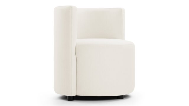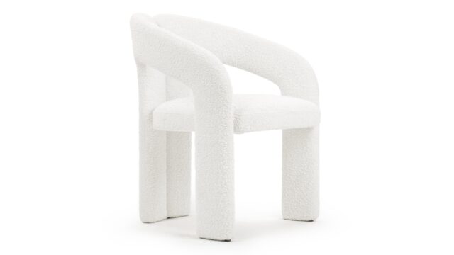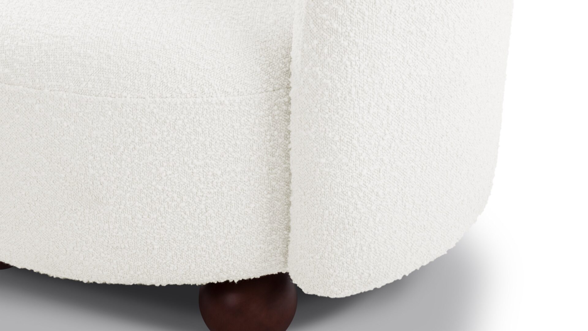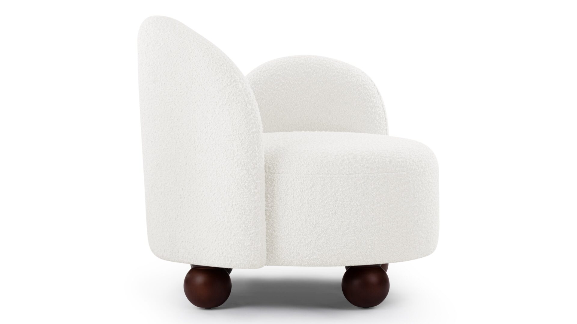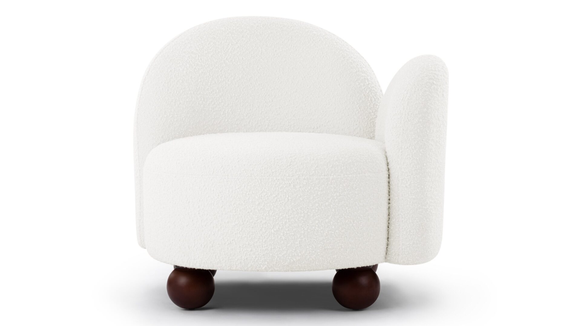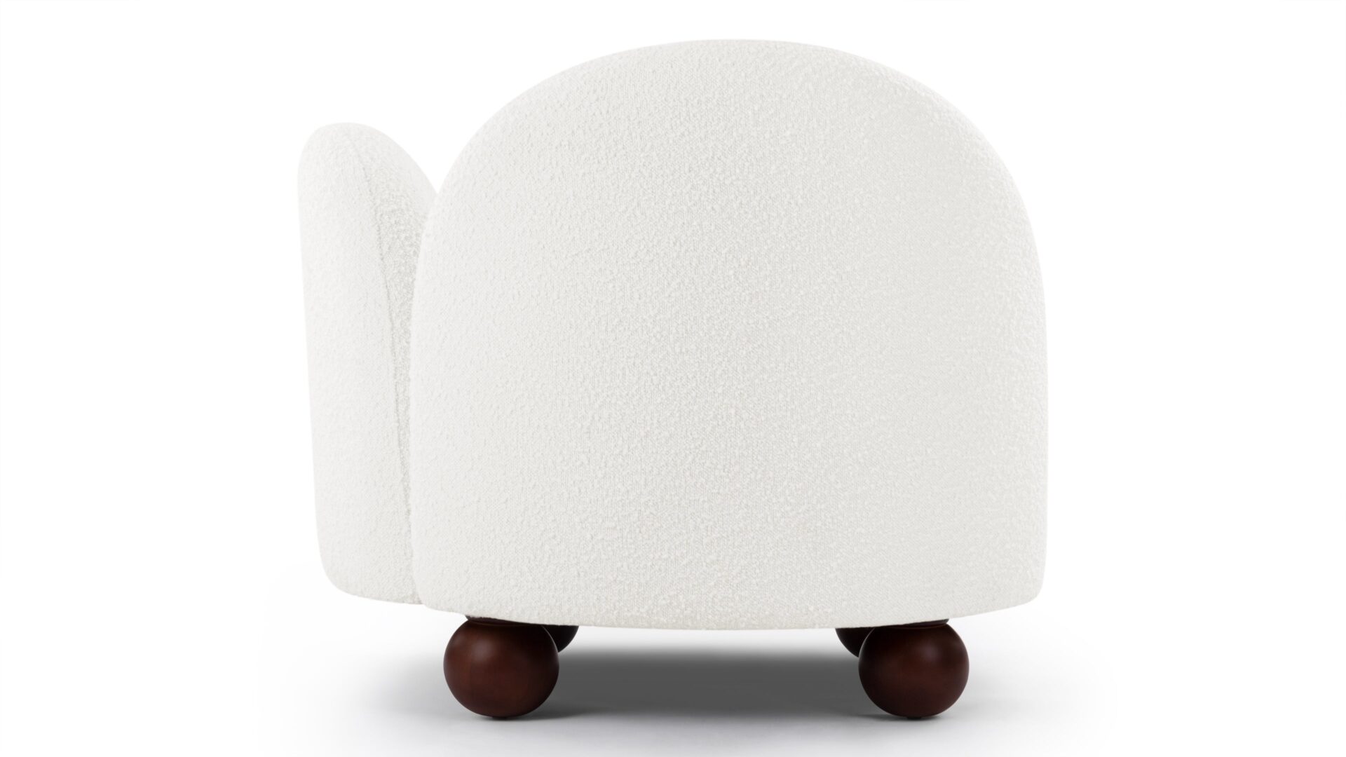 Enhance the design of the chair with this plush, light-colored boucle featuring densely-packed looping tufts for added warmth and texture. The chair is complemented by the stylish yet neat contrast of the dark-colored ball feet.