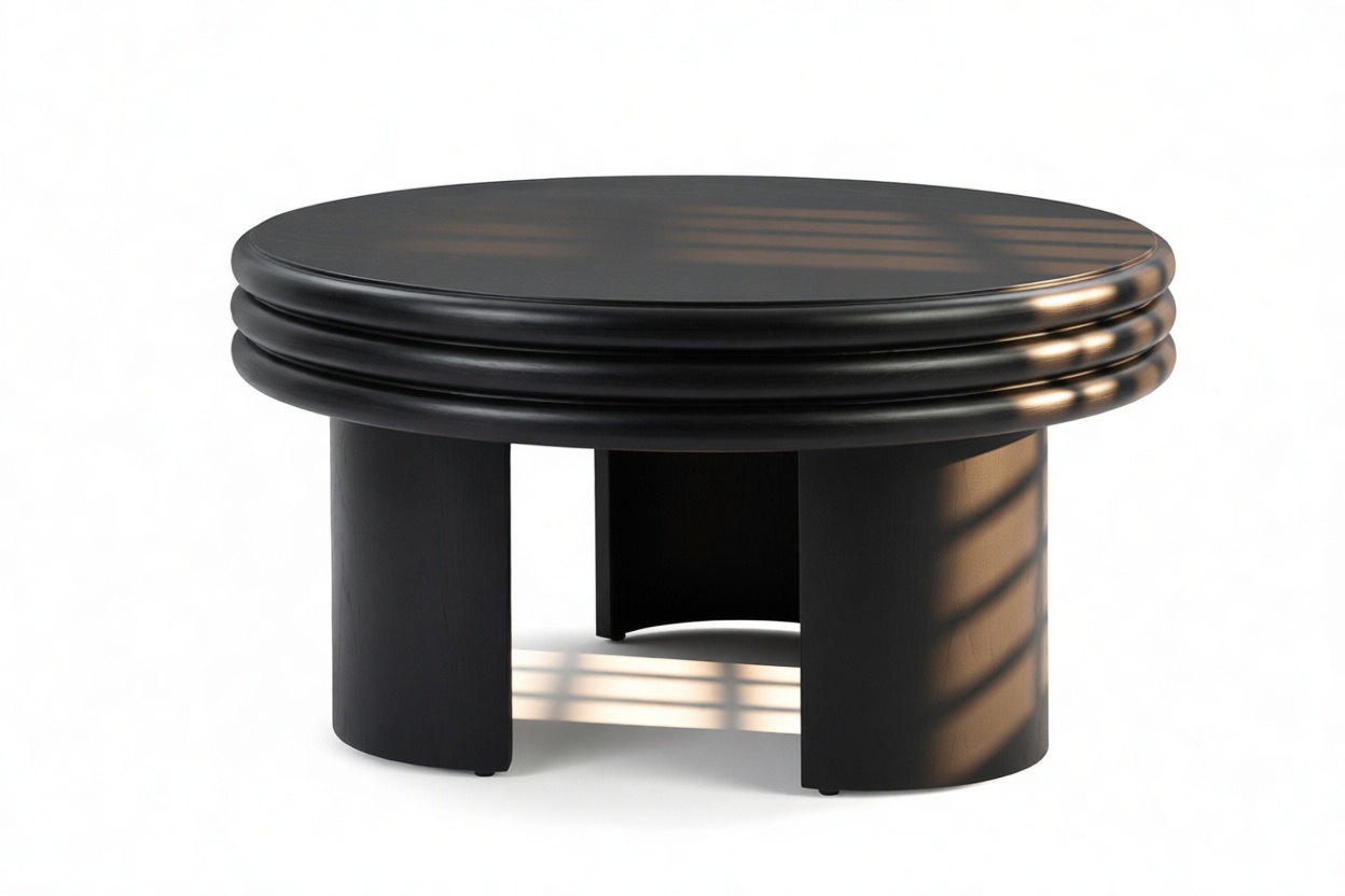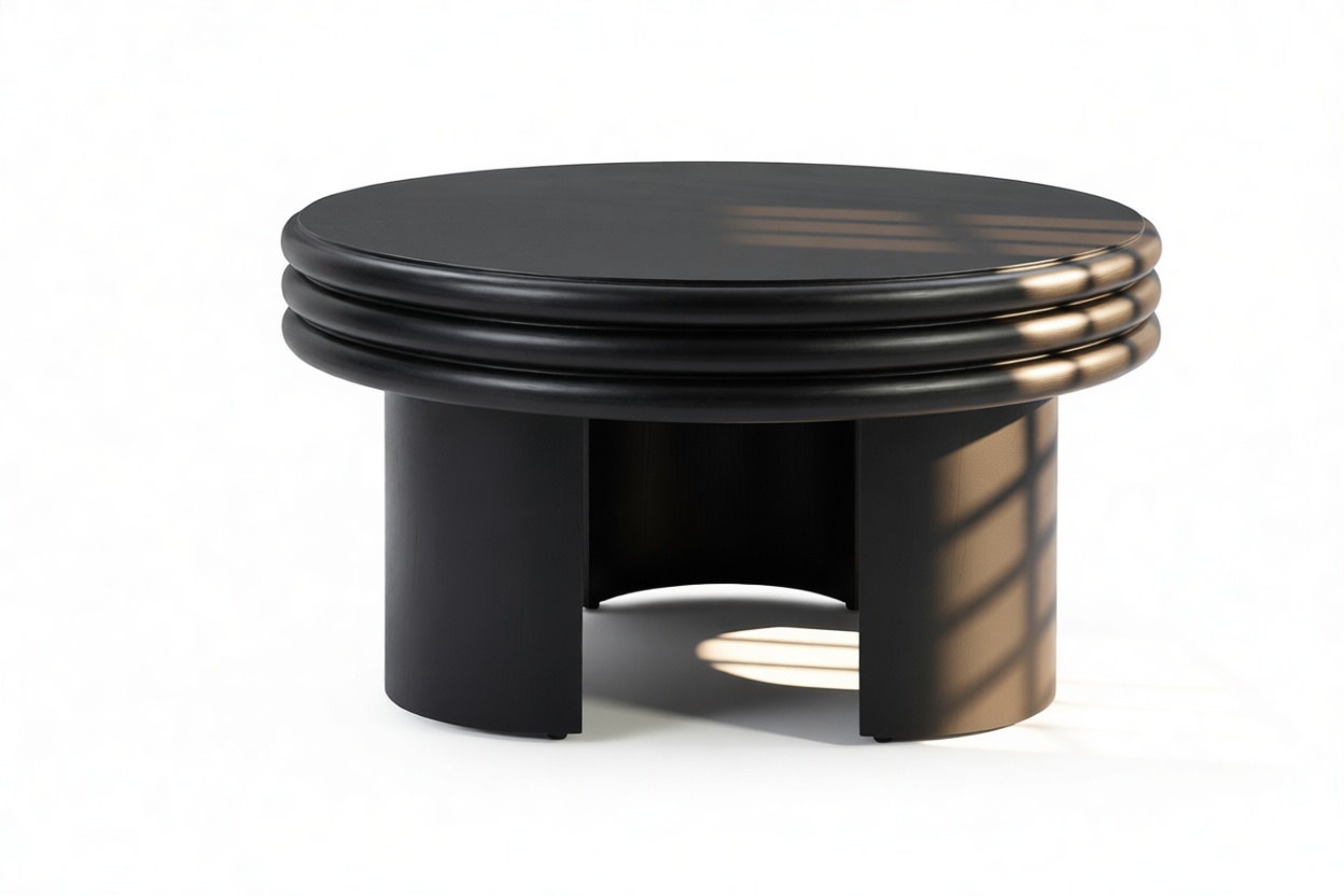 Upon first observation, the round silhouette of the Pasquale Round Coffee Table emanates a feeling of harmony and equilibrium, beckoning you to discover its intricate characteristics. The tabletop, a work of art in its own right, showcases a unique stacked design that enhances depth and visual appeal.