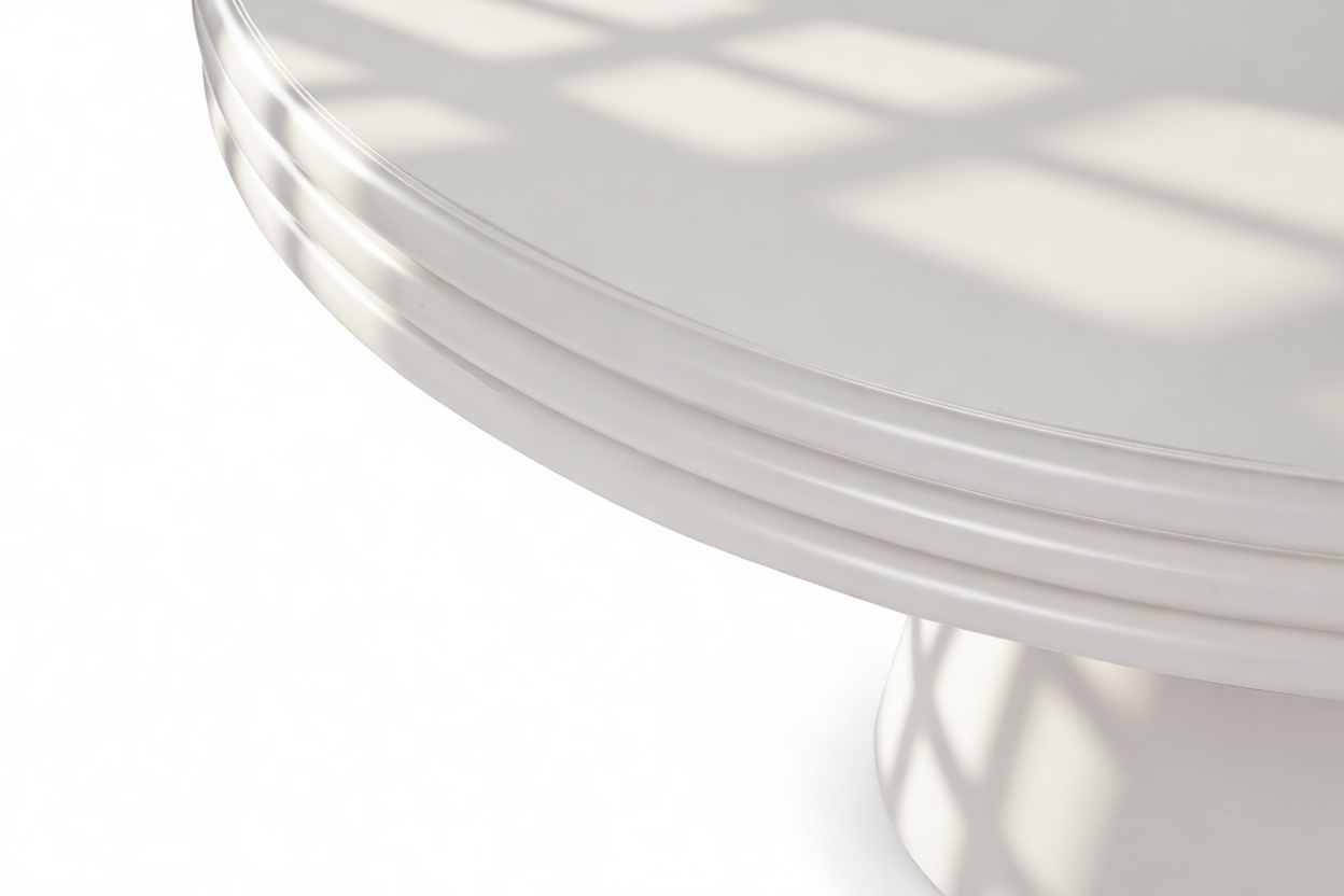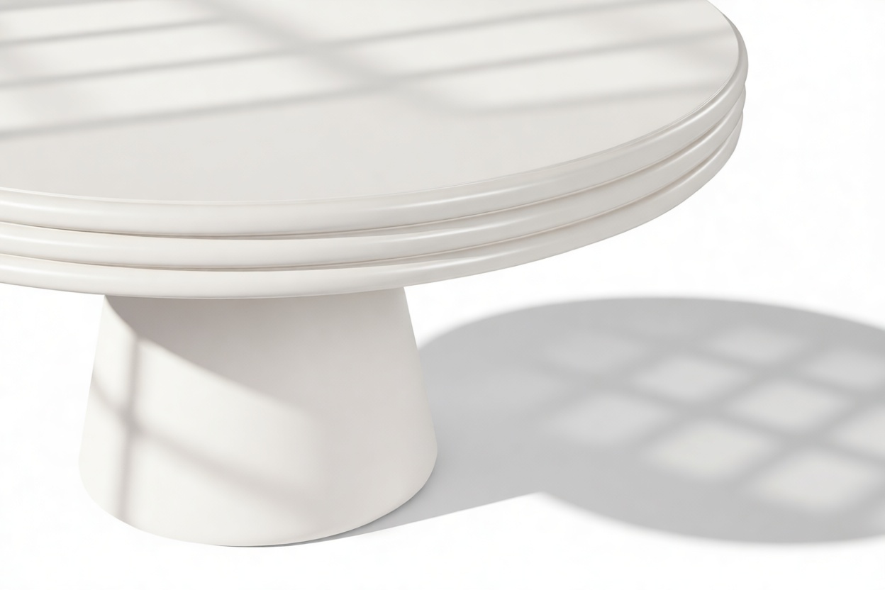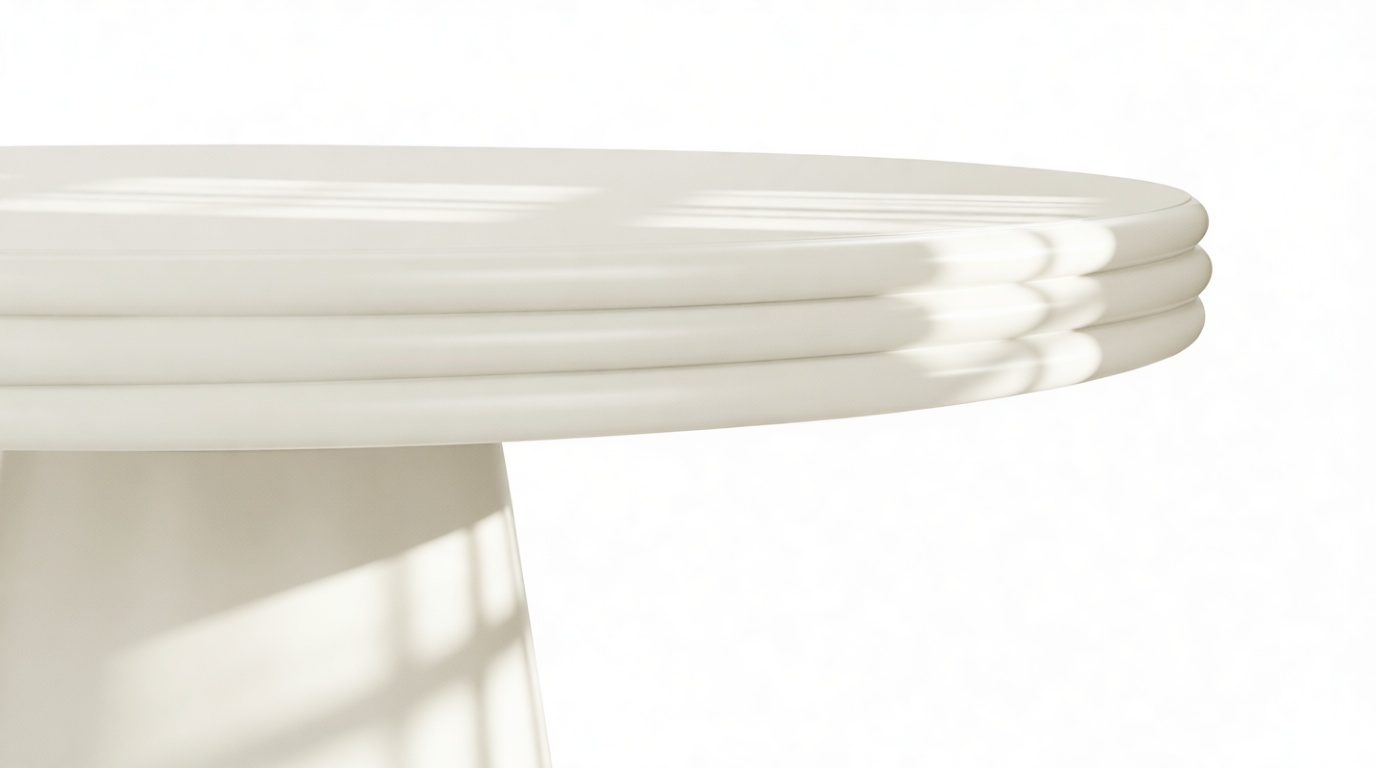 Upon first look, the round silhouette of the Harmony Dining Table exudes a sense of balance and harmony, beckoning you to discover its intricate details. The tabletop, a work of art on its own, showcases a unique stacked design that enhances depth and visual intrigue.