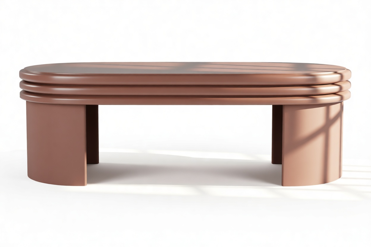 Introducing the Pasquale Oval Coffee Table, a modern marvel that merges sophistication with ingenuity in furniture design. Precision and detail are at the forefront, seamlessly blending style and practicality to create a captivating centerpiece for any room. Crafted as part of the Pasquale Collection, this terracotta-hued table complements other coordinating pieces, ensuring a cohesive aesthetic. Boasting durability and exquisite beauty through premium materials, this table elevates any space with its elegant finishing touches. With a unique stacked pattern and ample space for display or storage, the Pasquale Oval Coffee Table exudes captivating flexibility, effortlessly enhancing a variety of interior styles.