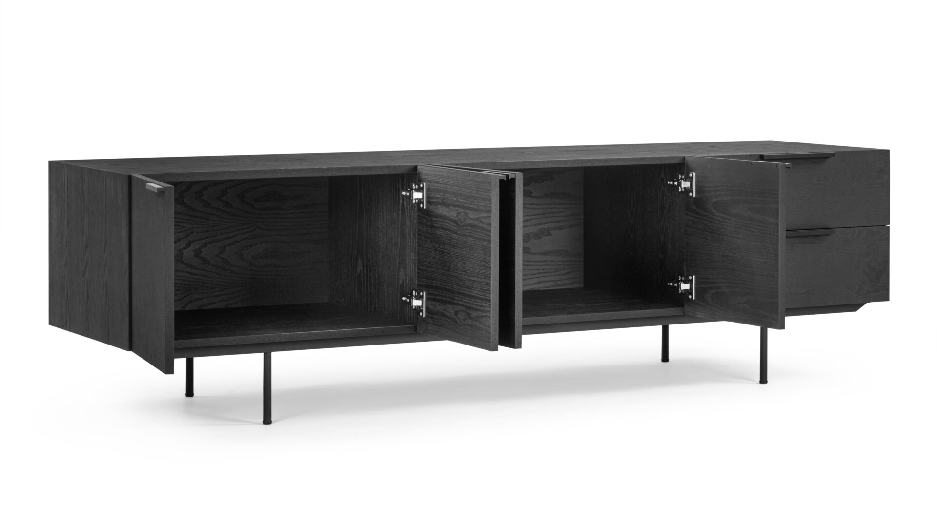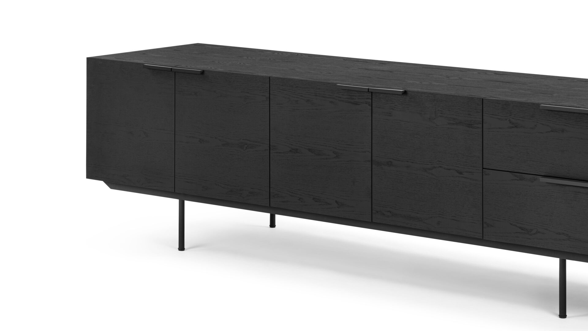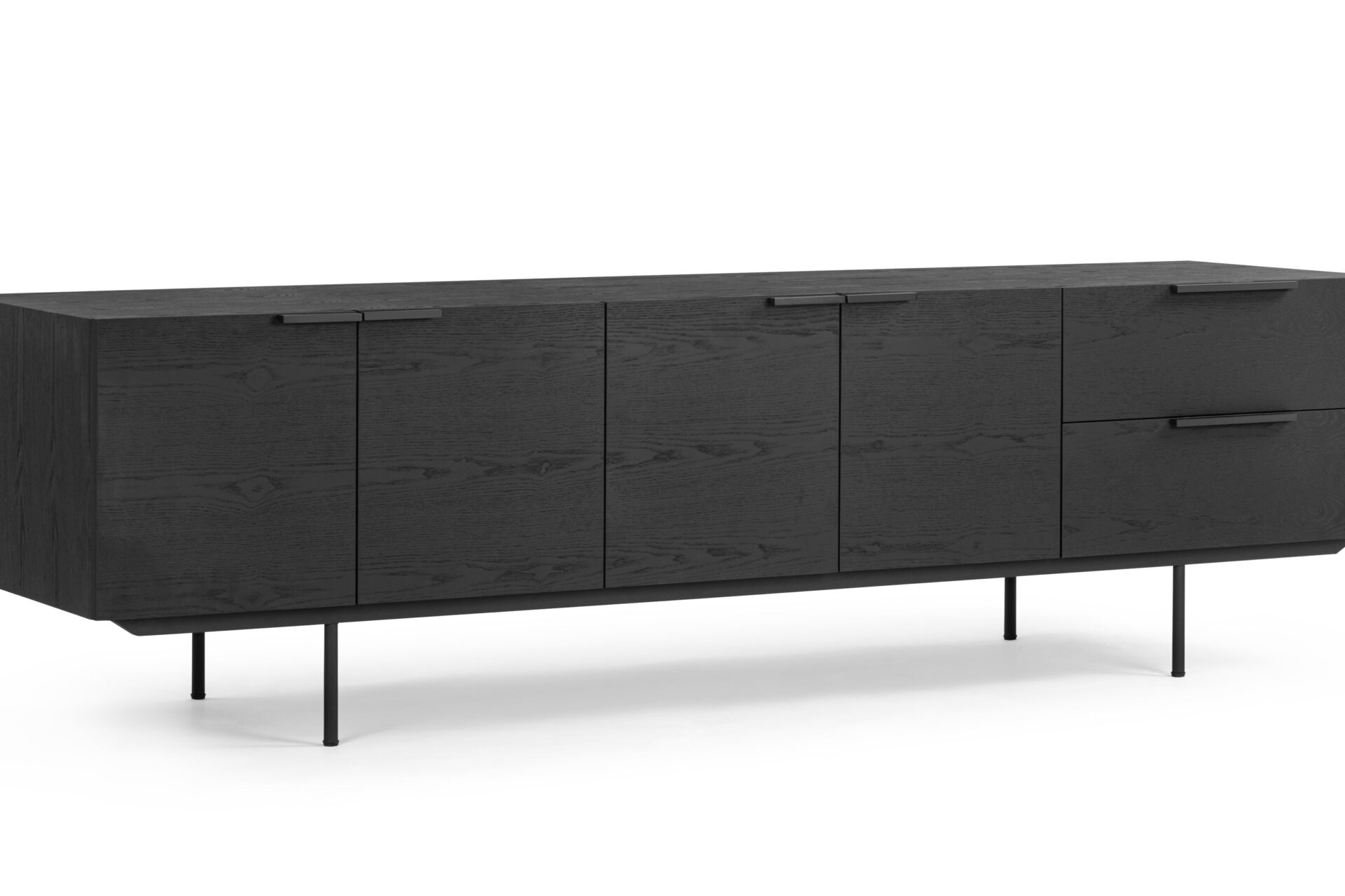 Elevate your space with the sleek and versatile Pastoe Frame-Style Sideboard in Black. This chic and sophisticated piece seamlessly combines practicality and style, featuring a luxurious wooden veneer and sturdy steel base. Its refined finishes and modern design make it perfect for showcasing your style, hosting gatherings, or organizing essentials with ample concealed storage capacity.