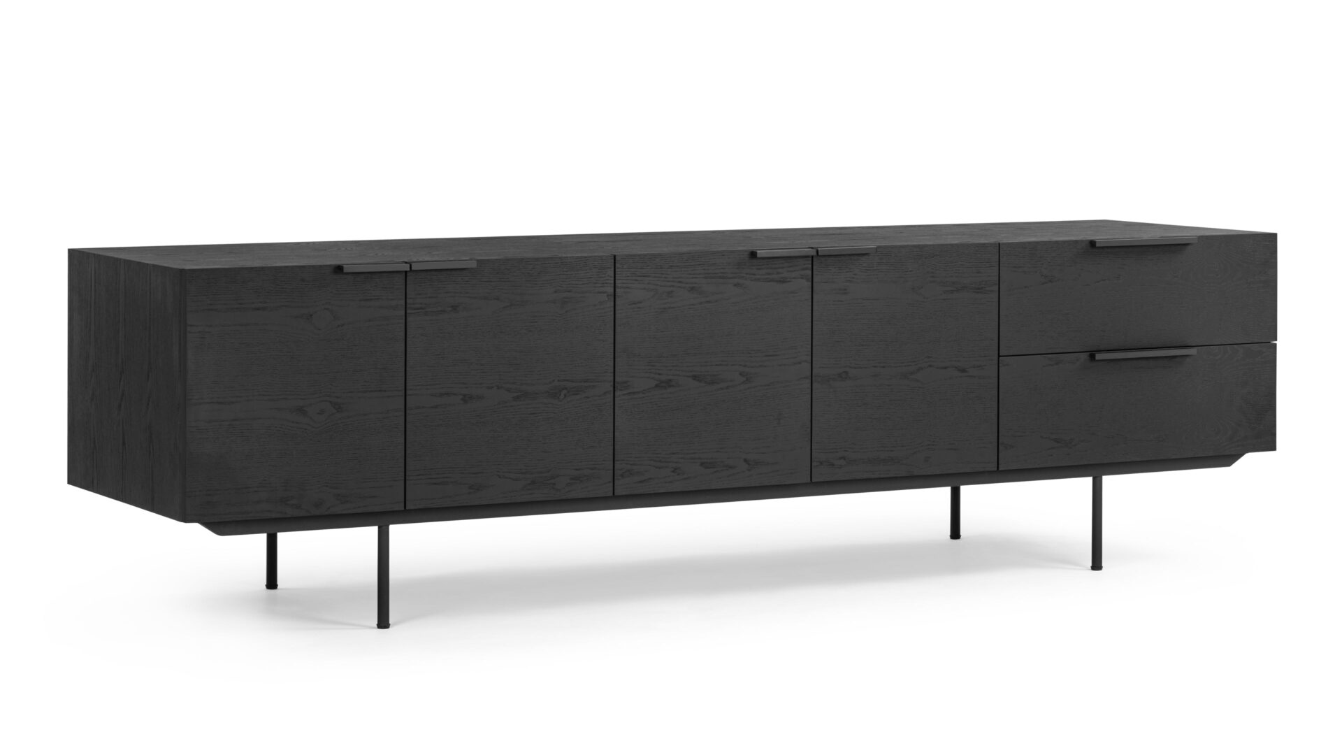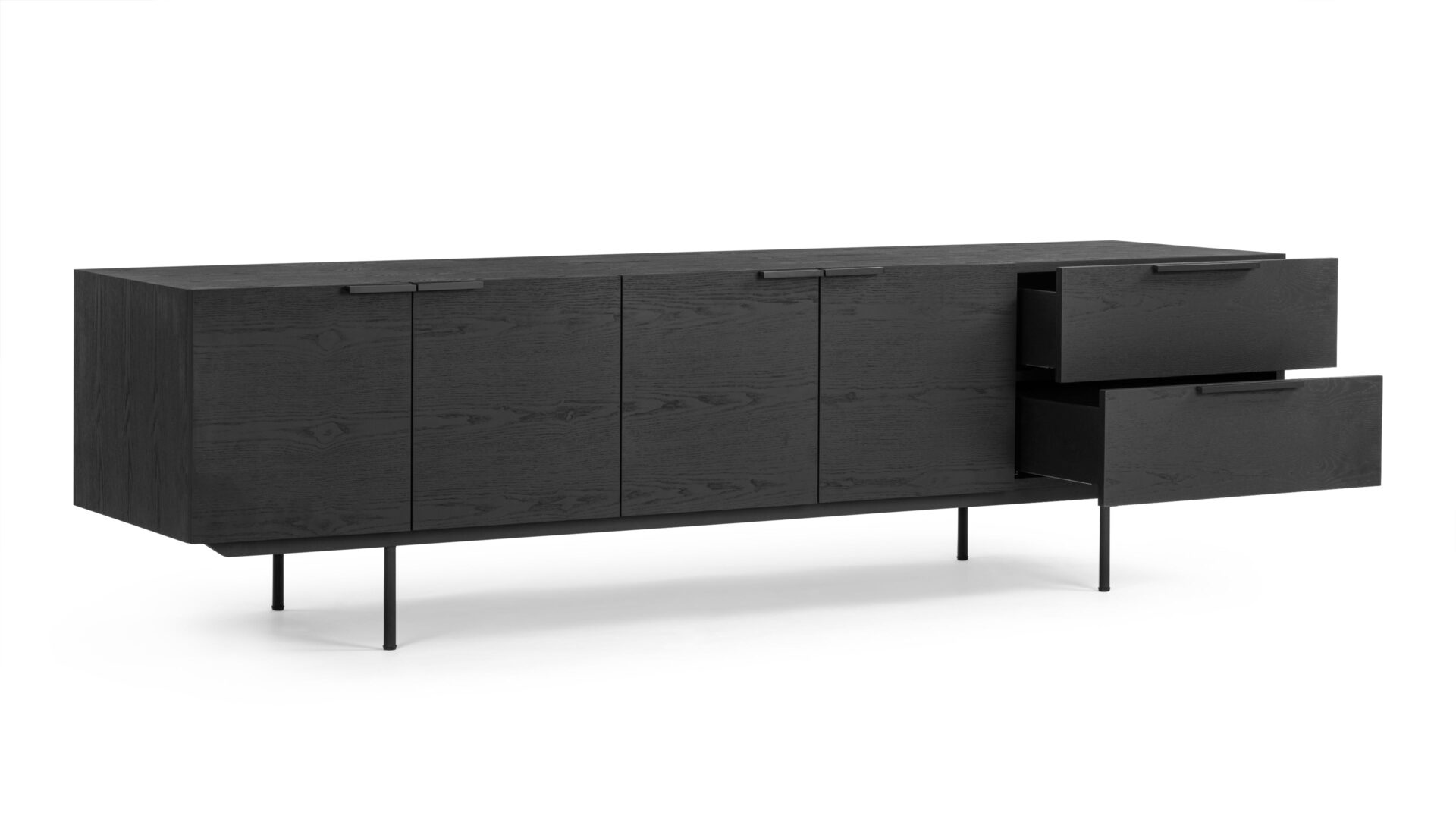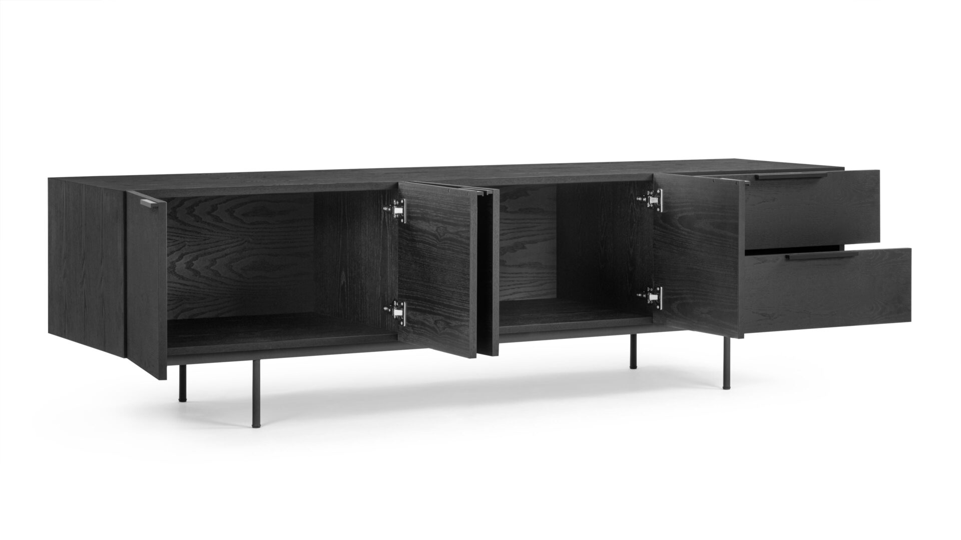 Elevate your space with the sleek and versatile Pastoe Frame-Style Sideboard in Black. This chic and sophisticated piece seamlessly combines practicality and style, featuring a luxurious wooden veneer and sturdy steel base. Its refined finishes and modern design make it perfect for showcasing your style, hosting gatherings, or organizing essentials with ample concealed storage capacity.