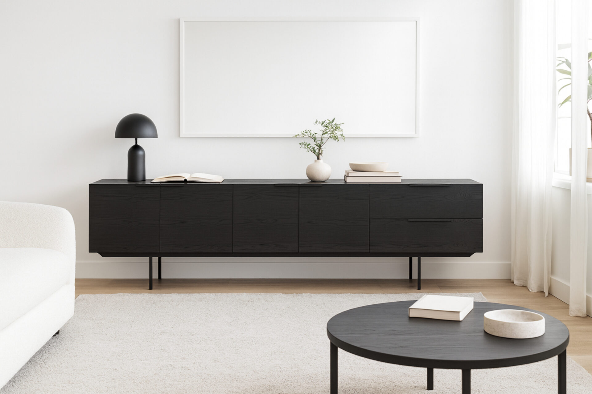 Discover the epitome of modern elegance with the Pastoe Frame-Style Sideboard, boasting clean lines, a horizontal silhouette, and minimalist metal hardware.