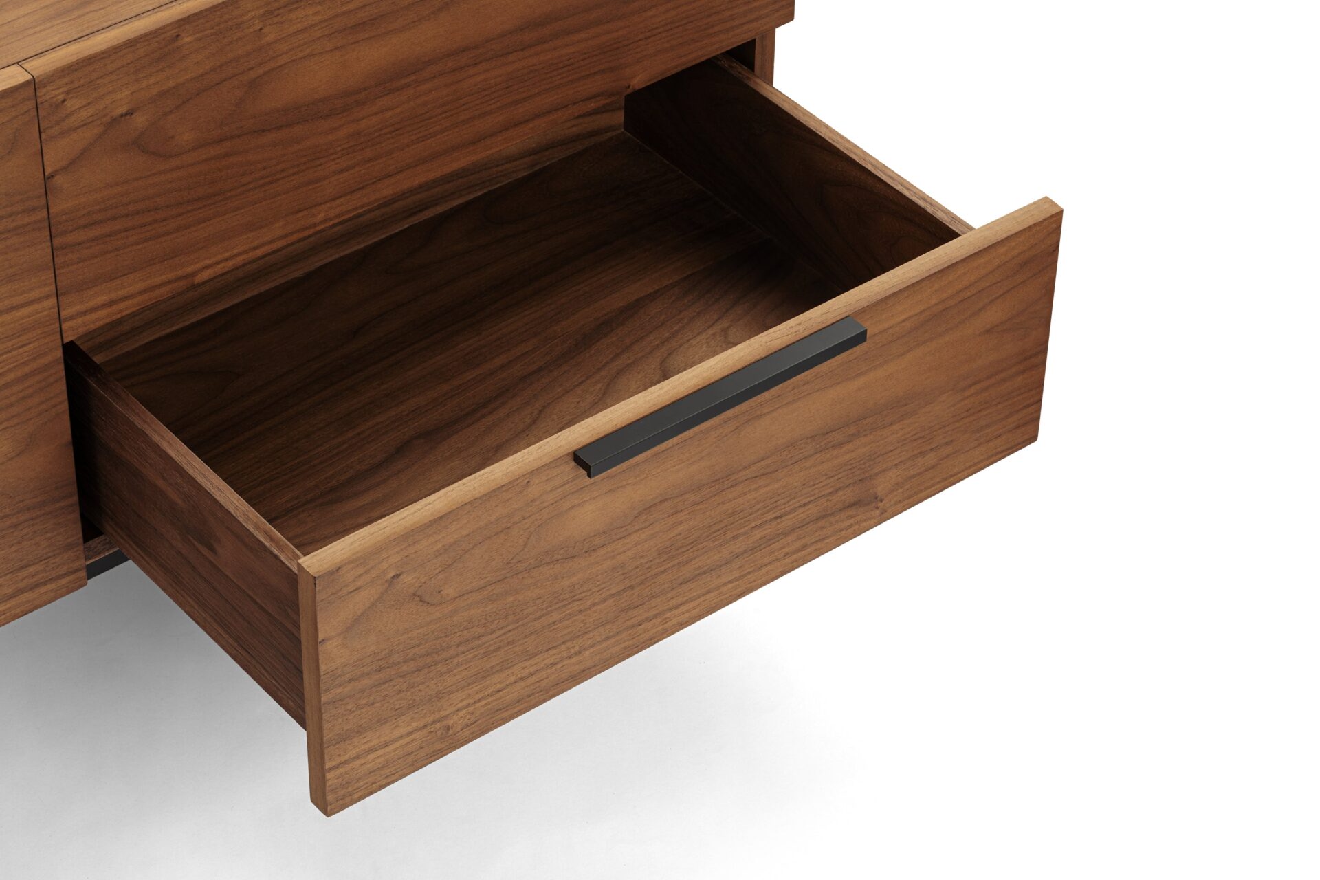 Explore the timeless elegance of the Manhattan Sideboard, showcasing a luxurious walnut veneer and sturdy steel base. Crafted with high-quality materials and enduring craftsmanship, this piece effortlessly complements both casual and formal interiors.