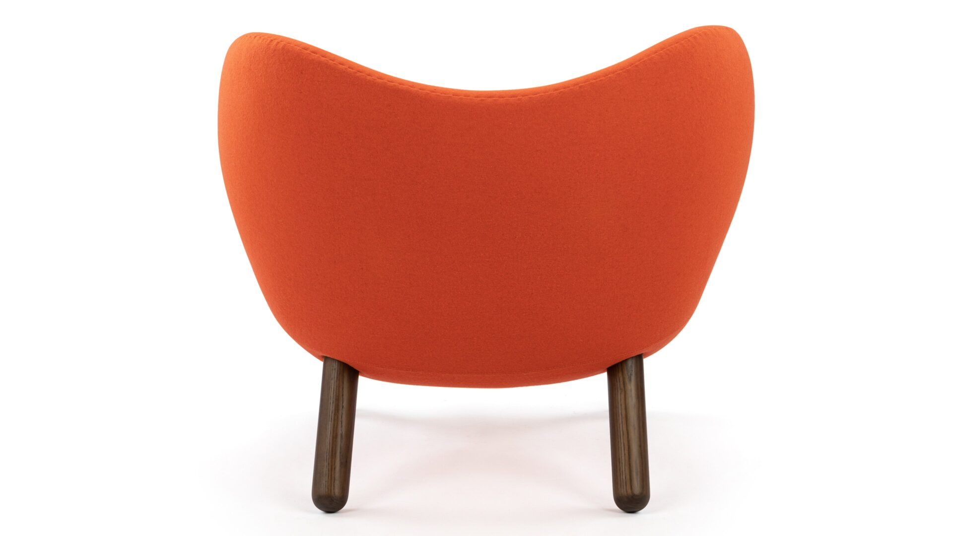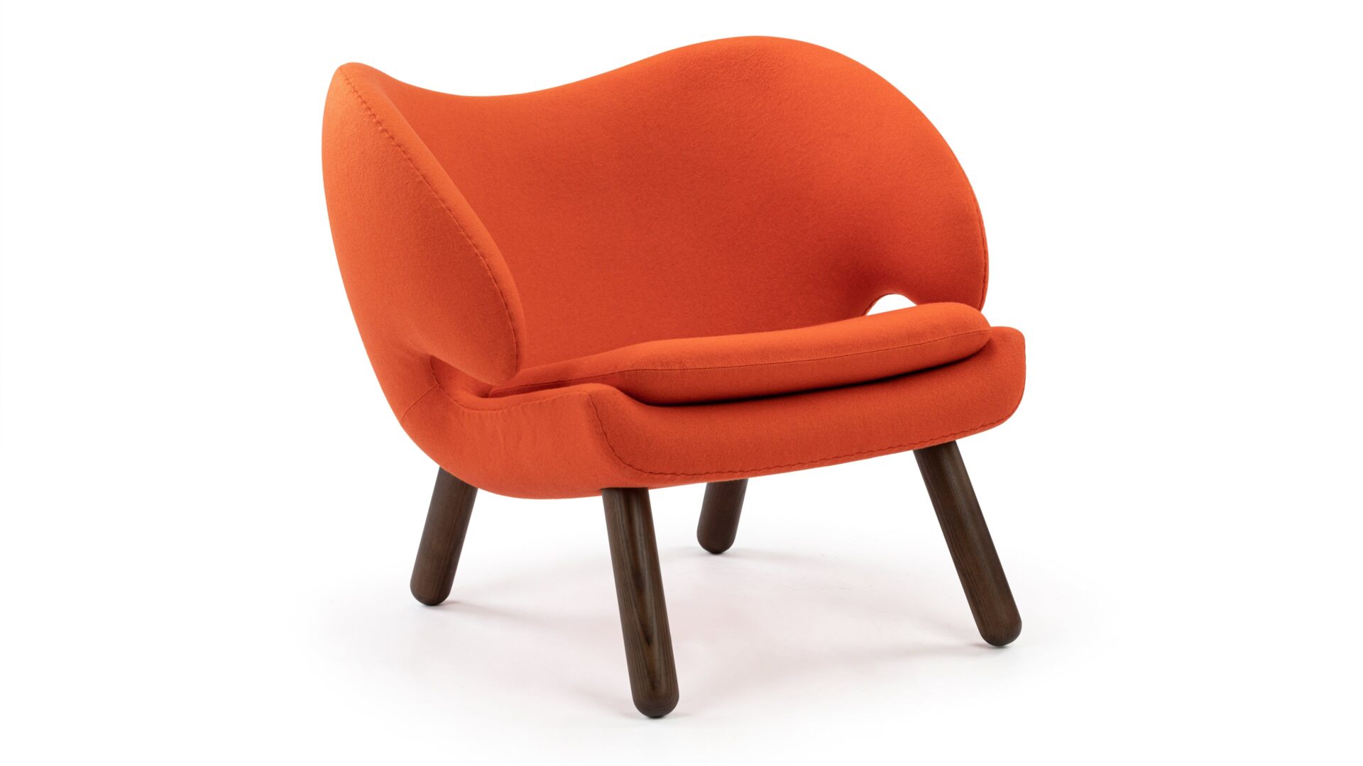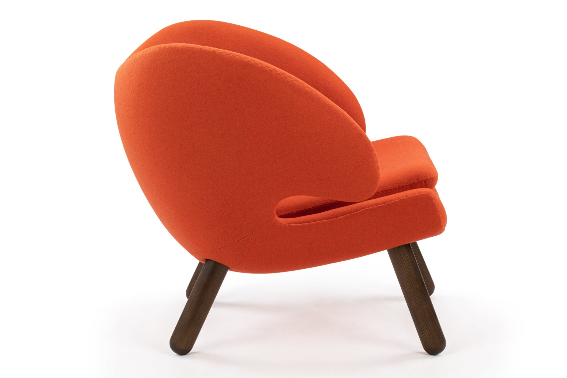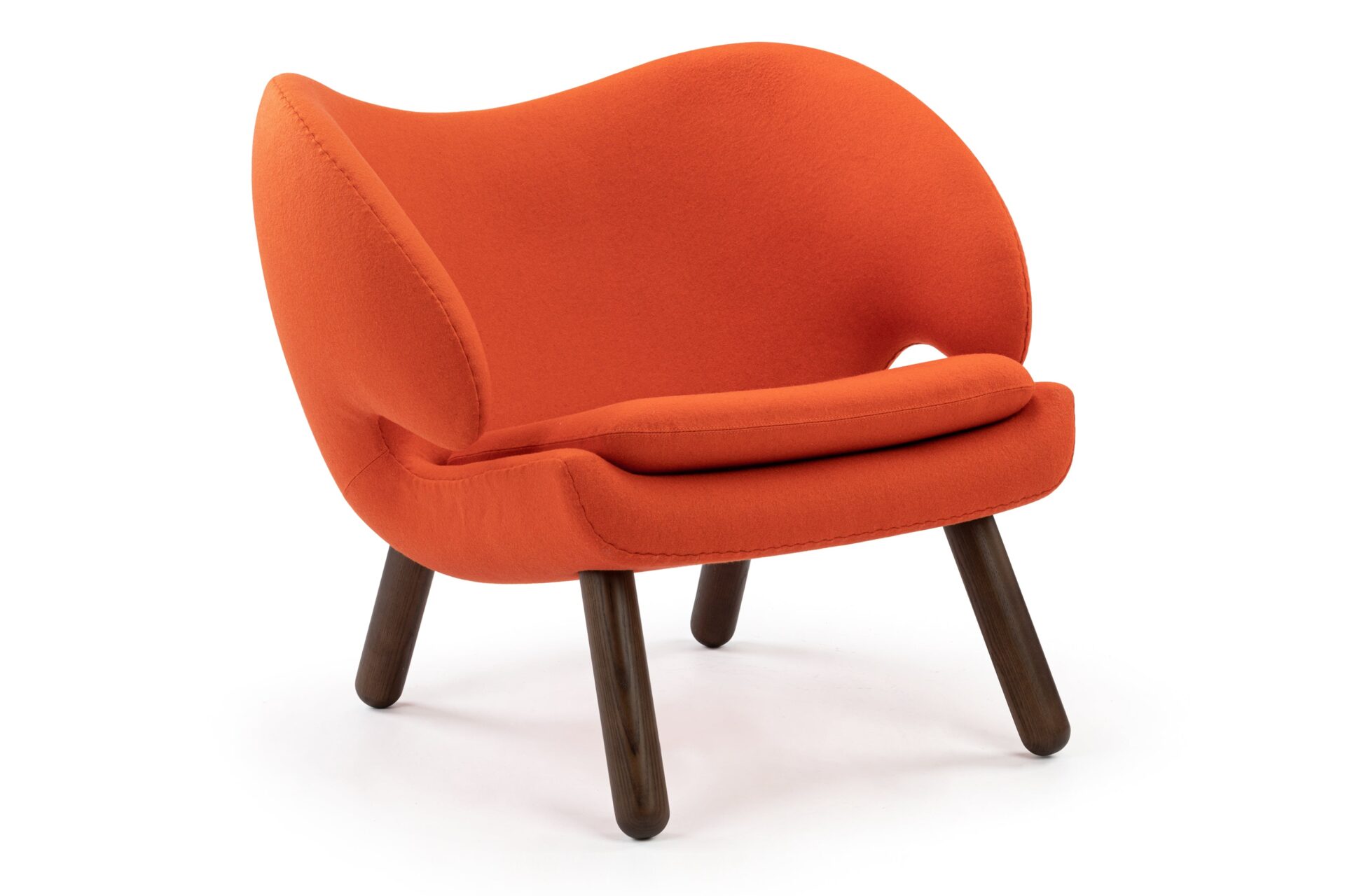 Radiating the spirit of 1940s design, the Pelican Chair captivates with its enduring allure and cozy comfort. Gracefully contoured and featuring plush orange wool upholstery complemented by timeless walnut legs, this iconic Danish masterpiece exudes timeless sophistication. A striking centerpiece that harmoniously fits diverse spaces, emanating a modern aesthetic and a touch of hygge comfort. Crafted with premium materials, this snug lounge chair promises unparalleled quality and exquisite attention to detail, offering a perfect fusion of comfort and style in a vibrant orange hue.