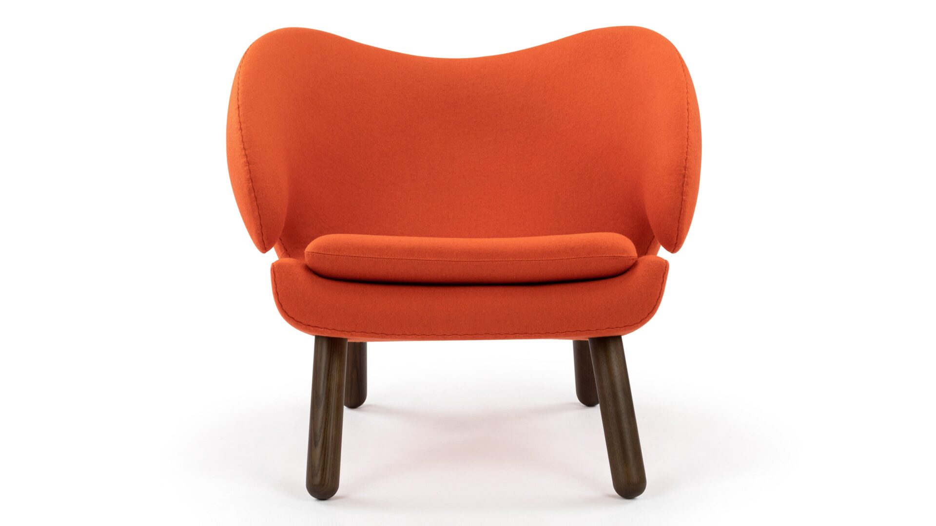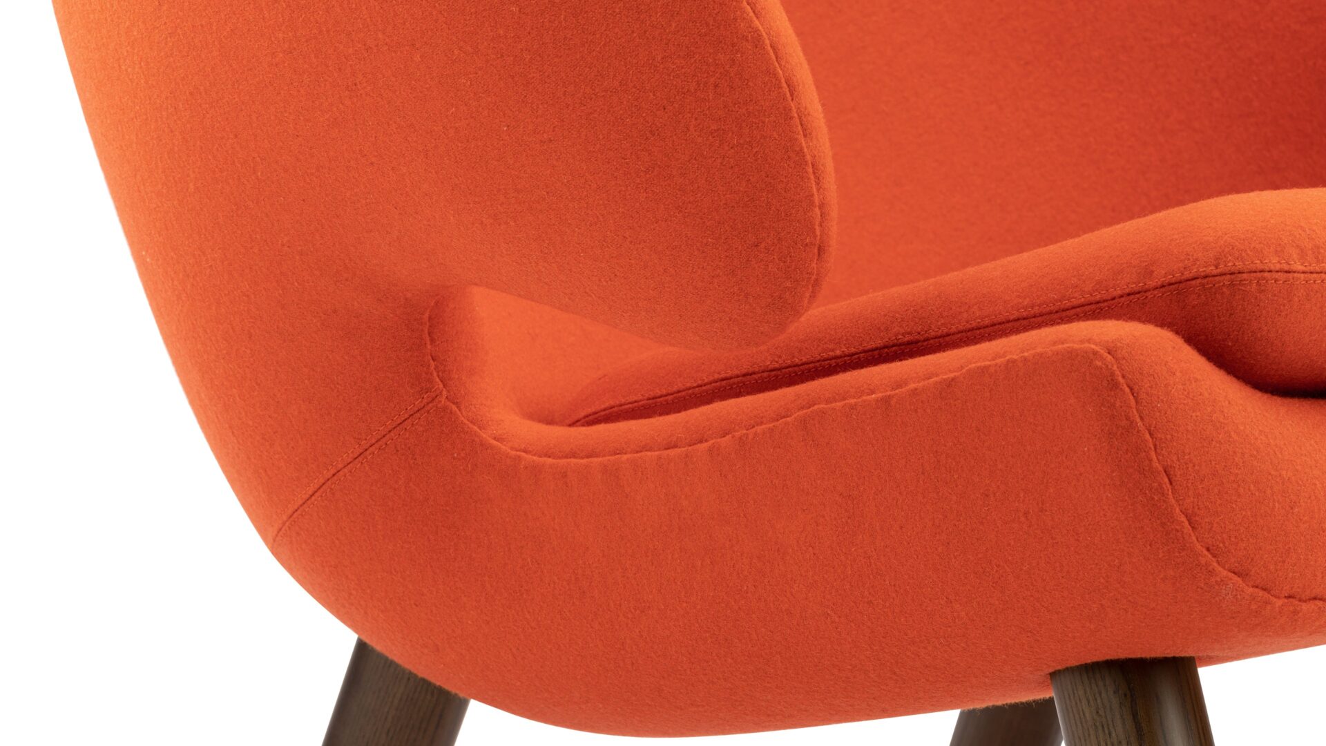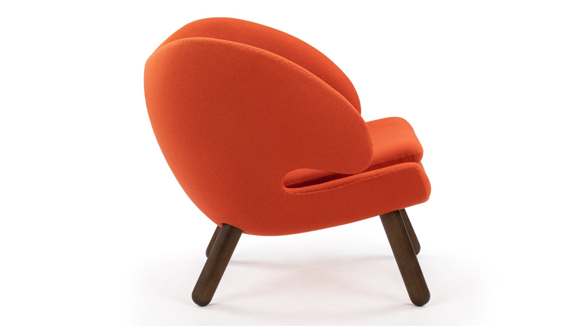 Radiating the spirit of 1940s design, the Pelican Chair captivates with its enduring allure and cozy comfort. Gracefully contoured and featuring plush orange wool upholstery complemented by timeless walnut legs, this iconic Danish masterpiece exudes timeless sophistication. A striking centerpiece that harmoniously fits diverse spaces, emanating a modern aesthetic and a touch of hygge comfort. Crafted with premium materials, this snug lounge chair promises unparalleled quality and exquisite attention to detail, offering a perfect fusion of comfort and style in a vibrant orange hue.