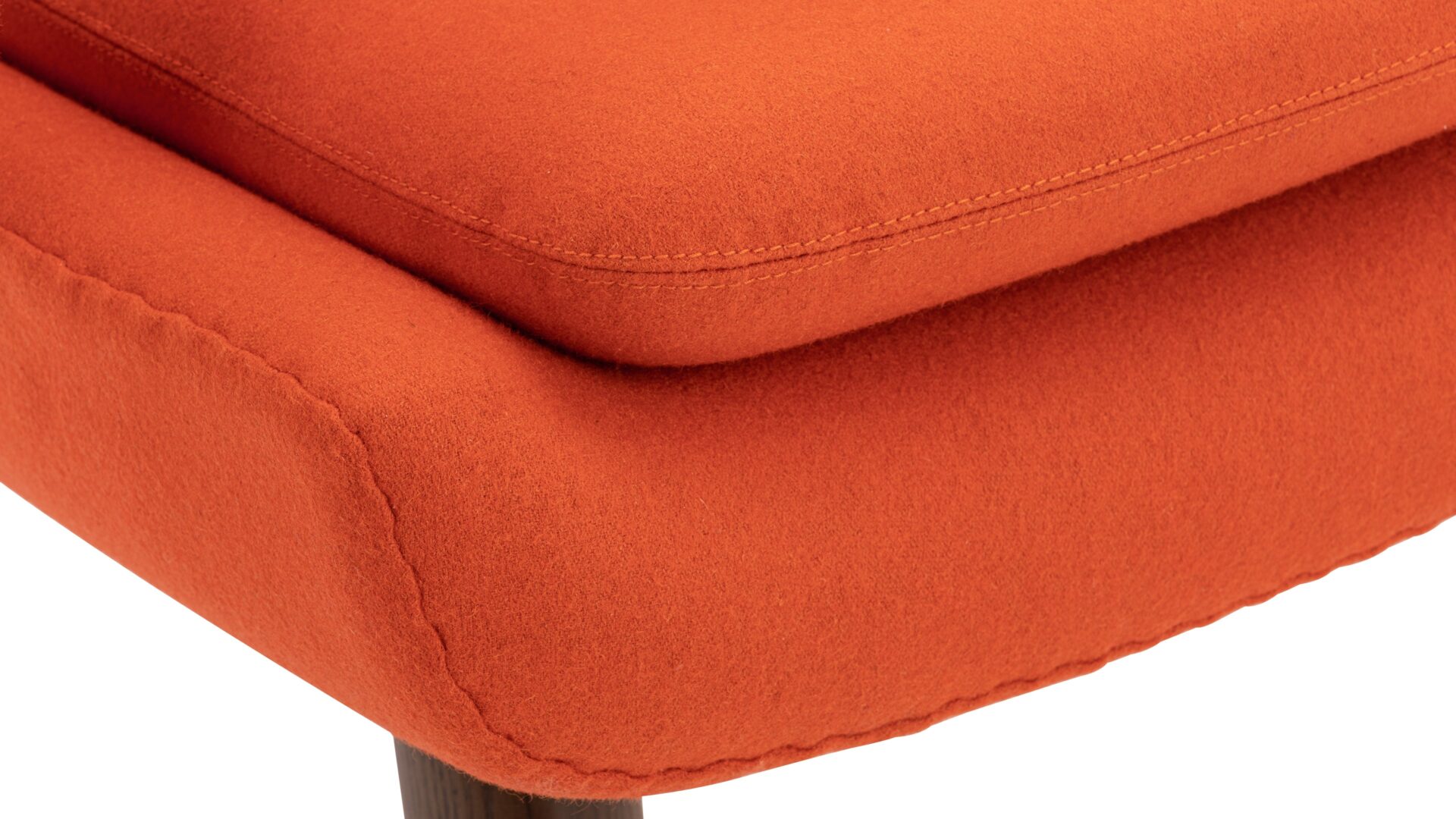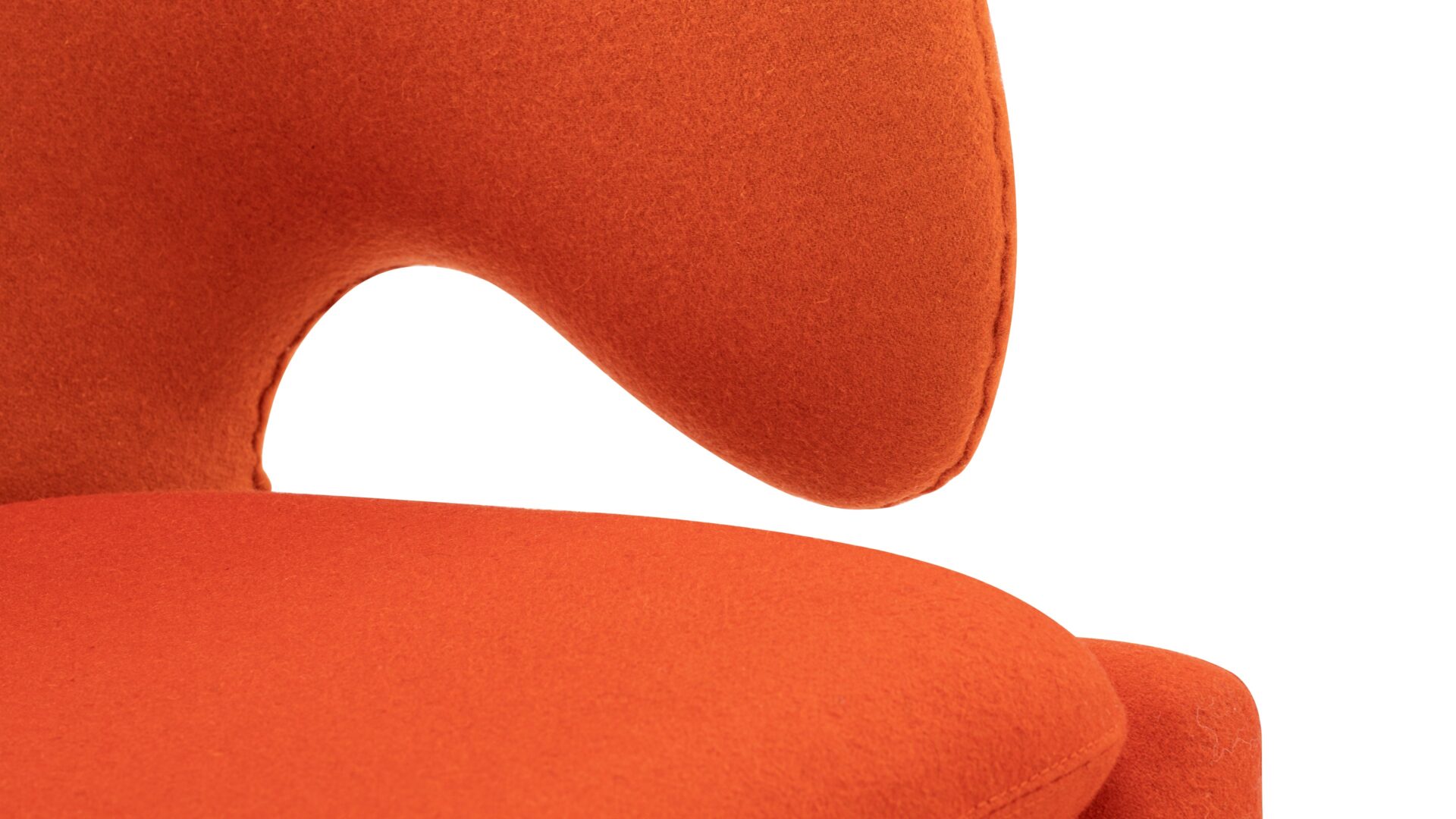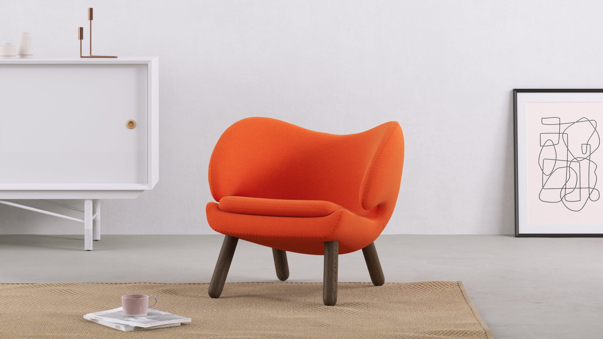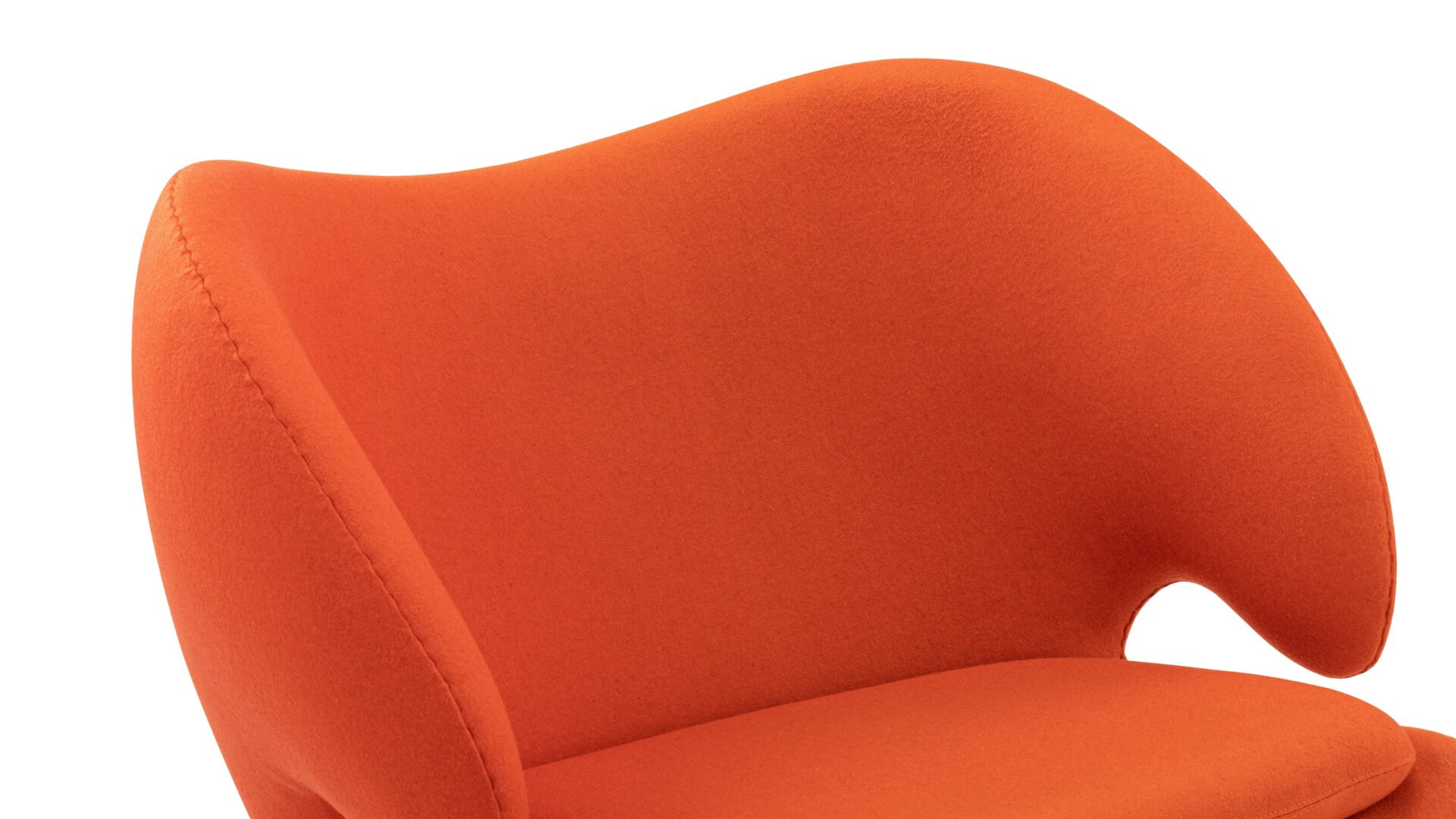 Radiating the spirit of 1940s design, the Pelican Chair captivates with its enduring allure and cozy comfort. Gracefully contoured and featuring plush orange wool upholstery complemented by timeless walnut legs, this iconic Danish masterpiece exudes timeless sophistication. A striking centerpiece that harmoniously fits diverse spaces, emanating a modern aesthetic and a touch of hygge comfort. Crafted with premium materials, this snug lounge chair promises unparalleled quality and exquisite attention to detail, offering a perfect fusion of comfort and style in a vibrant orange hue.