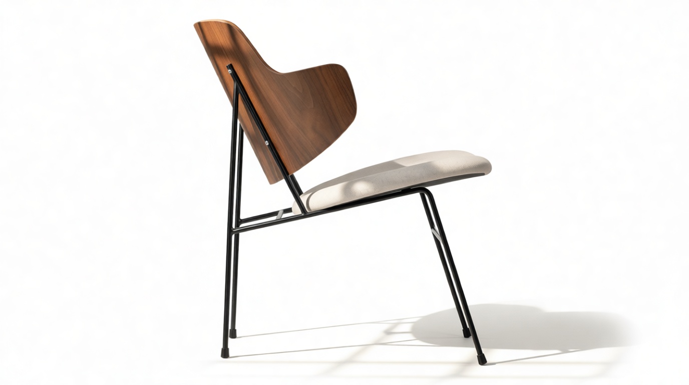 Discover the seamless fusion of modern and mid-century design in the Penguin Lounge Chair. Boasting a sculpted walnut backrest, a luxurious upholstered seat, and a sleek metal frame, this chair strikes the ideal harmony between style and comfort.