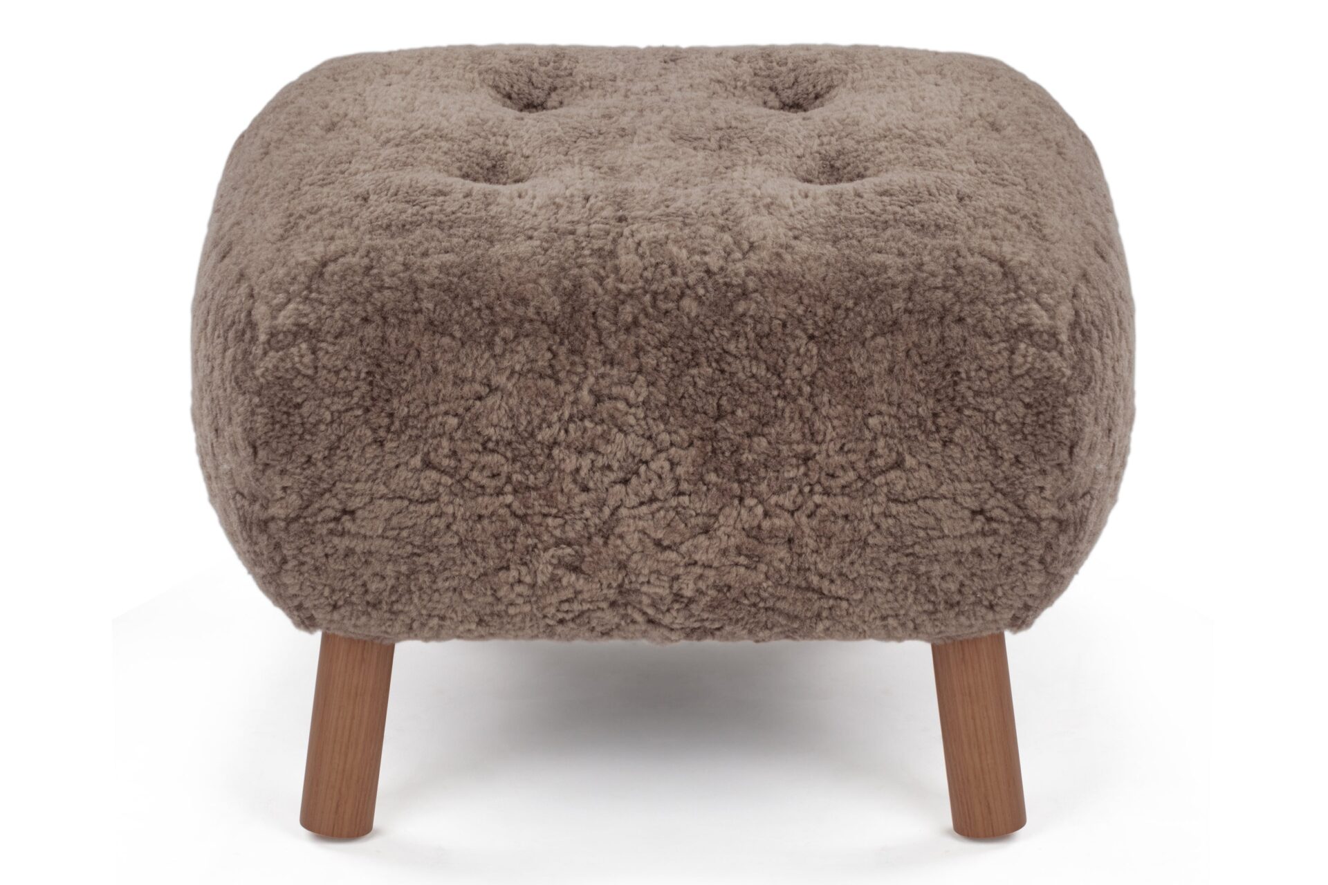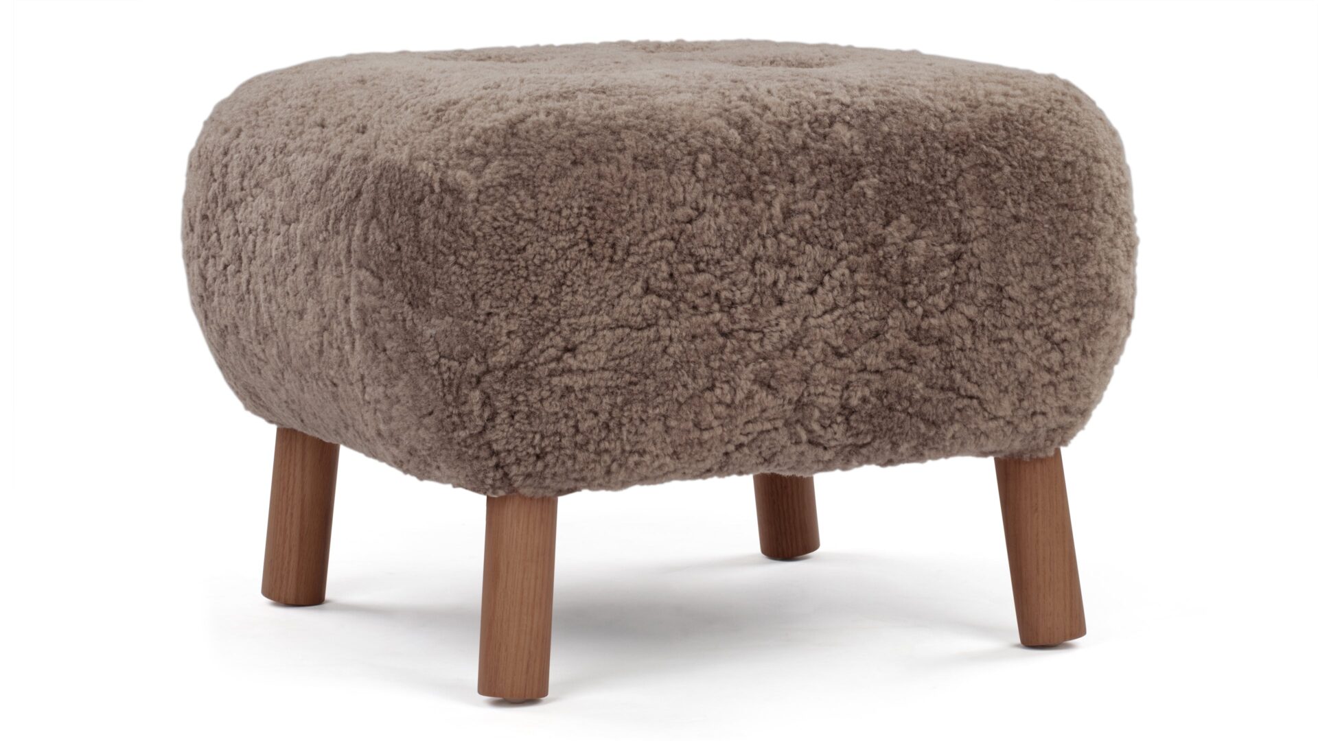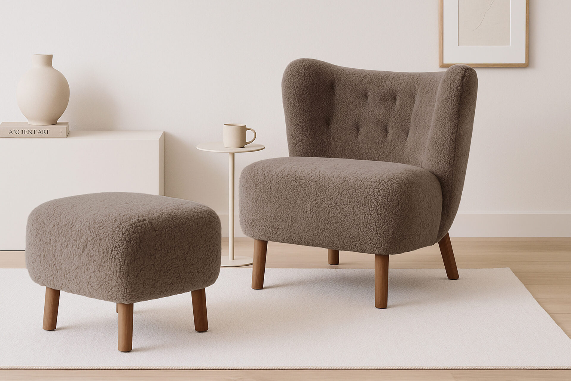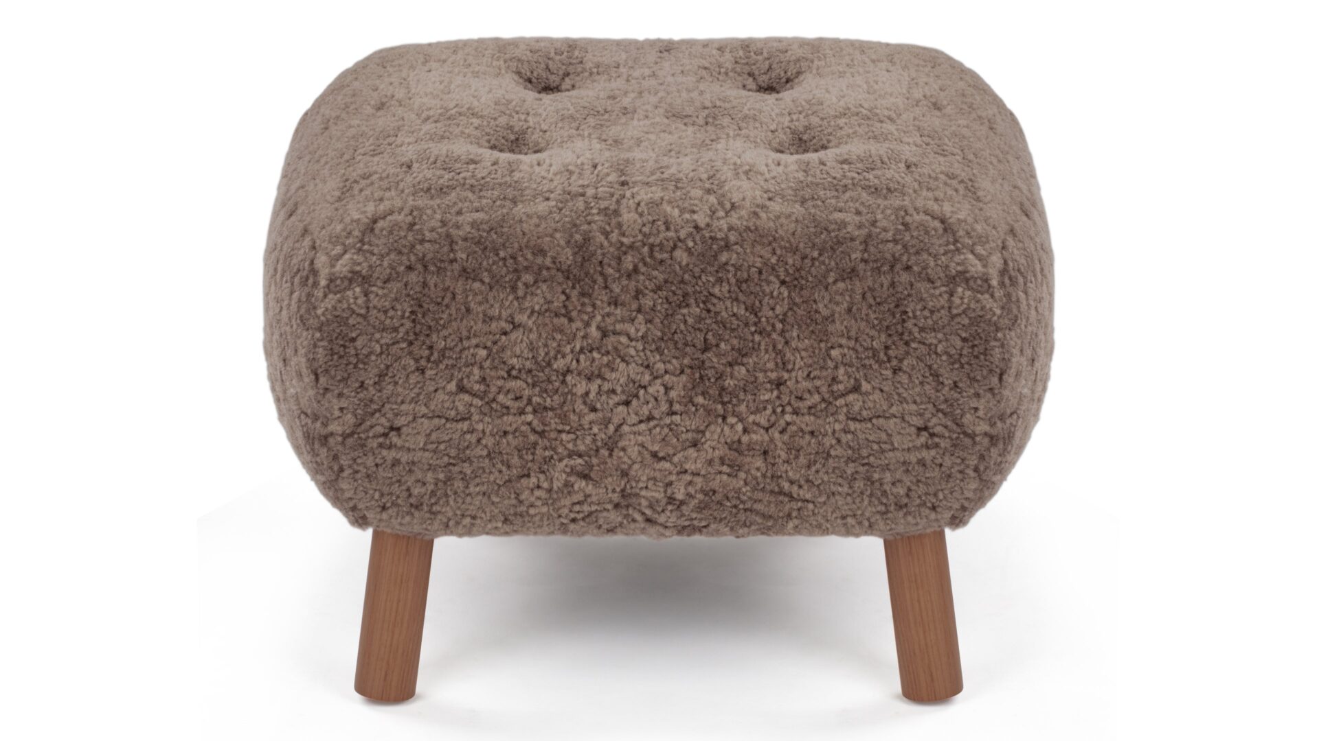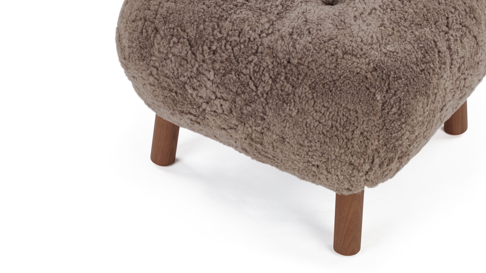 Crafted with a sturdy beech and plywood frame, the Petra Ottoman is enveloped in HR foam and polyester wadding, then luxuriously wrapped in Luxe Sheepskin. It serves as the perfect snug companion to the Lounge Chair or stands elegantly as a chic stool by itself.