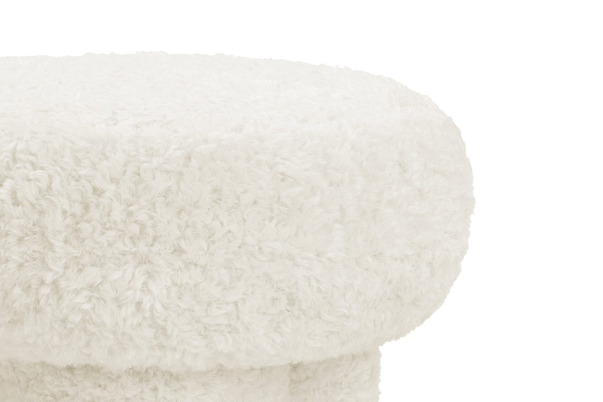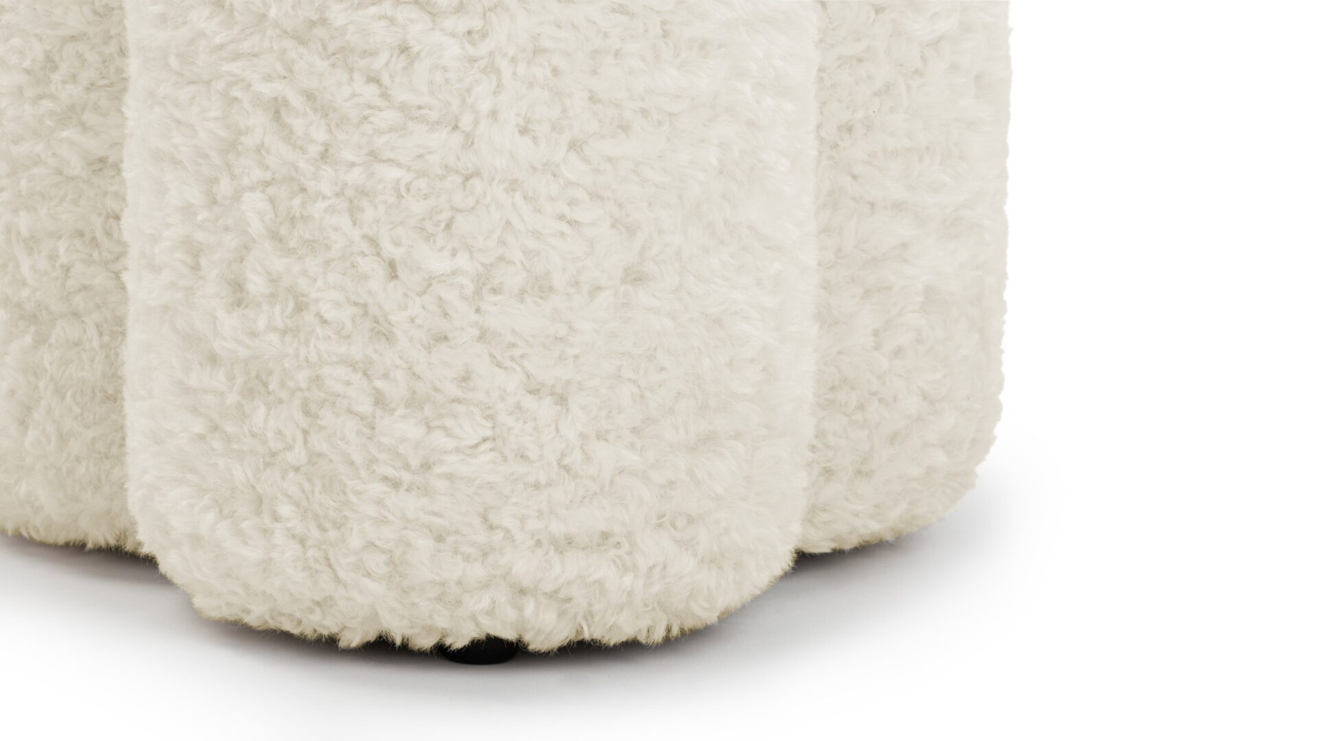 Introducing the exquisite Pia Ottoman, featuring a low-maintenance faux sheepskin that envelops its padded frame with a delightfully fluffy texture reminiscent of natural fleece, seamlessly bringing the outdoors in. Crafted in a petite, sculptural silhouette with a rounded top like a mushroom and base shaped like a clover. Perfect for relaxation or extra seating, the Pia Ottoman effortlessly combines practicality with charm, making it a versatile and stylish addition to any space.