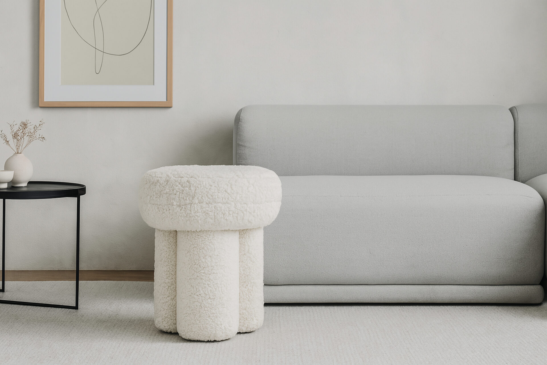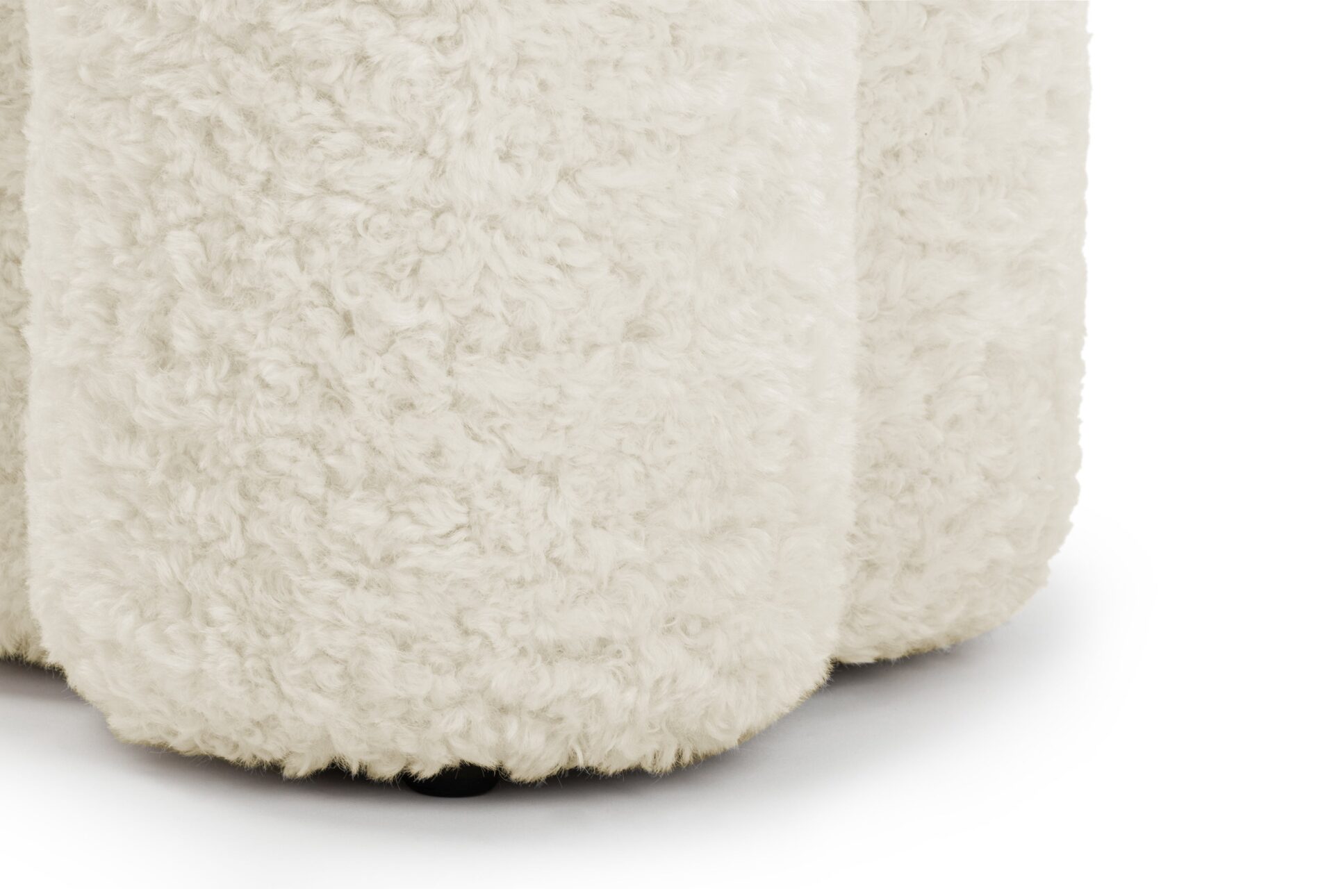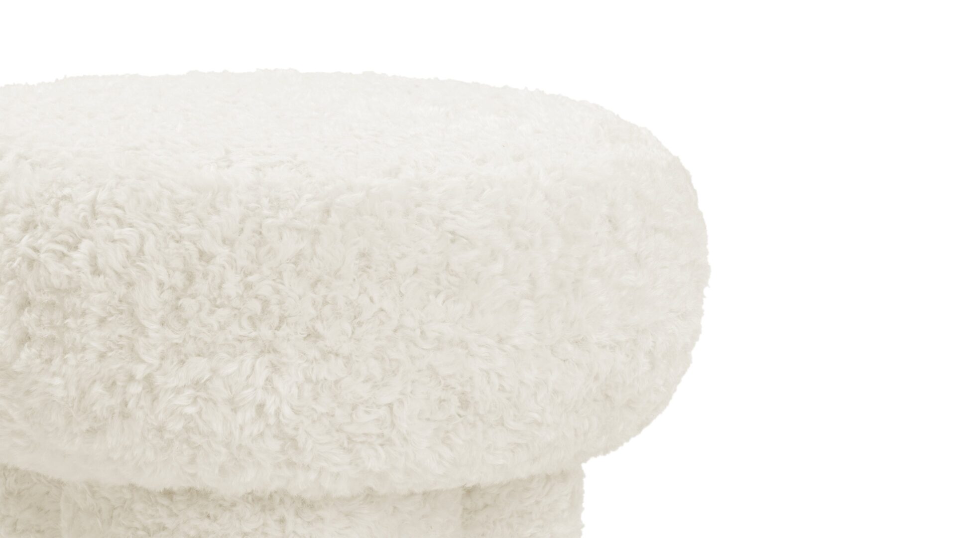 Discover the organic silhouette of the Pia Ottoman. Wrapped in easy-to-care-for faux sheepskin, this piece boasts a fluffy texture reminiscent of natural fleece, seamlessly blending outdoor coziness with indoor comfort.