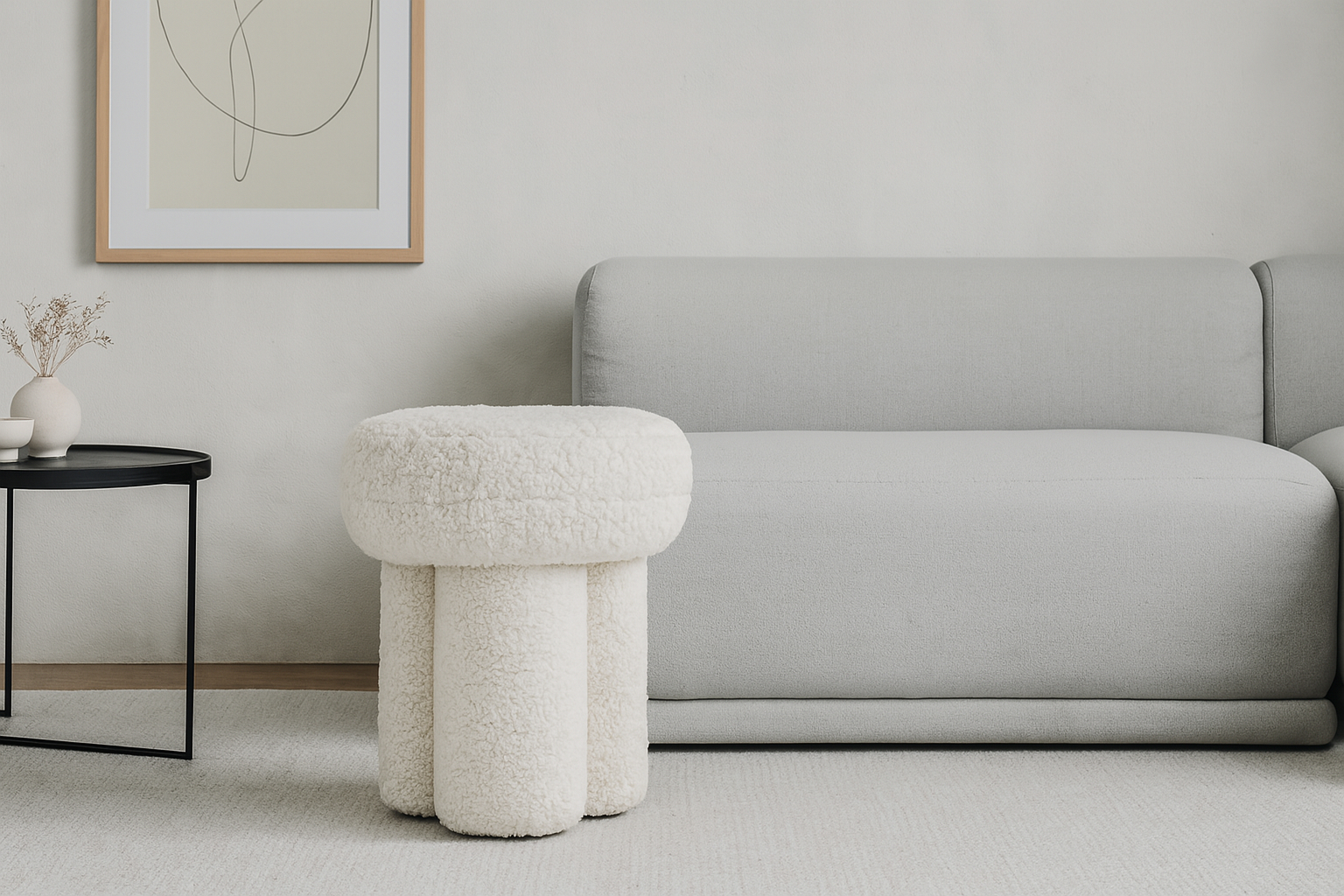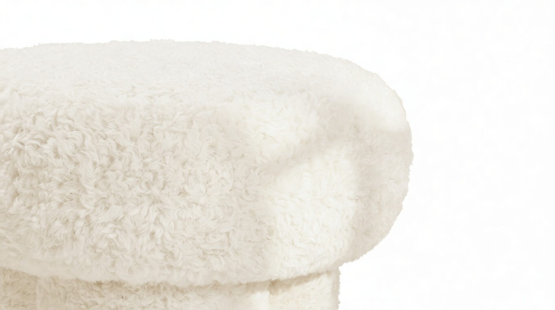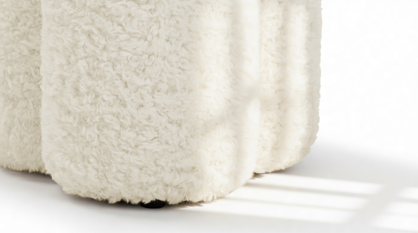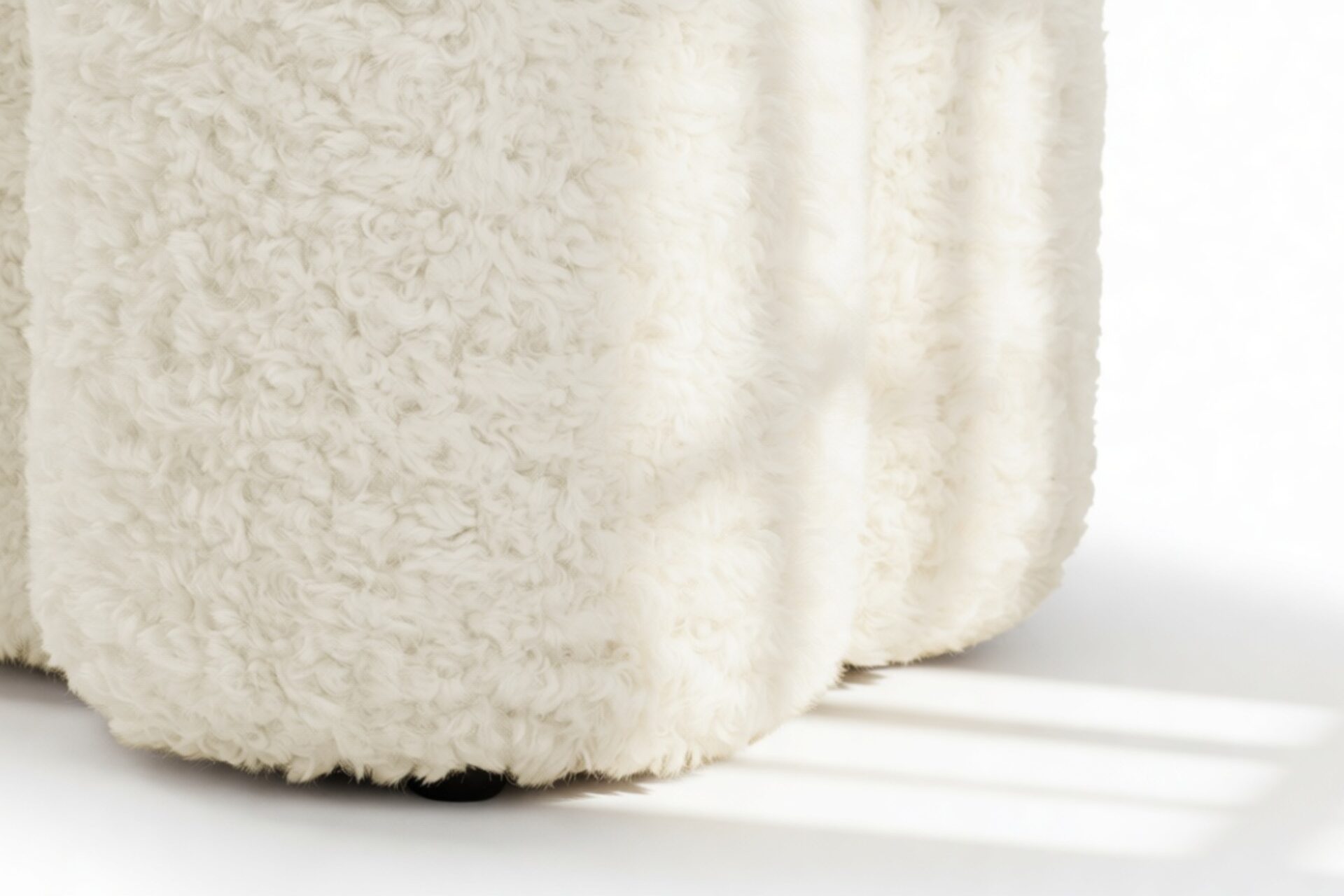 Discover the organic silhouette of the Pina Ottoman. Wrapped in easy-to-care-for faux sheepskin, this piece boasts a fluffy texture reminiscent of natural fleece, seamlessly blending outdoor coziness with indoor comfort.