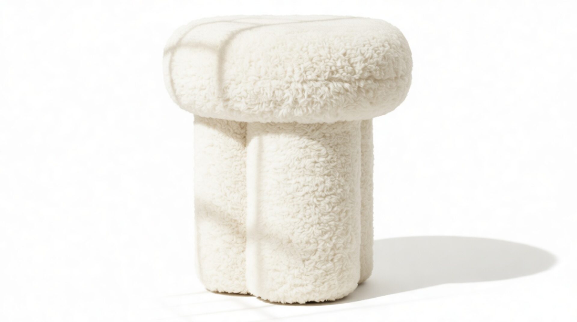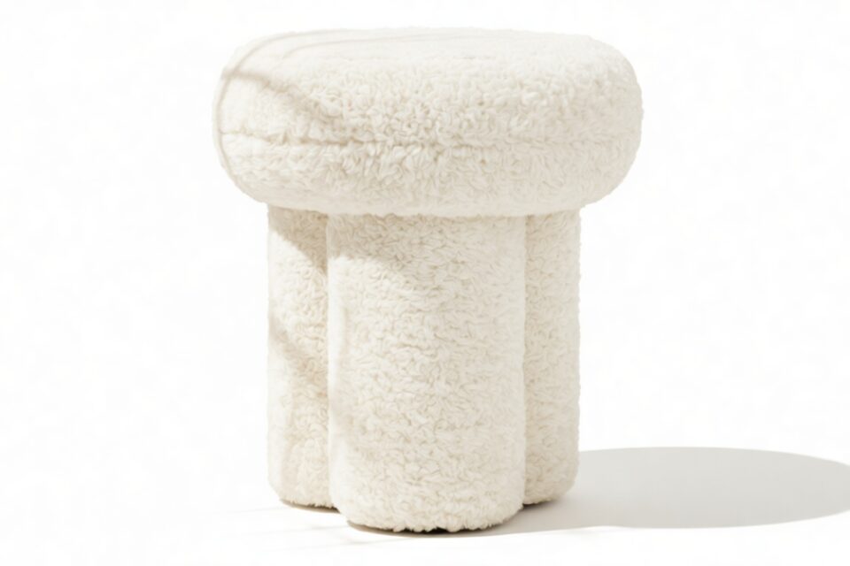 Introducing the exquisite Pina Ottoman, featuring a low-maintenance faux sheepskin that envelops its padded frame with a delightfully fluffy texture reminiscent of natural fleece, seamlessly bringing the outdoors in. Crafted in a petite, sculptural silhouette with a rounded top like a mushroom and base shaped like a clover. Perfect for relaxation or extra seating, the Pina Ottoman effortlessly combines practicality with charm, making it a versatile and stylish addition to any space.
