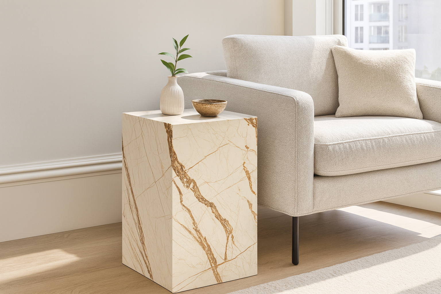 Experience the enduring charm and sophisticated beauty of authentic marble with the Plinth. This remarkable piece effortlessly complements modern and traditional settings alike. Let this elegant statement piece elevate your space and serve as the chicest spot to place your glass.