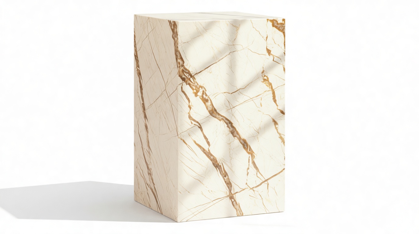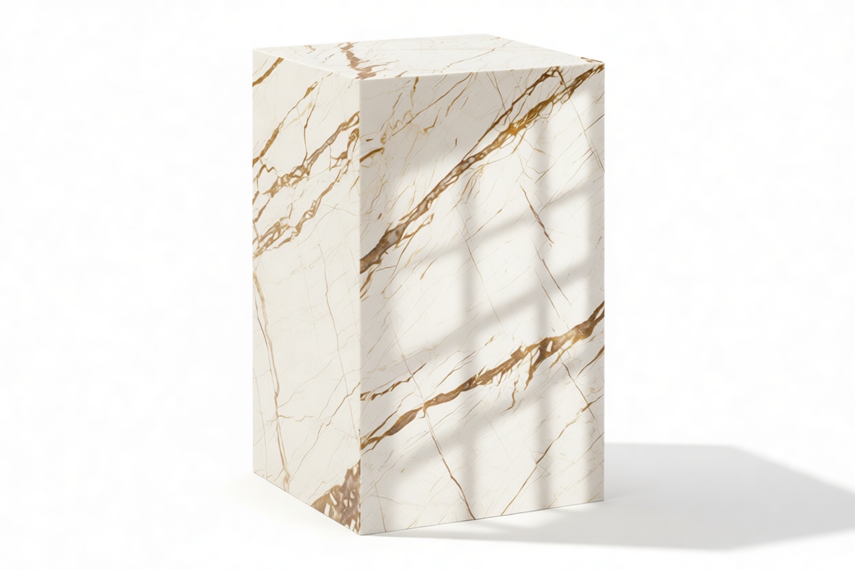 Crafted with a deliberately understated silhouette, the Plinth side table is crafted to showcase the inherent beauty of marble in its purest state. Its minimalistic design allows the stone's natural character to shine.