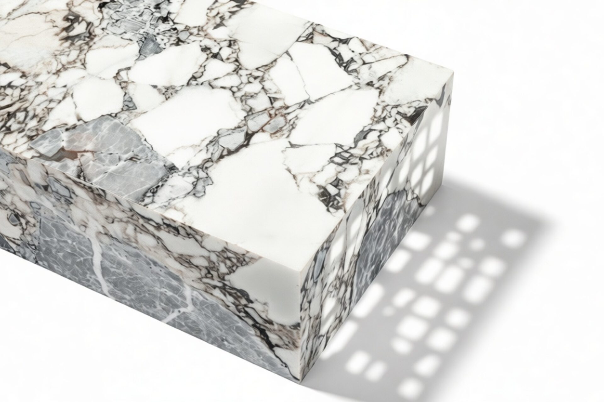 Crafted with precision to maintain perfect uniformity in shape, the Plinth coffee table showcases a monolithic design that pays tribute to the unique natural beauty of the stone. Constructed from high-quality Italian modellato marble featuring delicate and sophisticated veining, every Plinth coffee table is truly one-of-a-kind, displaying the individual characteristics imbued into this stunning stone over centuries.