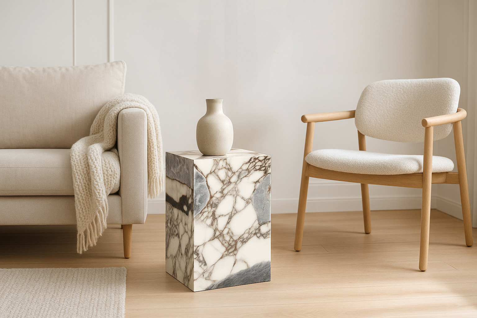 Experience the enduring charm and sophisticated beauty of authentic marble with the Plinth. This remarkable piece effortlessly complements modern and traditional settings alike. Let this elegant statement piece elevate your space and serve as the chicest spot to place your glass.