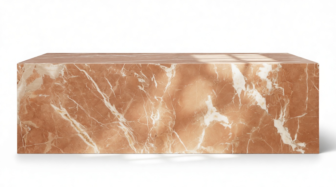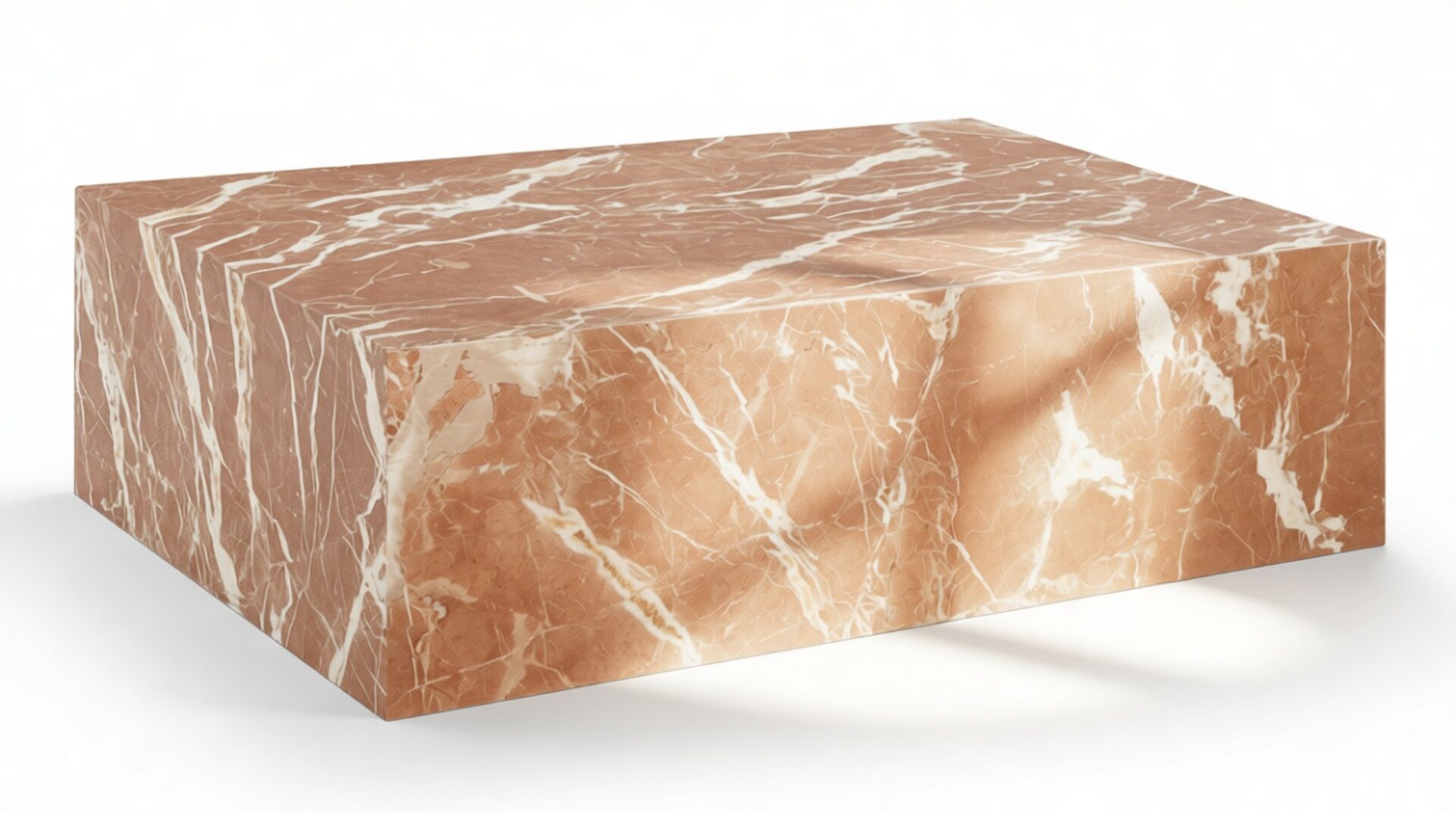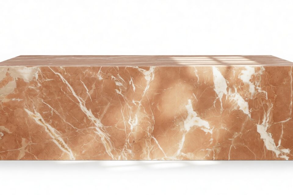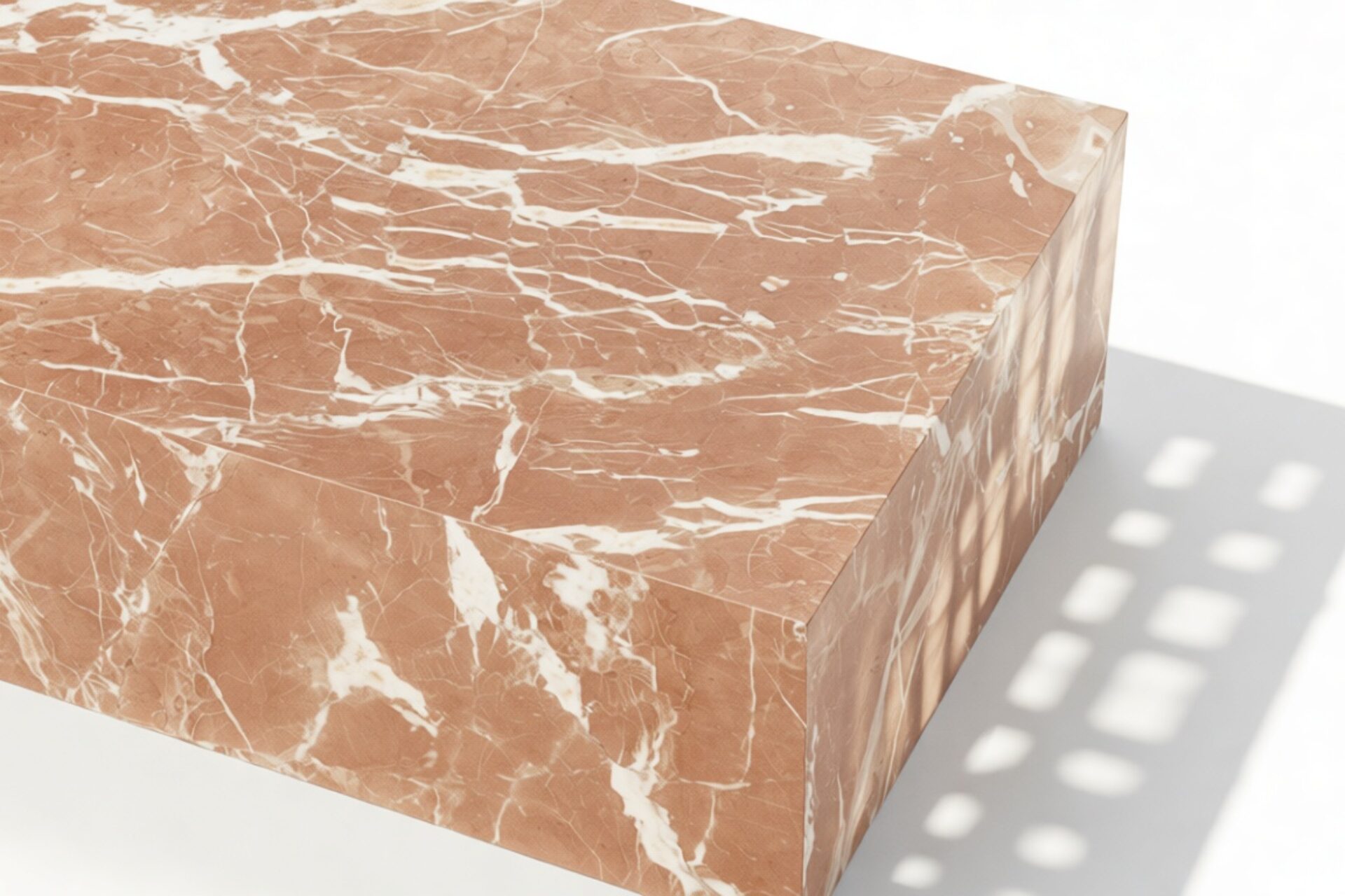 Introducing the Plinth coffee table, crafted with a deliberately understated silhouette to showcase the inherent elegance of marble in its purest state. Its clean, simple design allows the stone's distinctive charm to shine through. Rethinking the traditional plinth, this modern Danish creation transforms the pedestal into a work of art in itself, beyond just a display stand. Each Plinth table is handcrafted from luxurious Rojo Alicante marble, ensuring a one-of-a-kind piece with unique white and neutral veining, delightful color variations, and enchanting distinctive features.