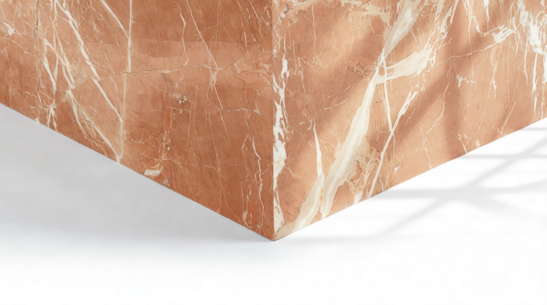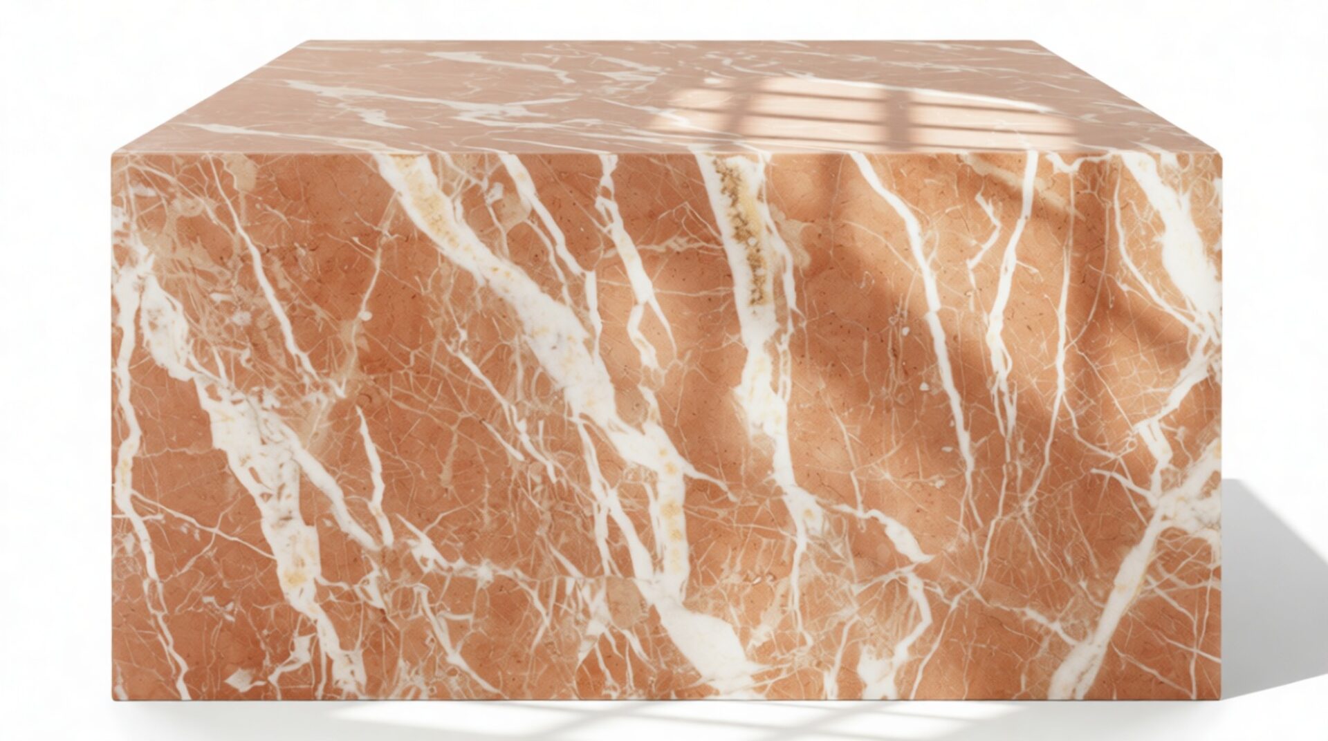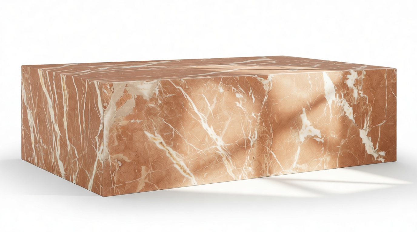 Introducing the Plinth coffee table, crafted with a deliberately understated silhouette to showcase the inherent elegance of marble in its purest state. Its clean, simple design allows the stone's distinctive charm to shine through. Rethinking the traditional plinth, this modern Danish creation transforms the pedestal into a work of art in itself, beyond just a display stand. Each Plinth table is handcrafted from luxurious Rojo Alicante marble, ensuring a one-of-a-kind piece with unique white and neutral veining, delightful color variations, and enchanting distinctive features.