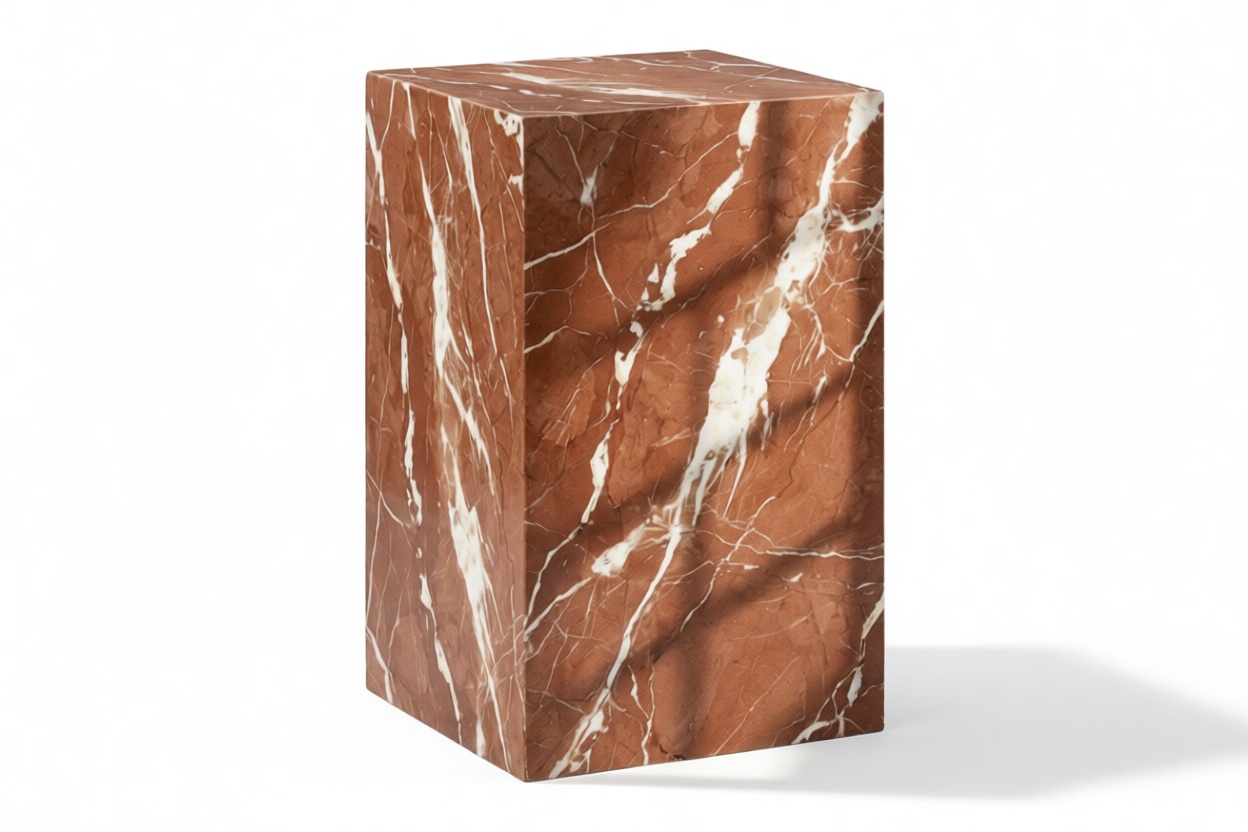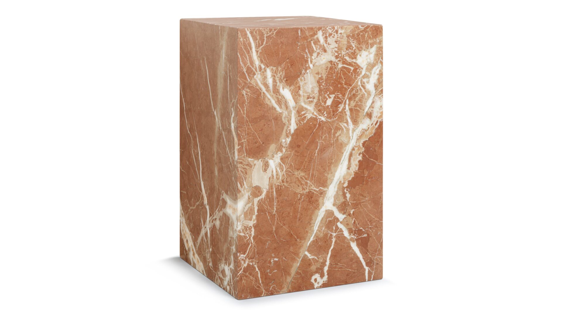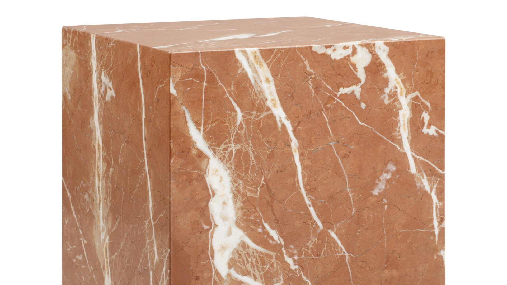 Elevate the natural beauty of marble with the Plinth side table's intentionally modest silhouette, spotlighting the stunning Rojo Alicante variation. This contemporary Danish design transforms the traditional plinth concept into an art form, showcasing the elegant Italian modellato marble in each unique piece. Impeccably consistent in form, the solid design pays tribute to the stone's exquisite beauty with its graceful veining, making it a magnificent sculptural masterpiece that effortlessly complements any space.