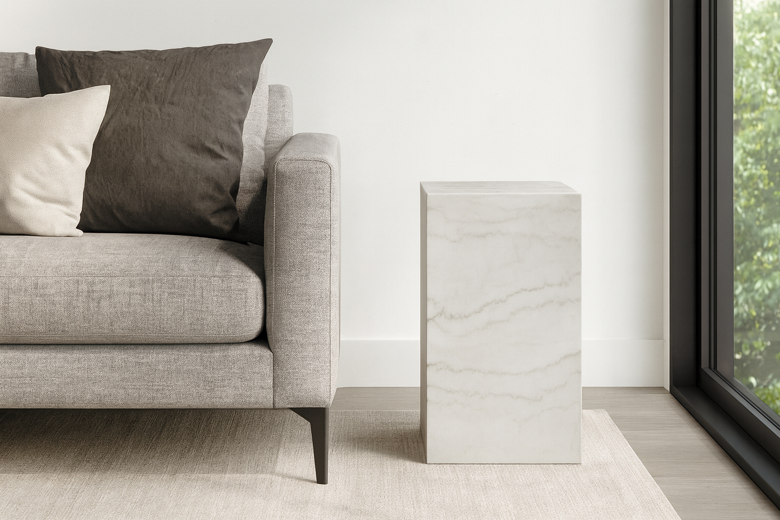 Experience the enduring charm and sophisticated beauty of authentic marble with the Plinth. This remarkable piece effortlessly complements modern and traditional settings alike. Let this elegant statement piece elevate your space and serve as the chicest spot to place your glass.