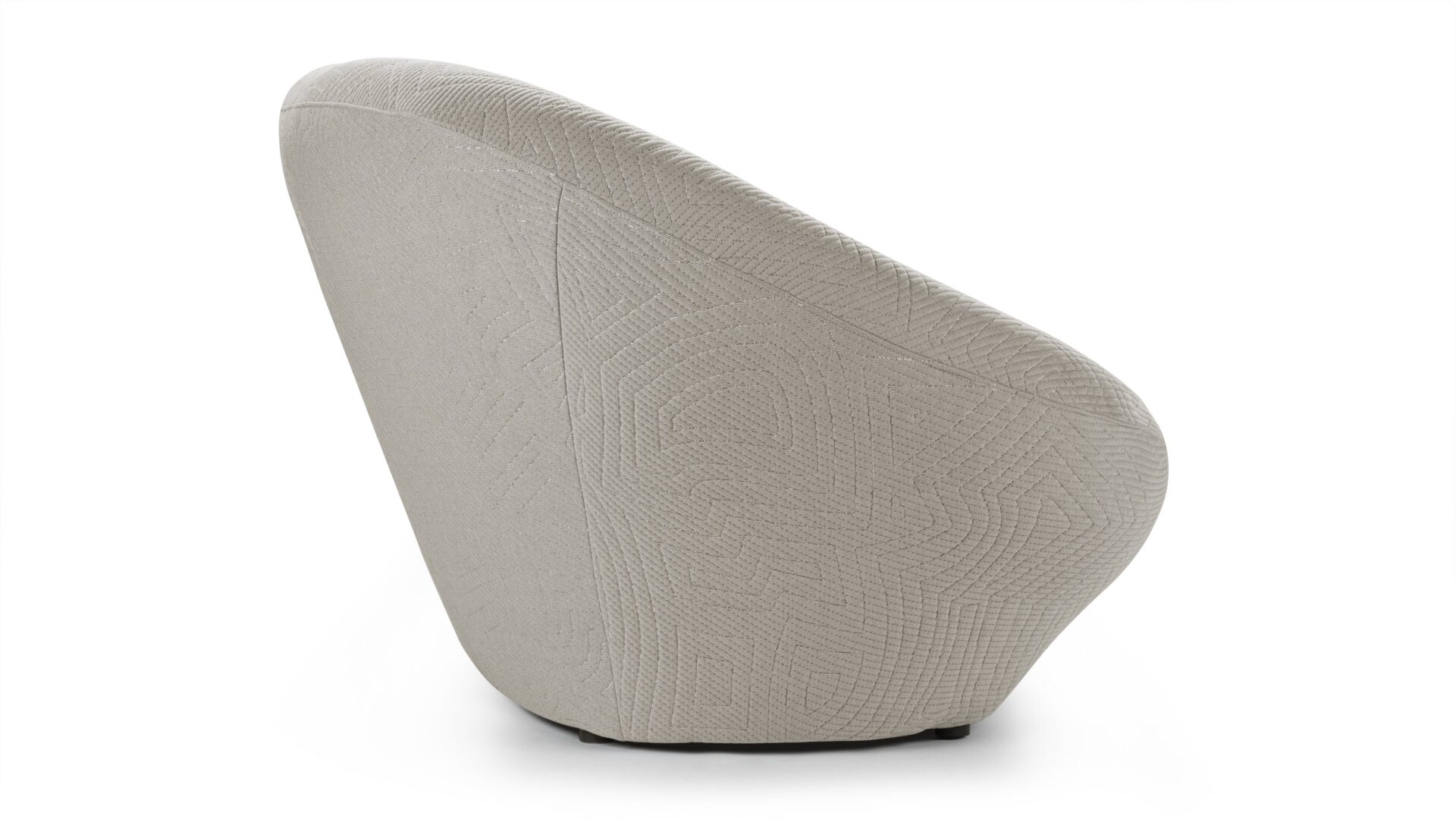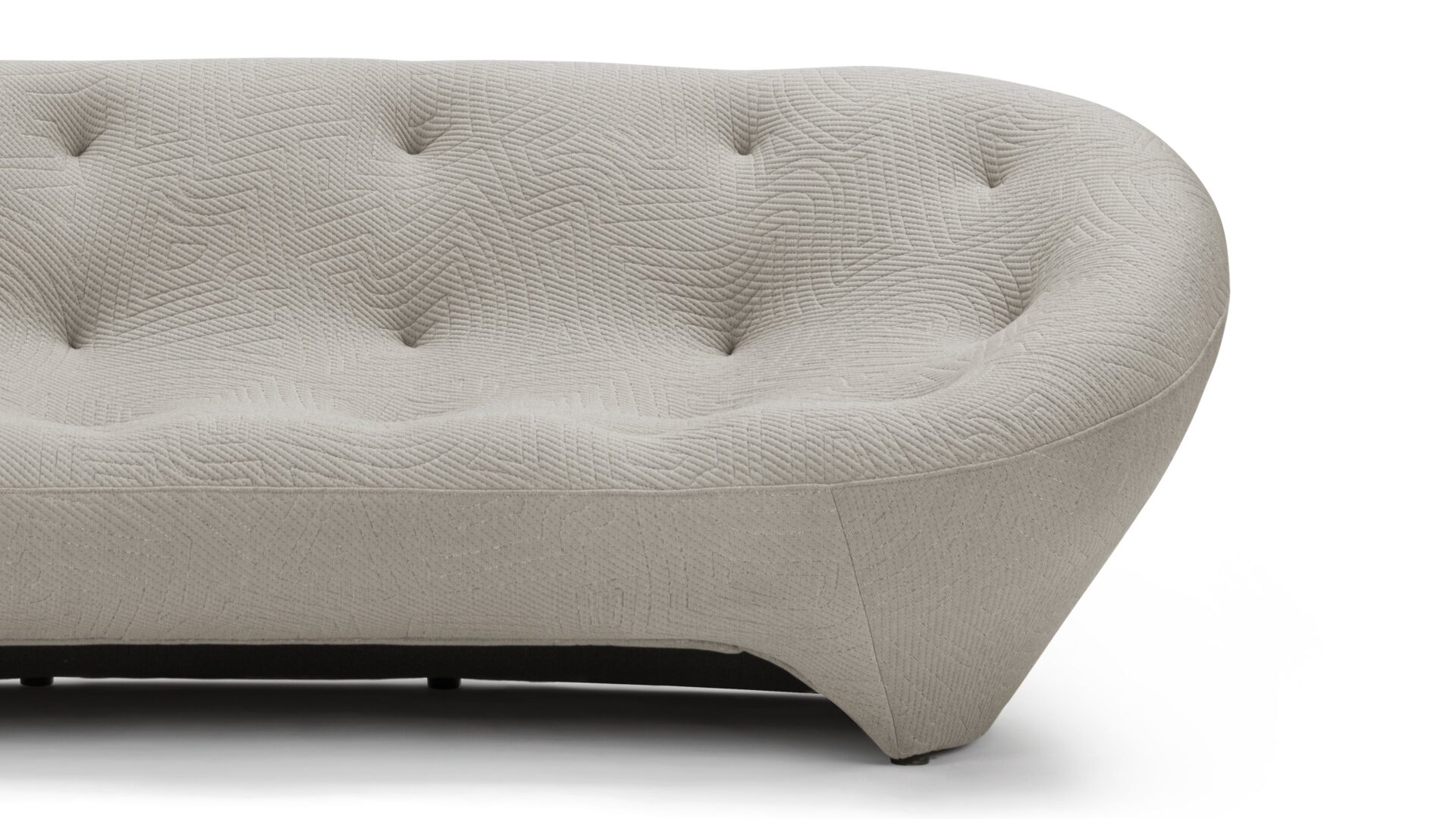 A standout feature of the Ploum Sofa is its tactile nature. The quilted, textured fabric upholstery not only adds visual appeal but also entices touch, creating an engaging surface. With its asymmetrical silhouette and graceful lines, this sofa serves as a statement piece that harmonizes effortlessly with diverse interior styles, spanning from minimalistic to eclectic. Its fusion of futuristic and organic elements makes it a versatile choice for any living space.