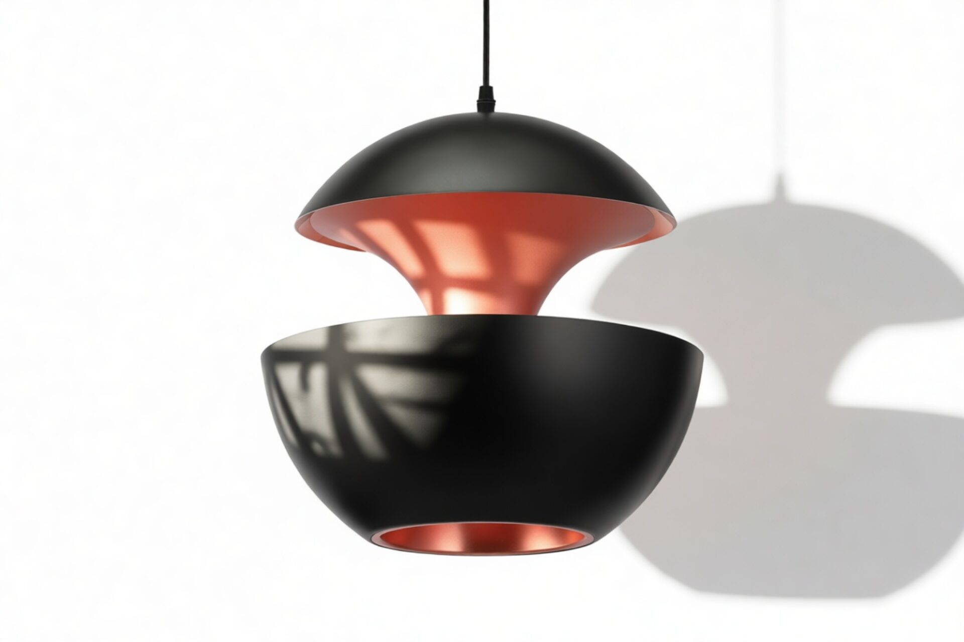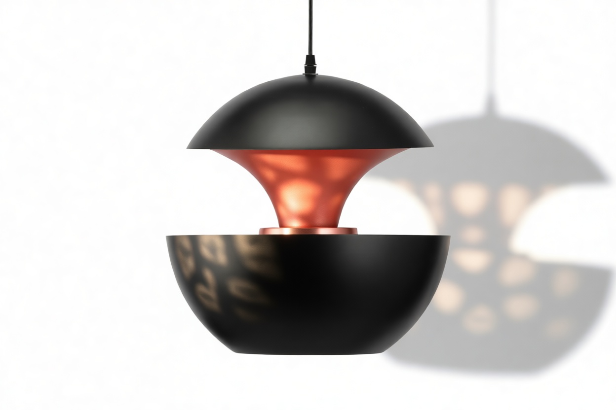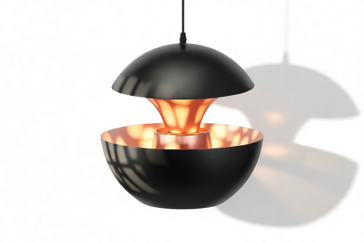 The Pomme Pendant Light epitomizes an essence of timeless grace and refinement. Meticulously crafted with attention to detail, this pendant light presents a seamless fusion of style and utility. Drawing inspiration from the retro charm of the 1970s, its elegant spherical shape and crisp contours pay homage to the era’s design sensibilities. Resembling a fragile orb suspended in midair, the Pomme Pendant Light mesmerizes with its subtle yet compelling design. Its lacquered aluminum outer shell exudes a contemporary and sleek allure, while the inner surface, adorned with a reflective copper finish, diffuses light in a gentle and luminous manner.