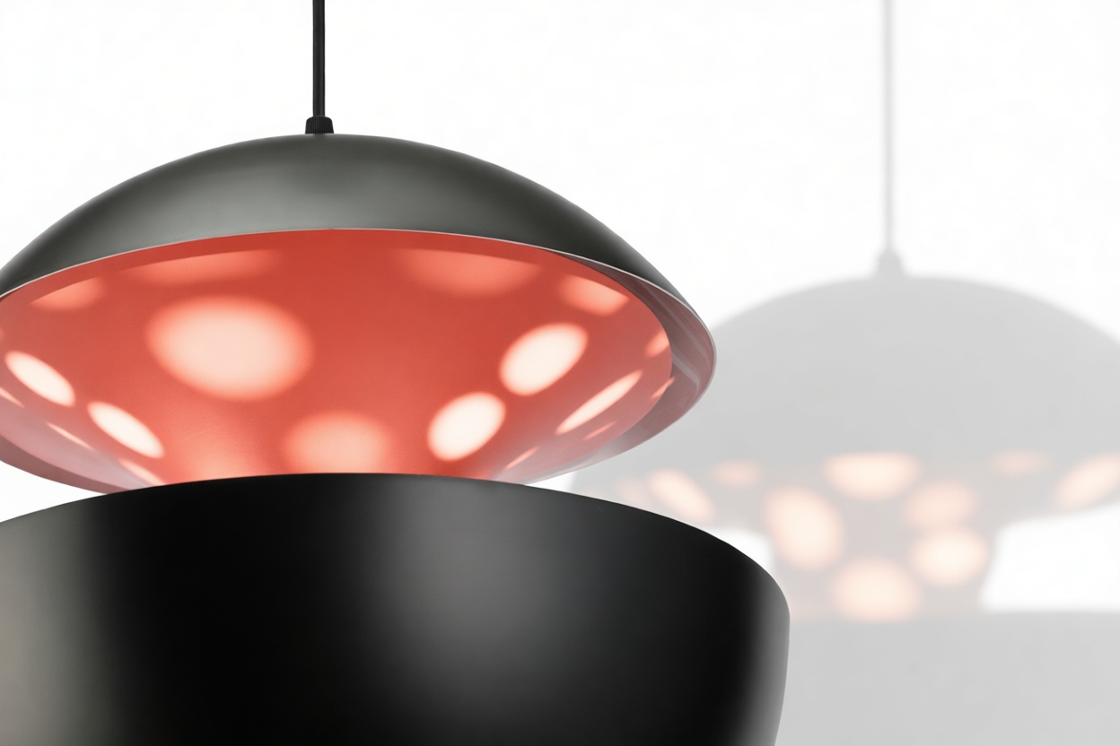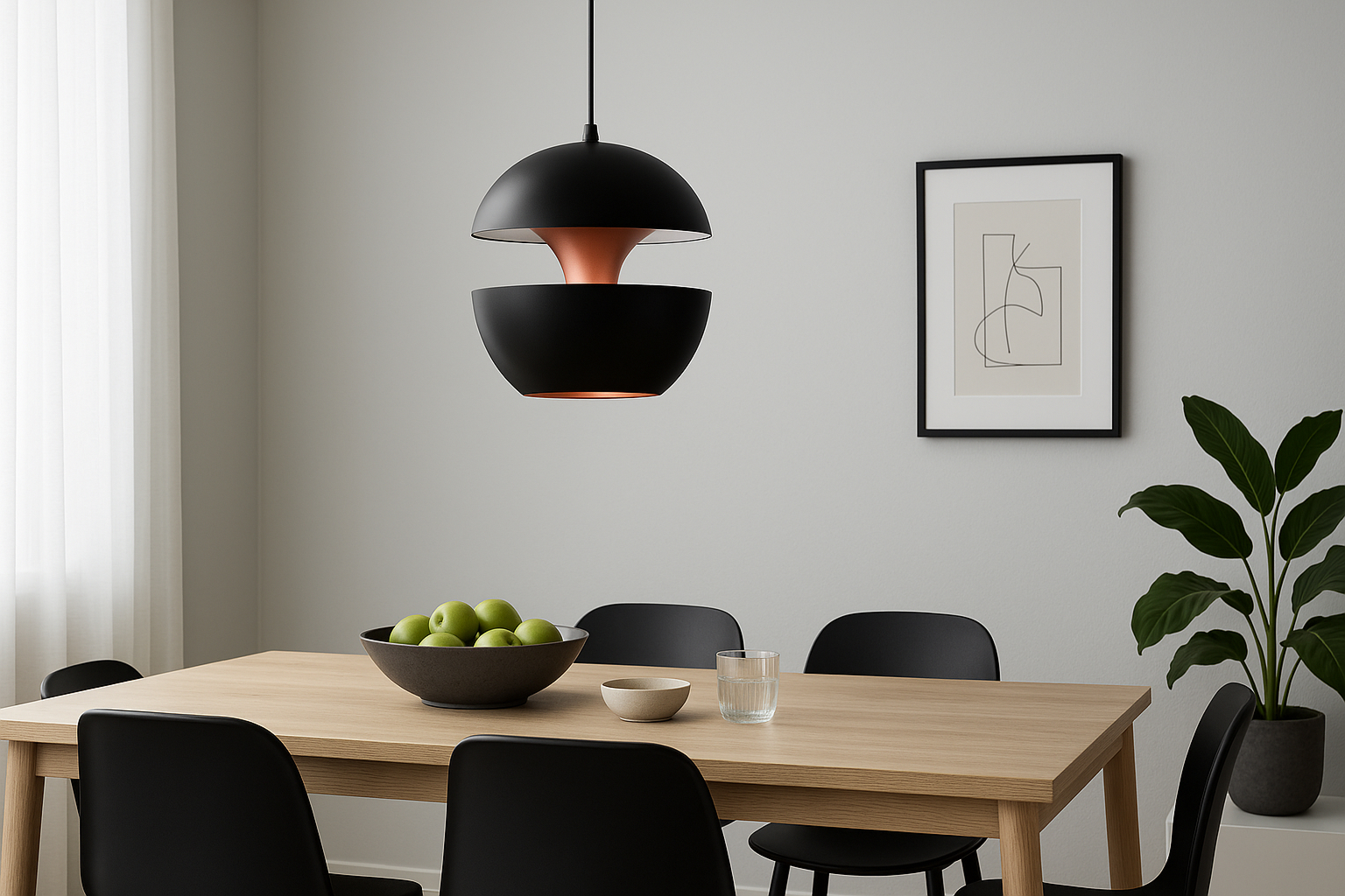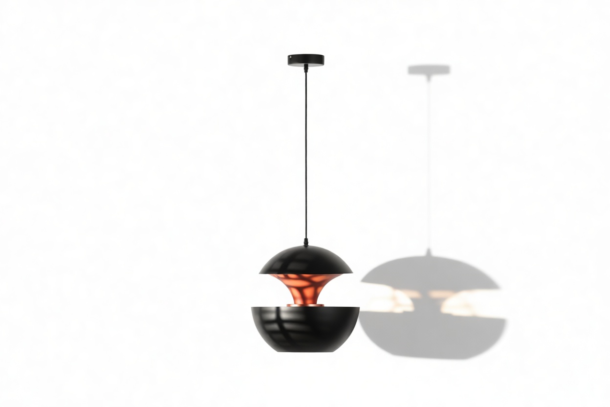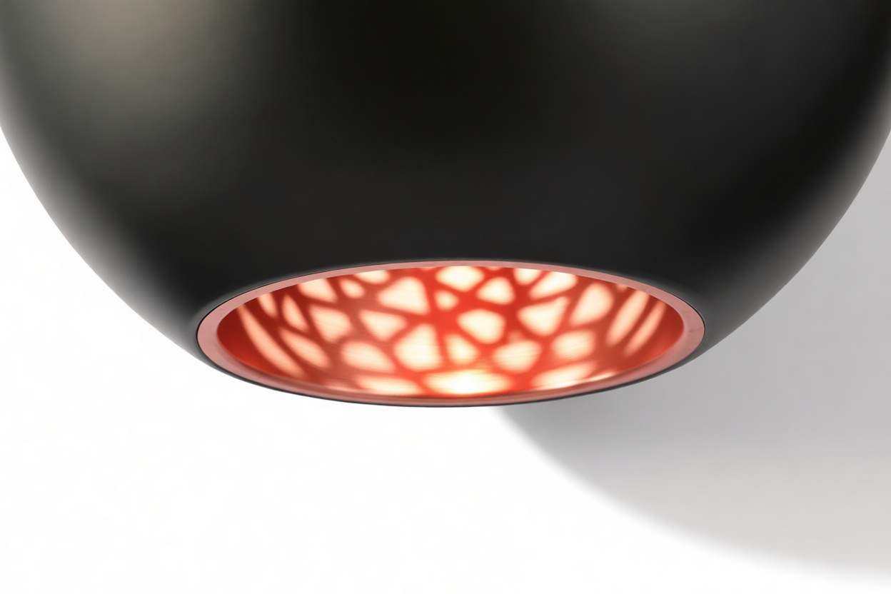 The Pomme Pendant Light epitomizes an essence of timeless grace and refinement. Meticulously crafted with attention to detail, this pendant light presents a seamless fusion of style and utility. Drawing inspiration from the retro charm of the 1970s, its elegant spherical shape and crisp contours pay homage to the era’s design sensibilities. Resembling a fragile orb suspended in midair, the Pomme Pendant Light mesmerizes with its subtle yet compelling design. Its lacquered aluminum outer shell exudes a contemporary and sleek allure, while the inner surface, adorned with a reflective copper finish, diffuses light in a gentle and luminous manner.