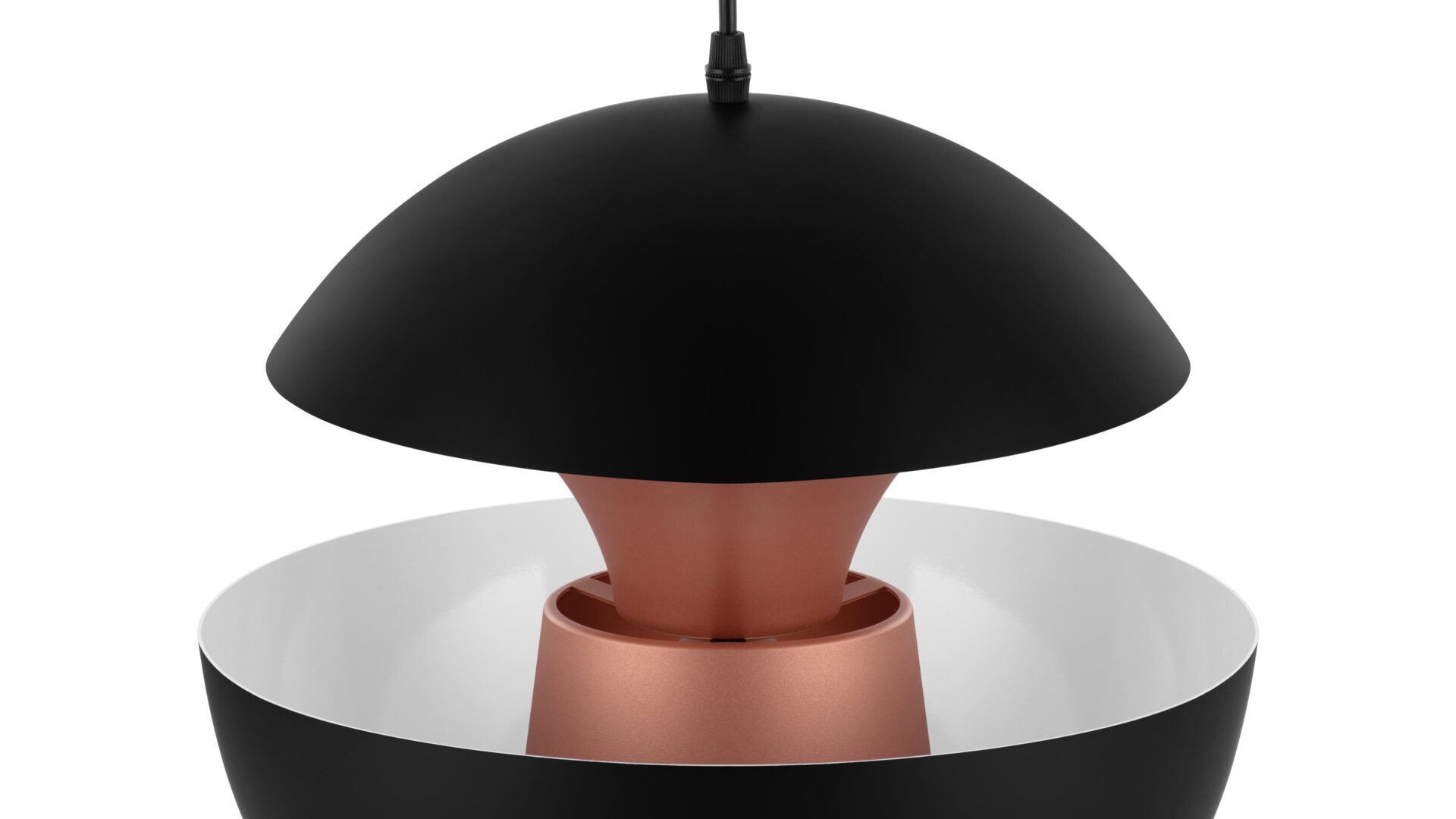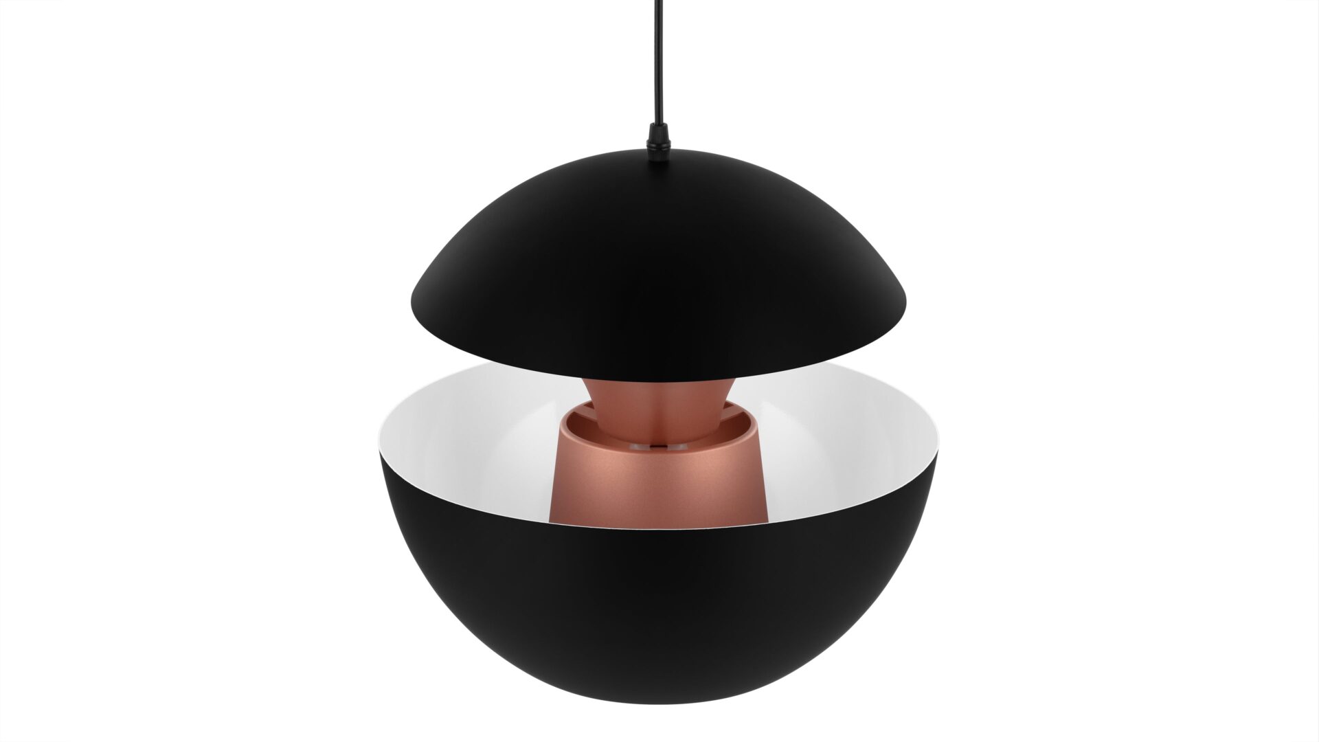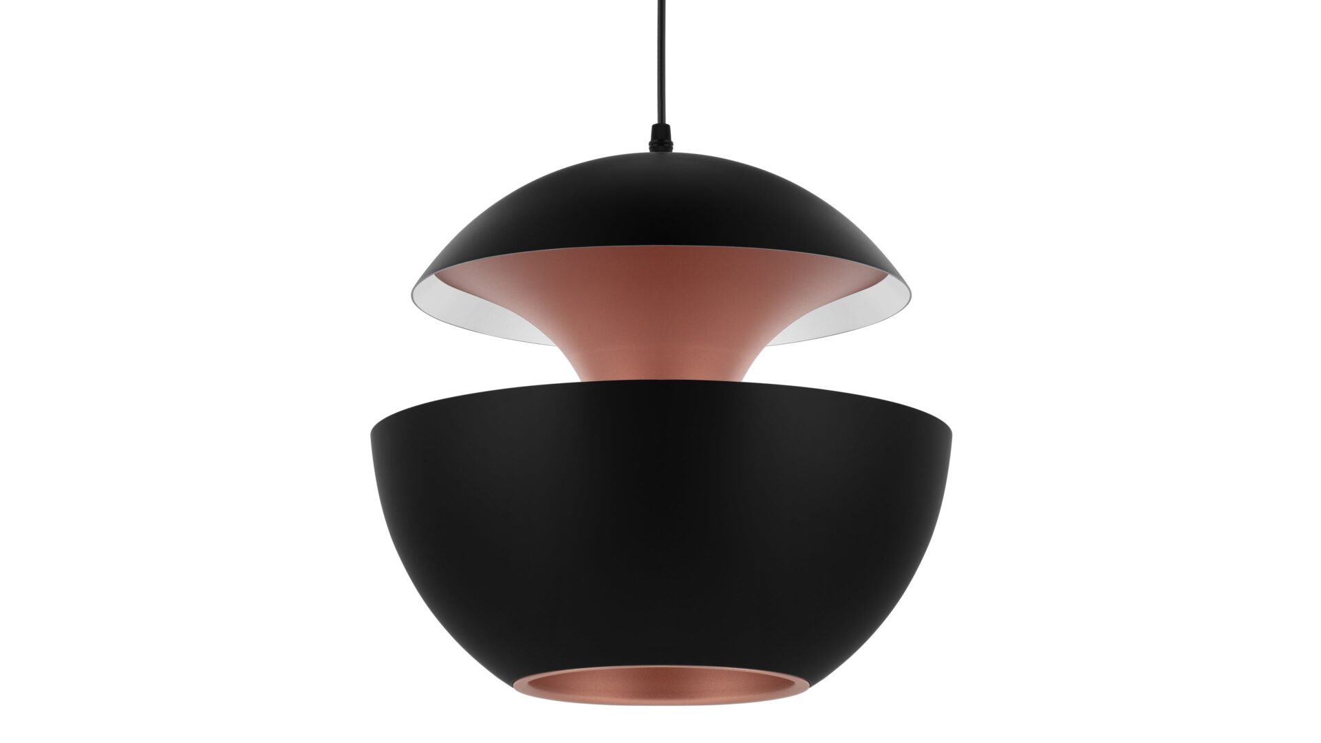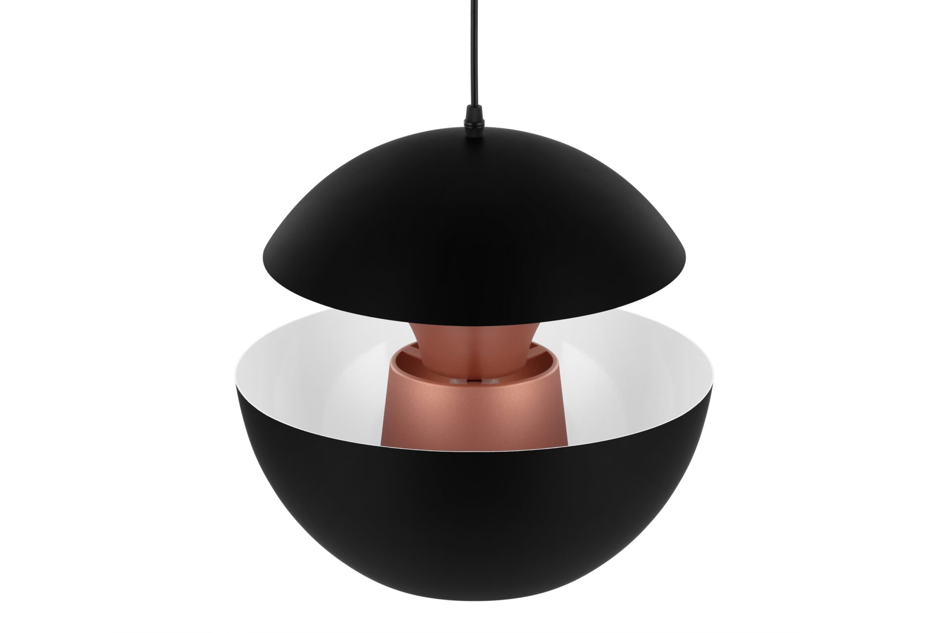 Embodying vintage elegance with a modern twist, the Pomme Pendant Light is a tribute to 1970s design sensibilities. Its spherical silhouette, finished in sleek black lacquered aluminum with a reflective copper interior, diffuses a warm and inviting glow. This statement piece creates a nostalgic ambiance, transforming any space into a chic and stylish retreat.