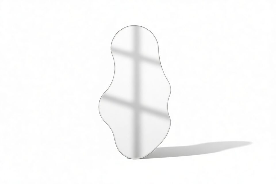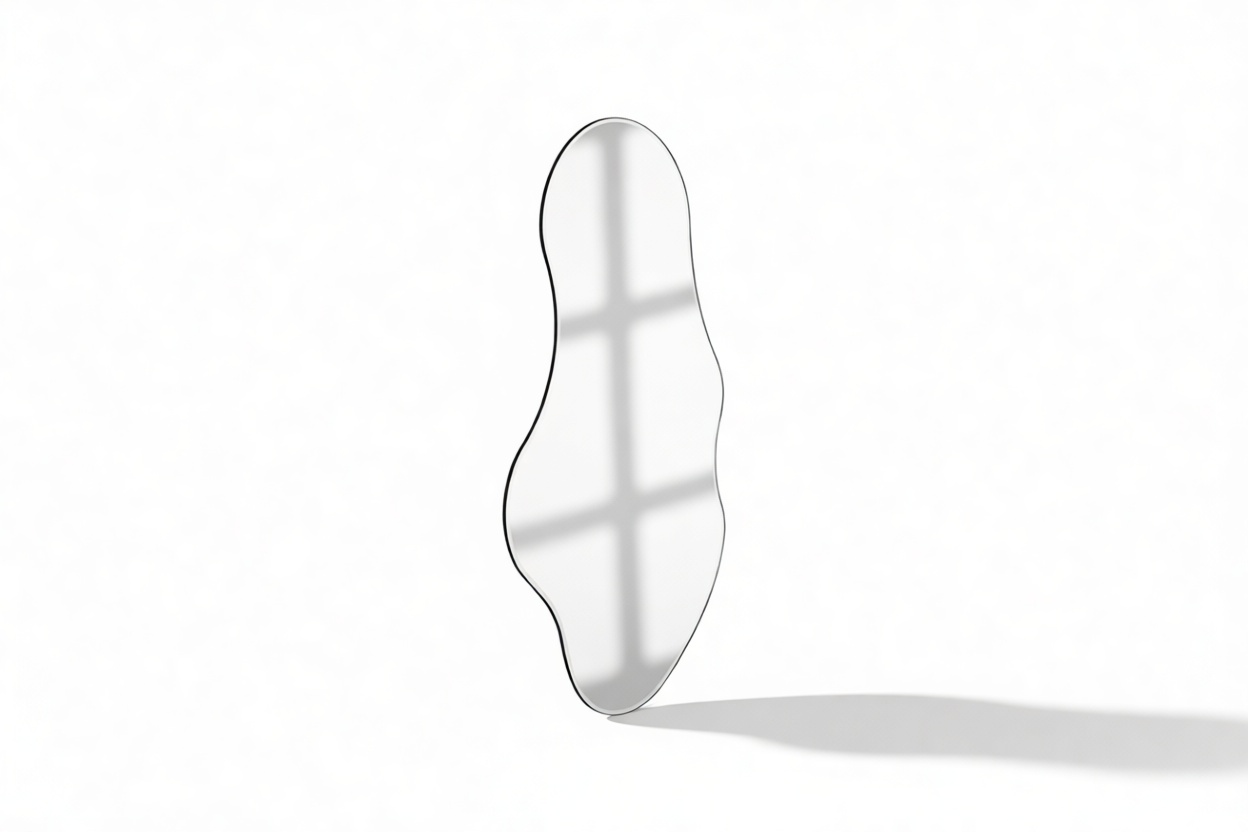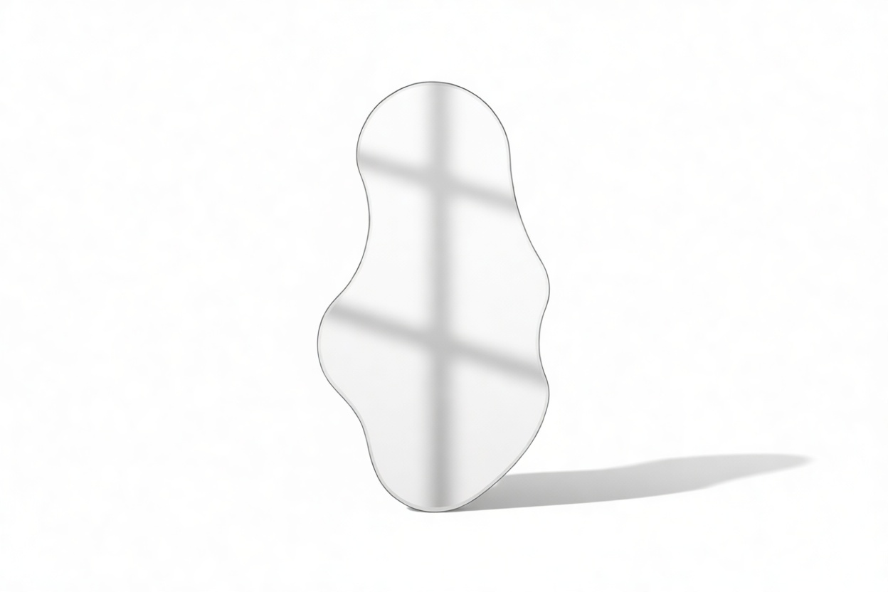 Impeccably crafted with meticulous attention to detail, the Pond Wall Mirror's organic shape beautifully captures the graceful movement and tranquility of water, bringing a sense of calm and harmony to any living space. Its flowing contours give the impression of motion, imparting a dynamic sense of peace to any room. With its distinct, nature-inspired design, the Pond Wall Mirror transcends the traditional concept of mirrors. Acting not only as a practical fixture but also as an artistic representation reflecting the beauty and grace of the natural world.