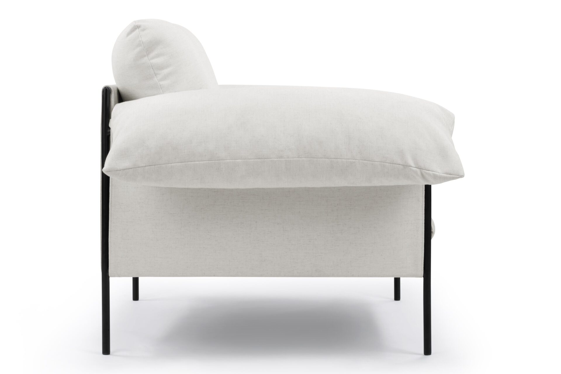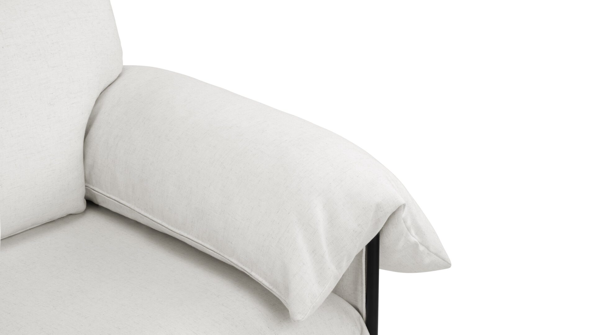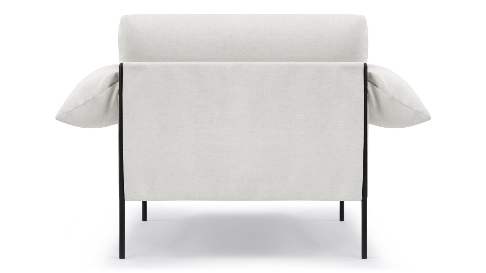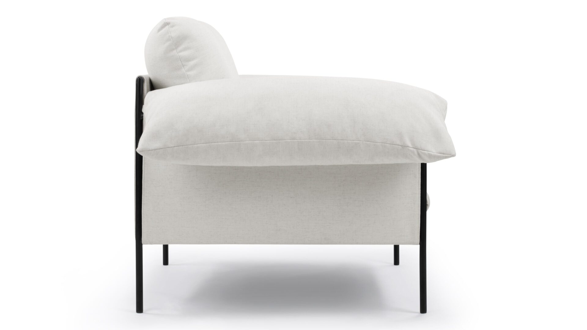 Experience cloud-like seating with the Positano Lounge Chair. This chair features a black powder-coated metal frame that provides durable support for plush foam cushions and pillow-like armrests. Its suspended seat design and neutral off-white upholstery make it a versatile piece for both modern and cozy interiors.