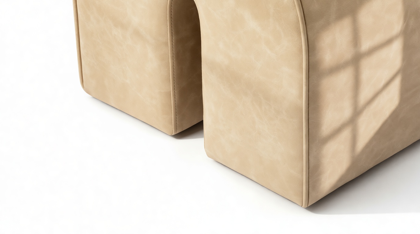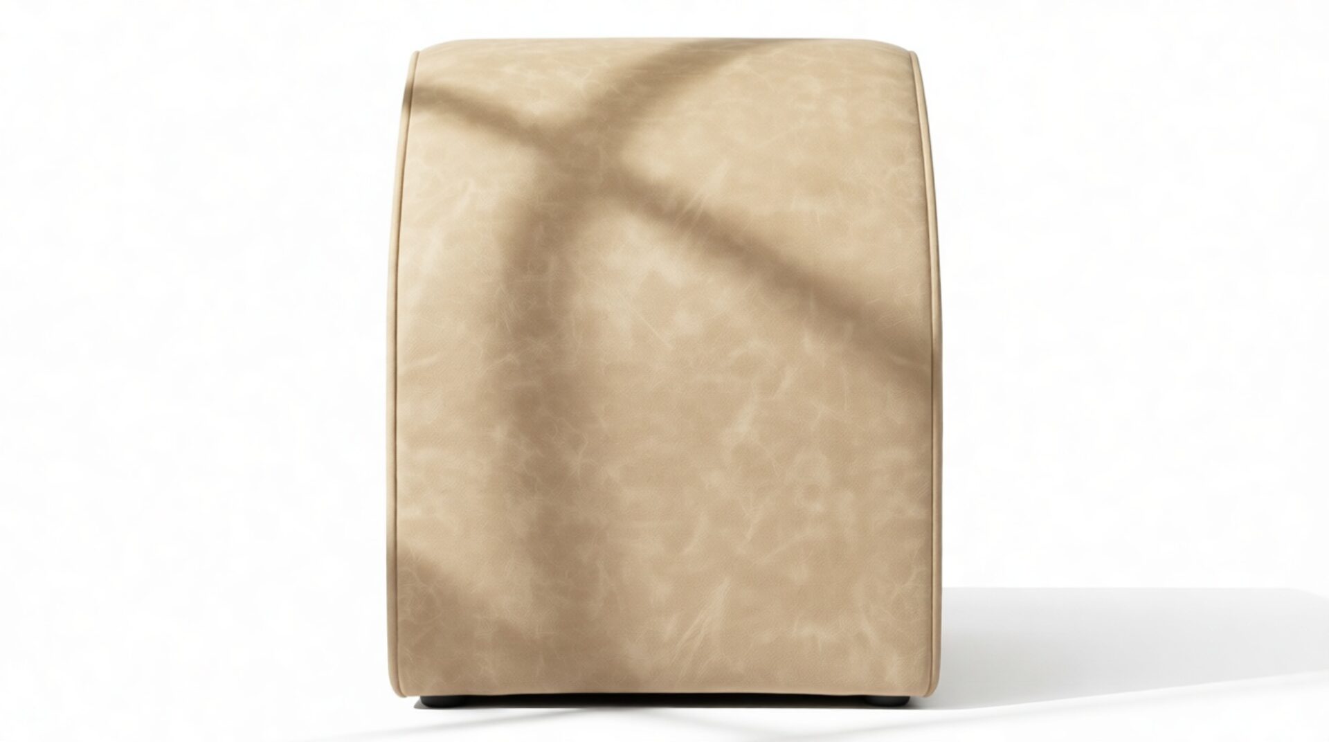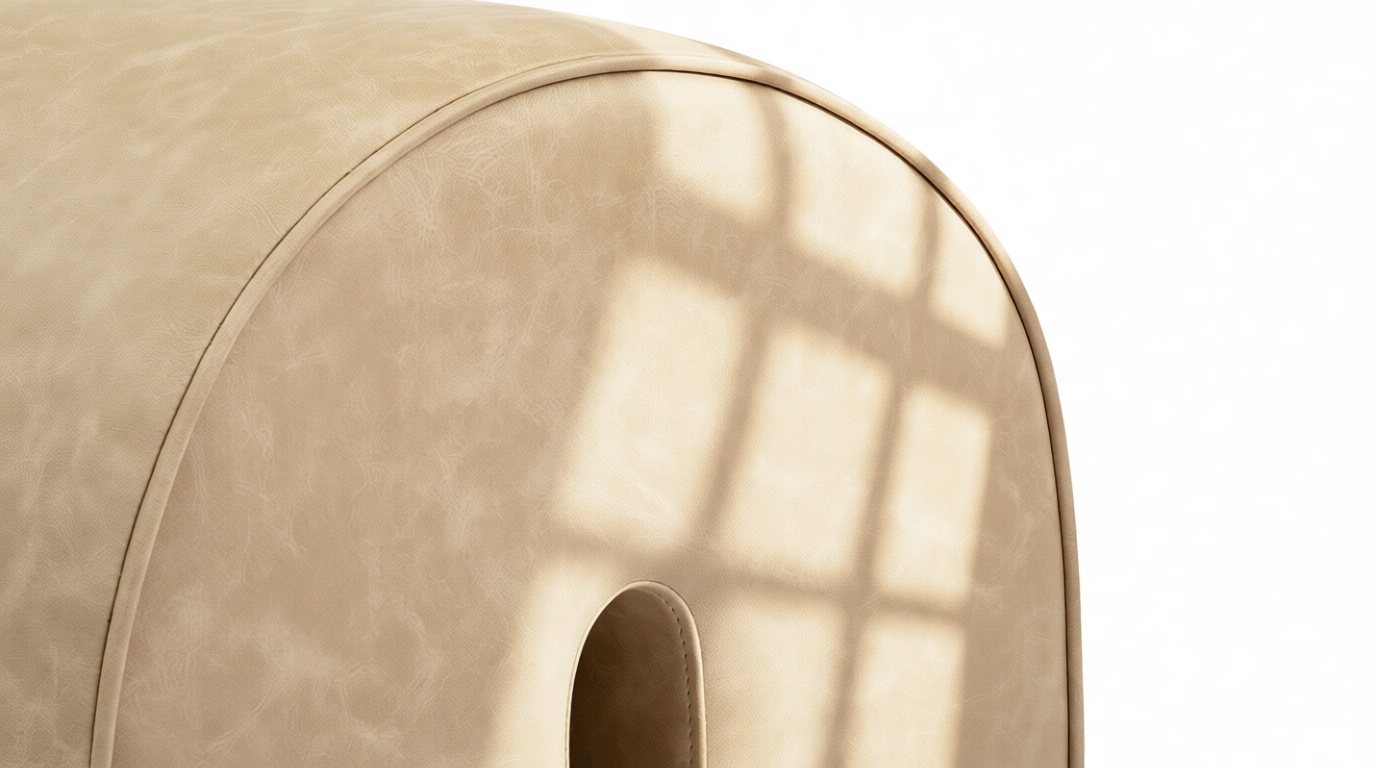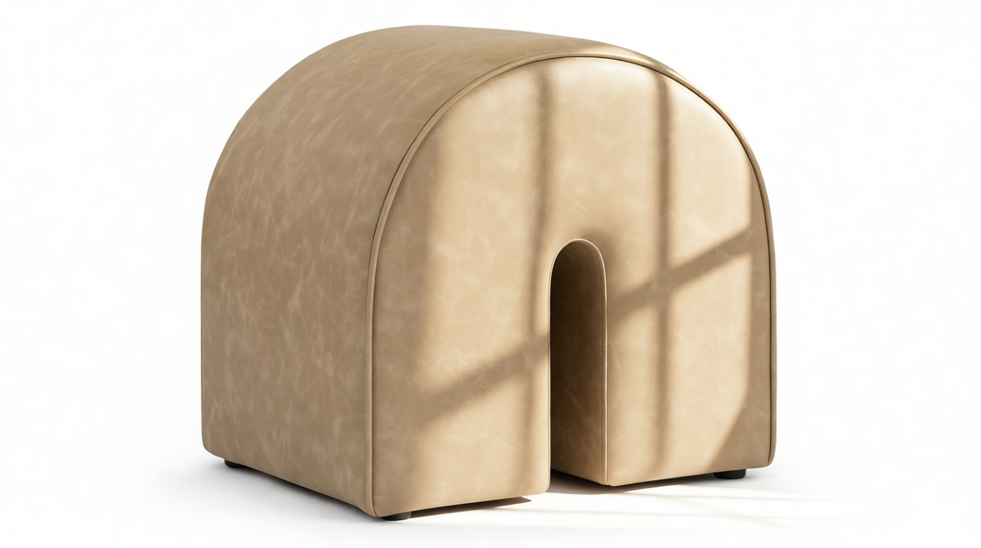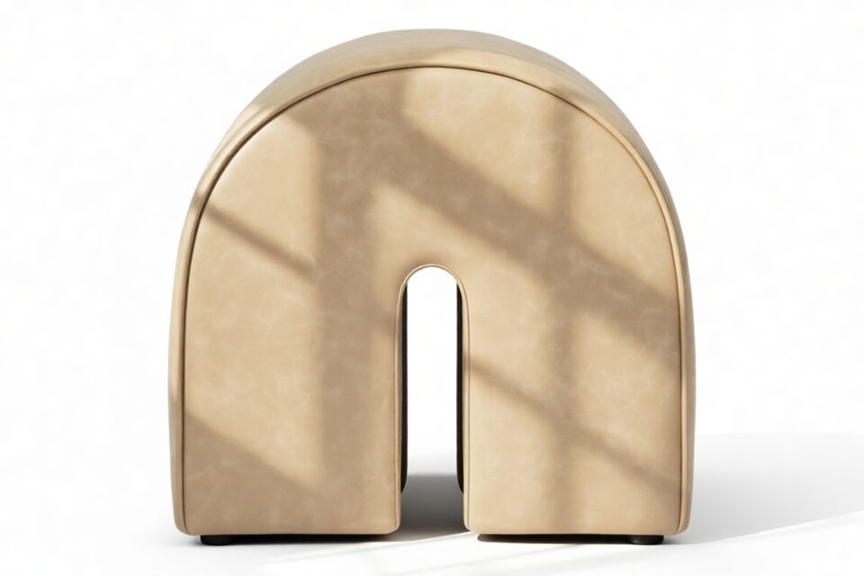 Expertly designed with plush vegan leather and a durable wooden frame, the Pouf Ottoman epitomizes contemporary sophistication. Featuring a distinctive arched shape and a versatile beige hue, this piece exudes a minimalist yet refined charm that effortlessly complements various interior styles.