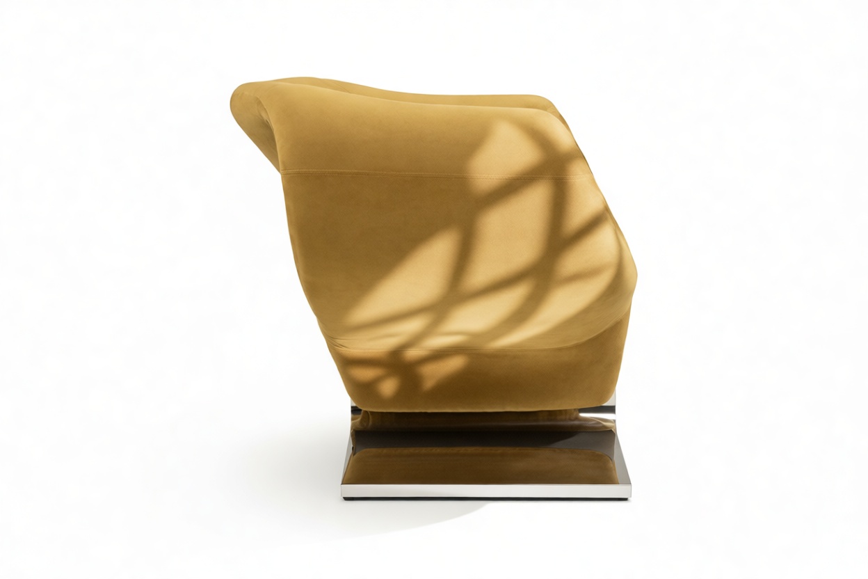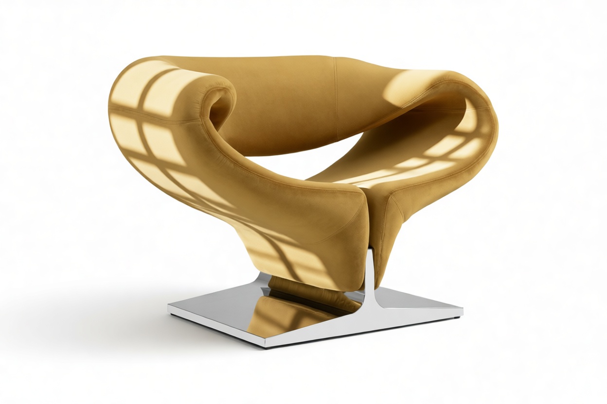 Adorned in a warm caramel hue, this chair emanates sophistication and warmth, adding a touch of elegance to contemporary interiors. Its wide, ergonomic seat is designed for ultimate relaxation, ensuring superior comfort for modern homes or stylish lounge spaces. A fusion of artistic craftsmanship and functionality, the Ribbon Chair offers both visual allure and ergonomic seating.
